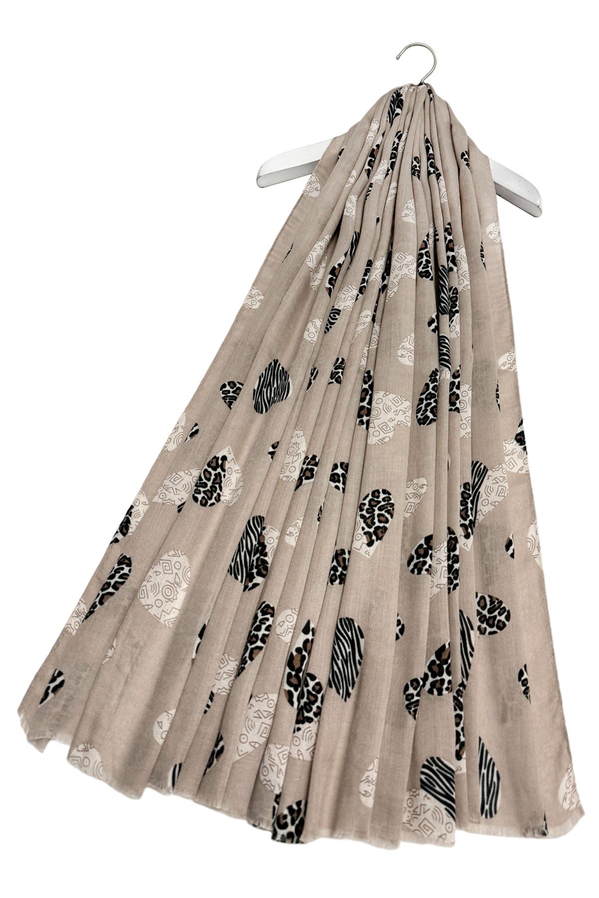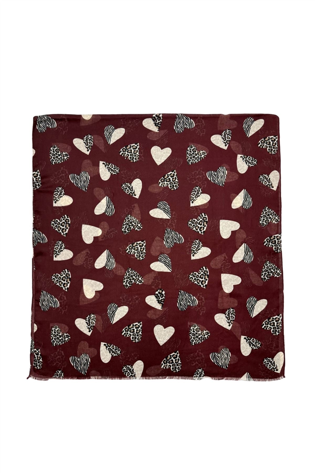Leopard and Zebra Love Heart Print Frayed Scarf