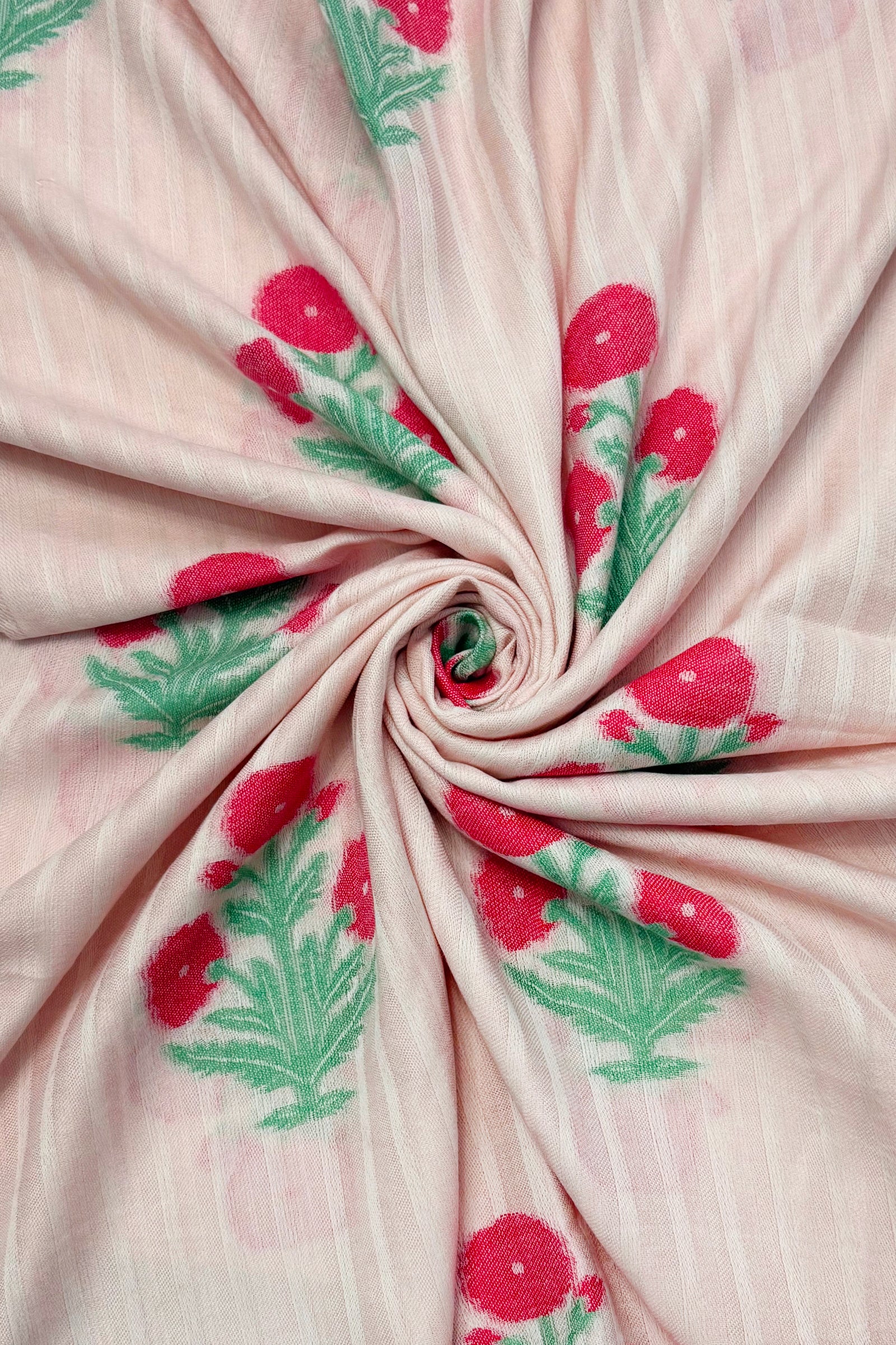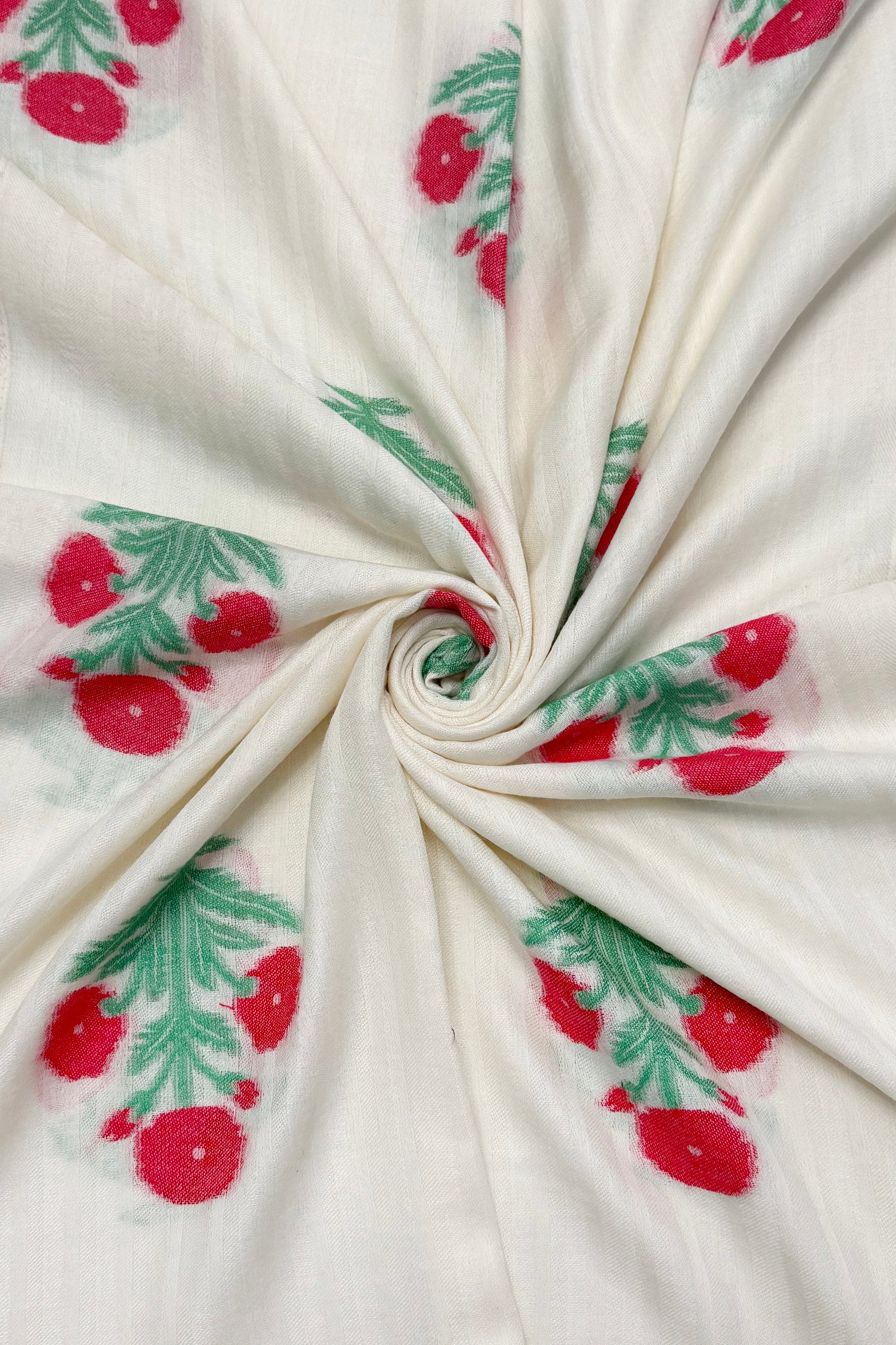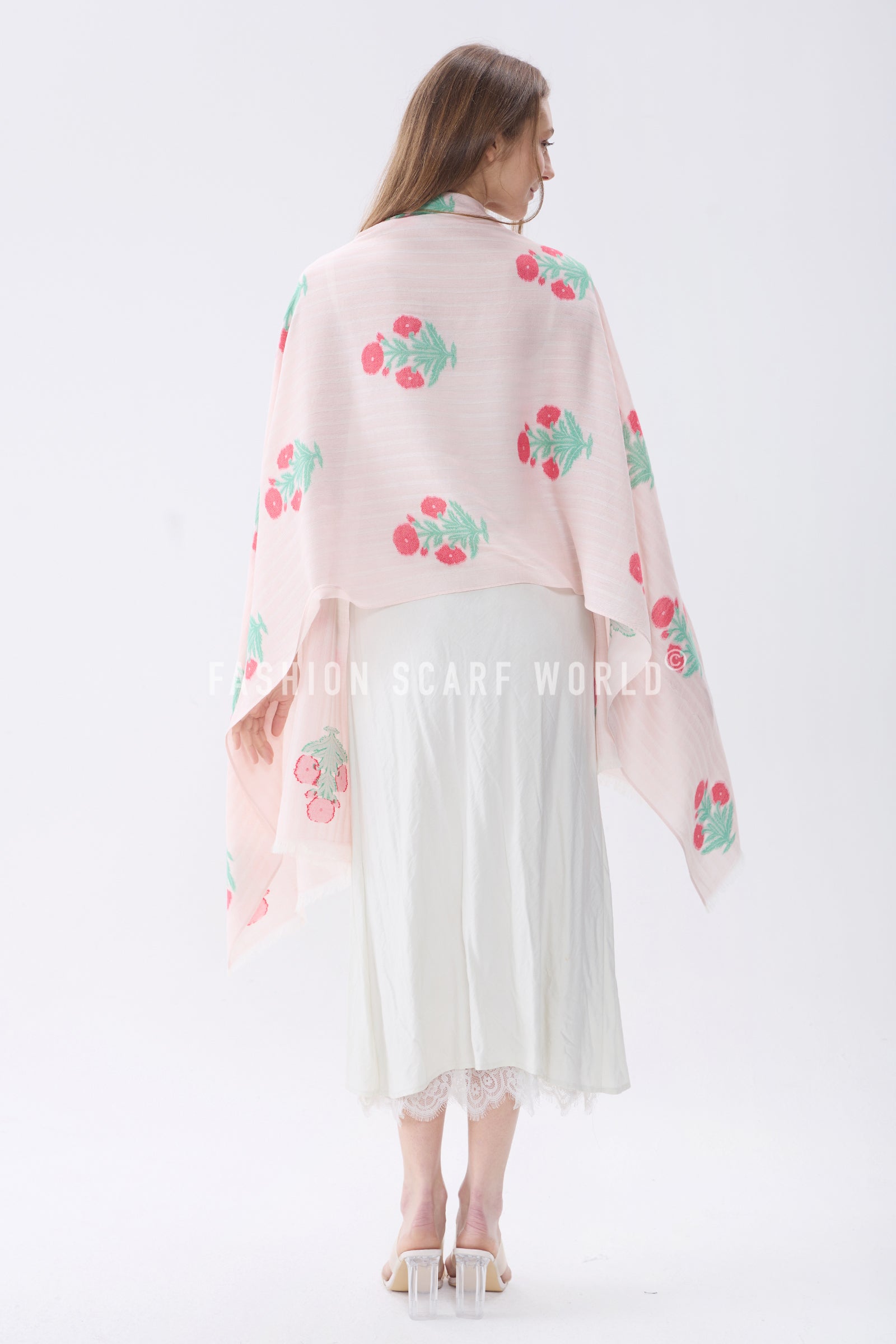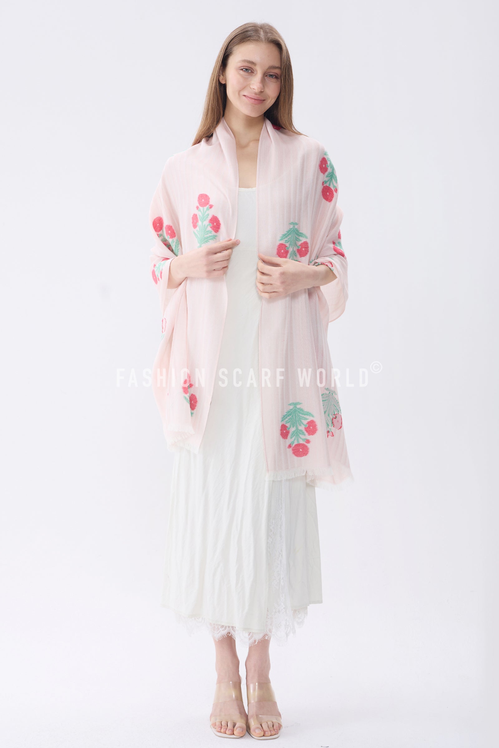 Floral Motif and Stripe Woven Cotton Frayed Scarf