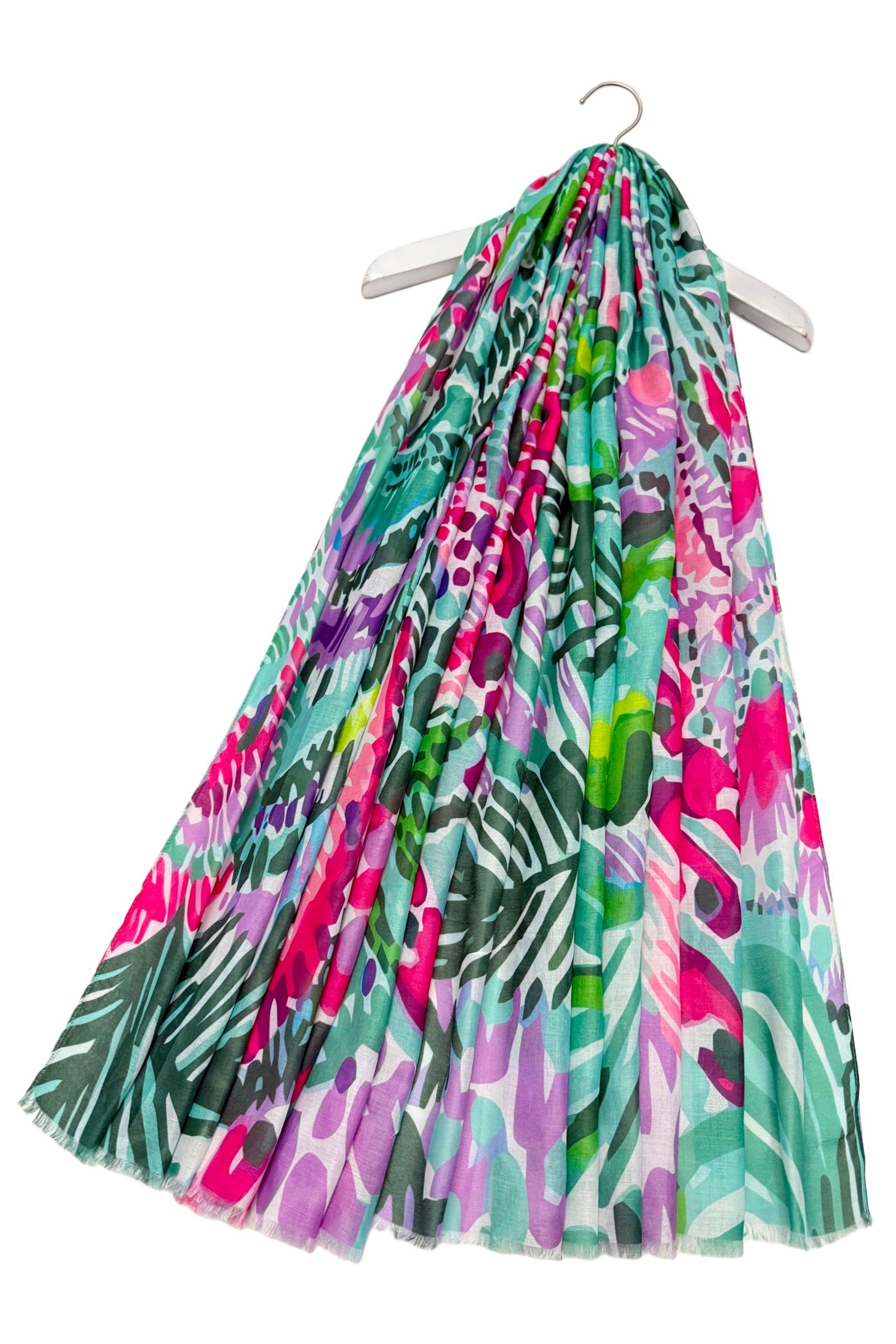 Tropical Floral Illustrated Frayed Scarf