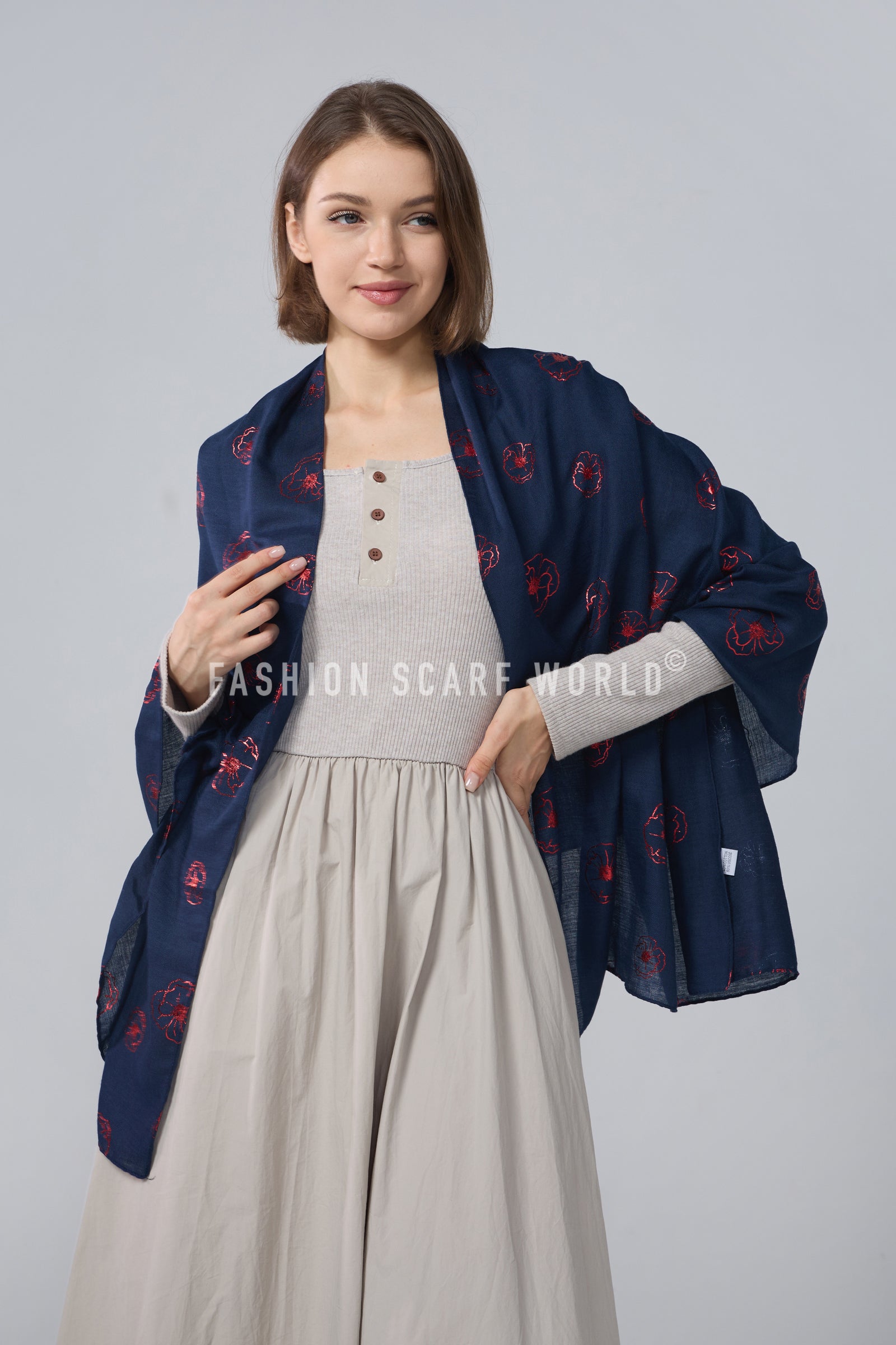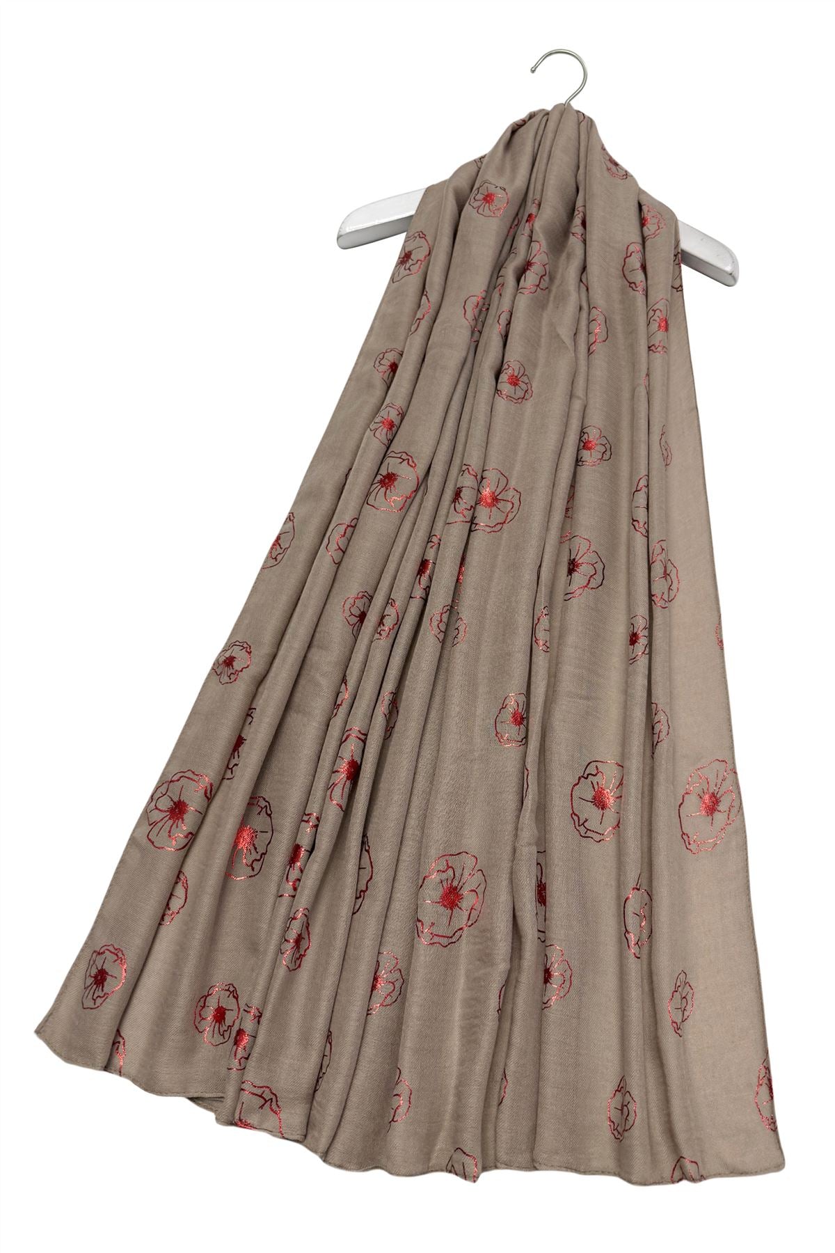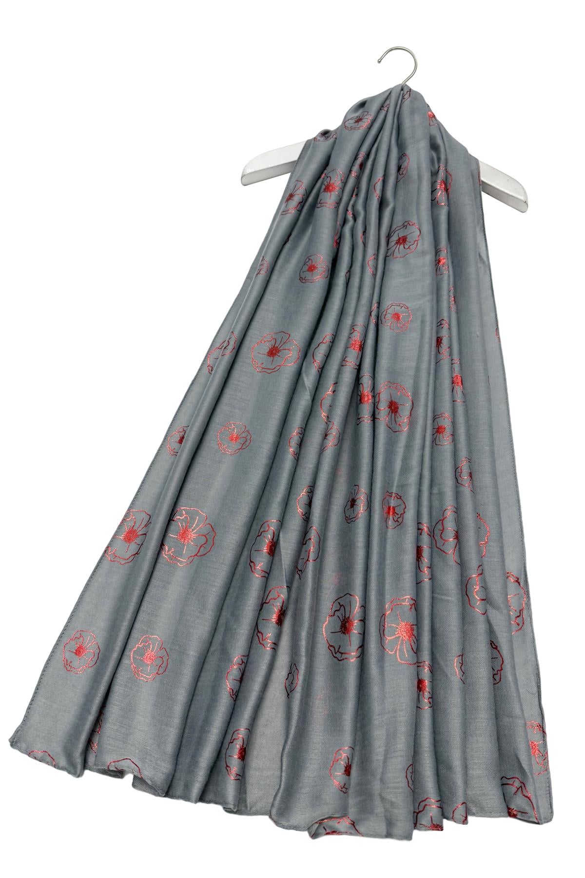 Red Poppy Foiled Print Scarf