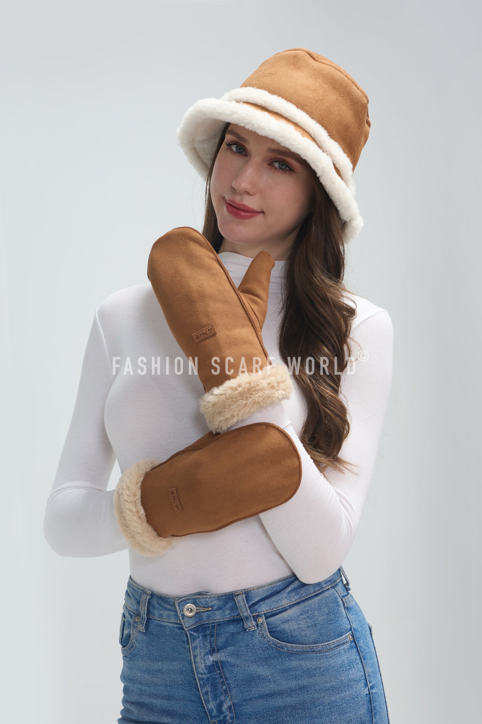 Faux Suede & Shearling Mittens