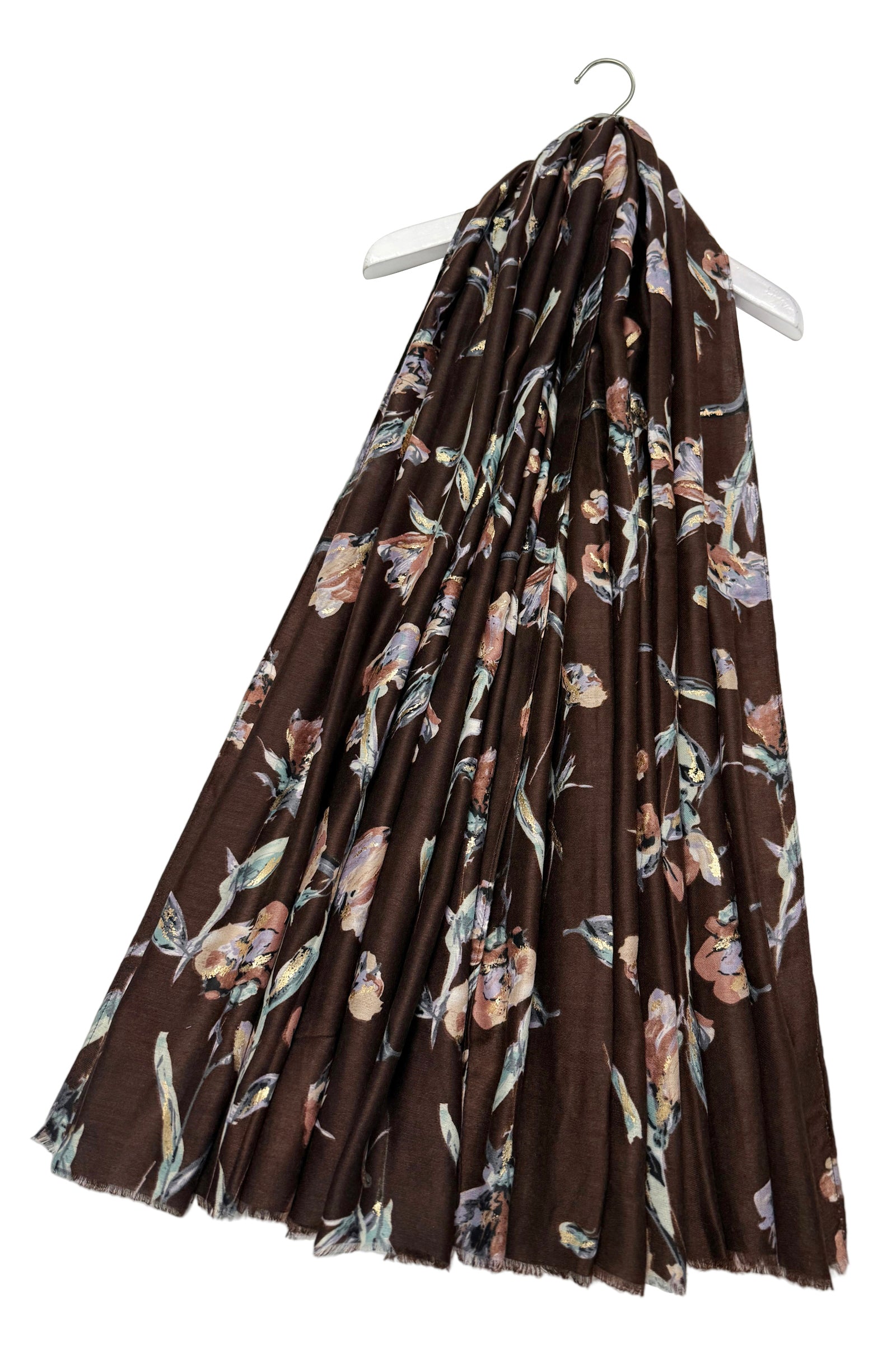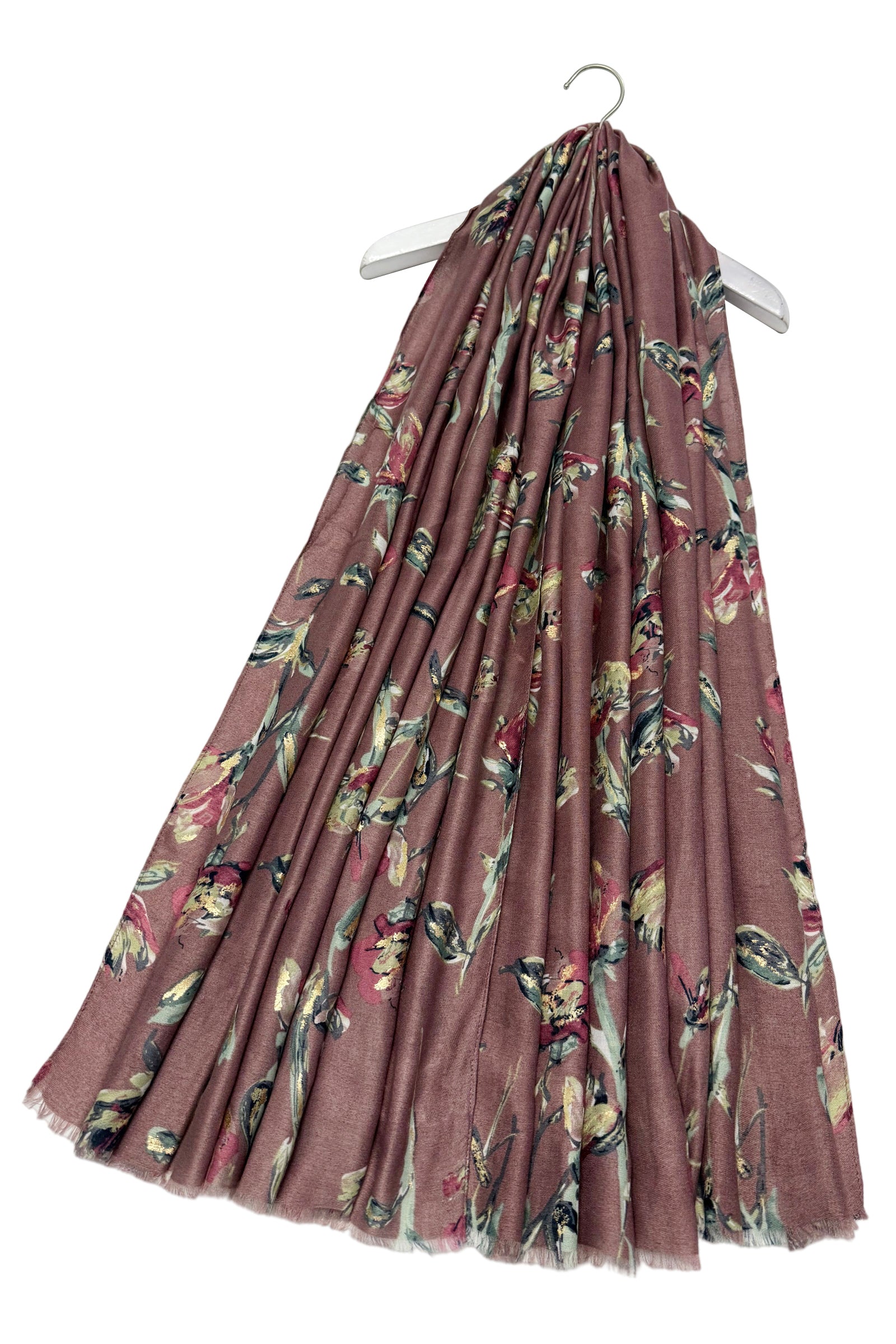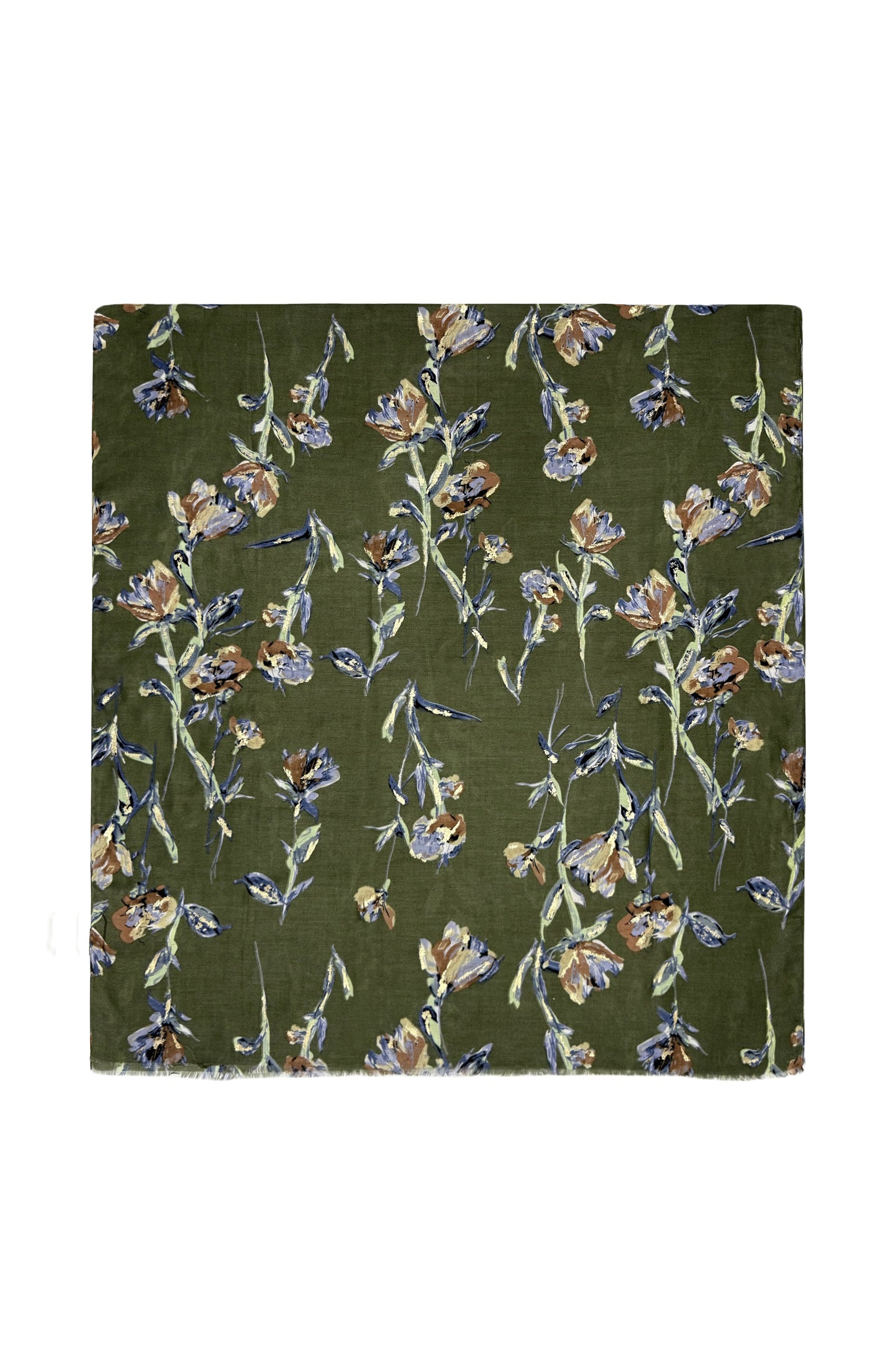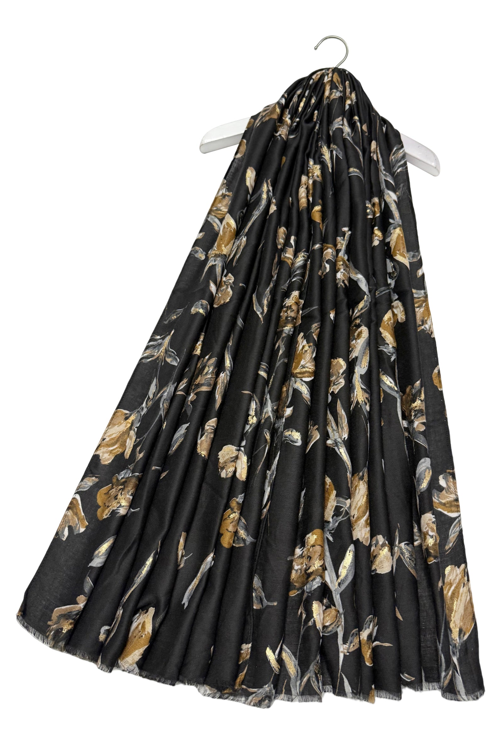 Stemmed Flower & Gold Foiled Frayed Scarf