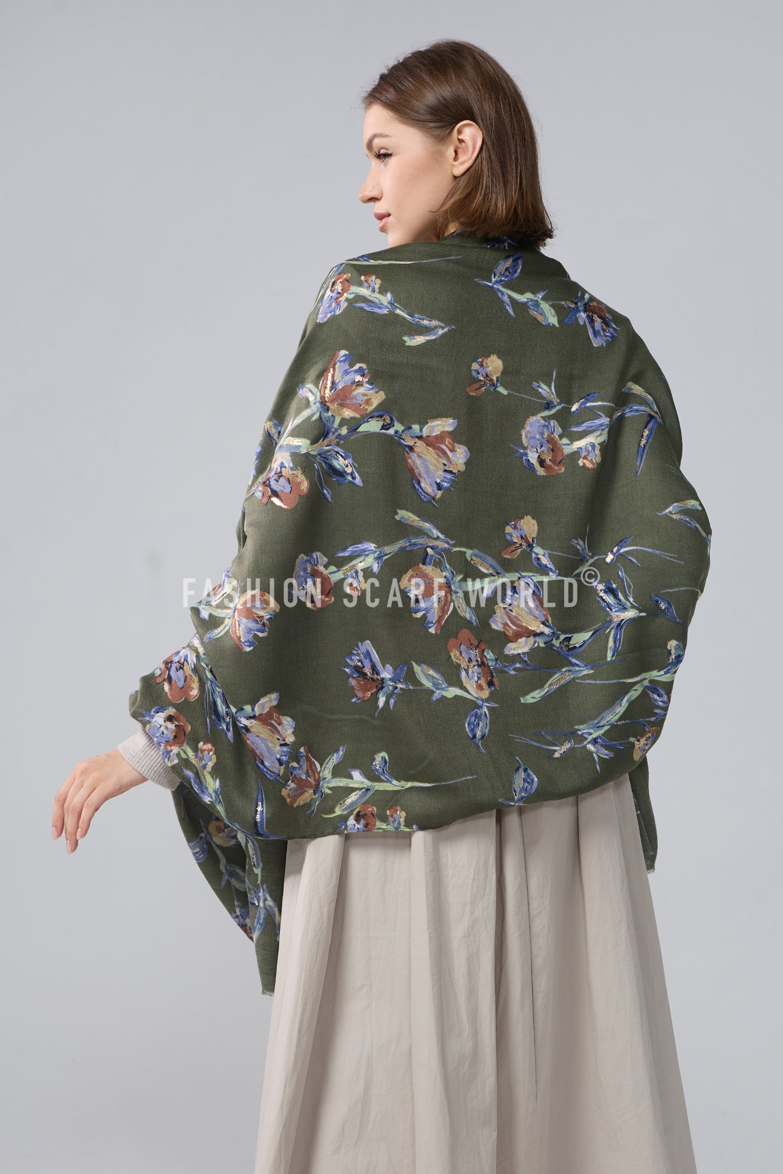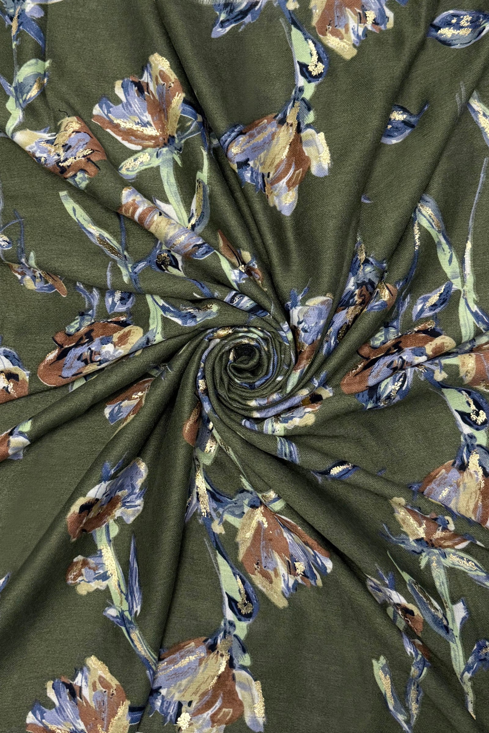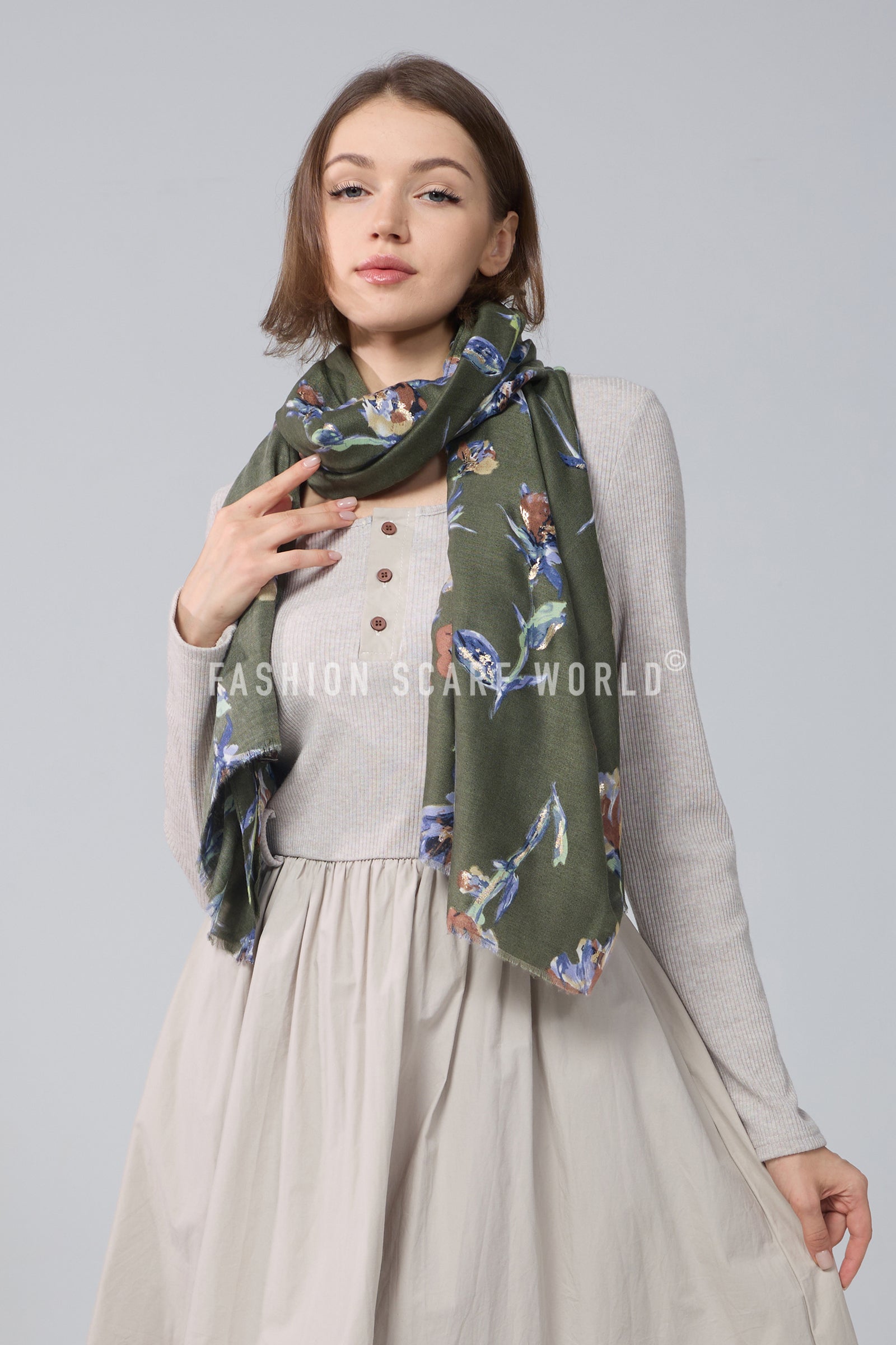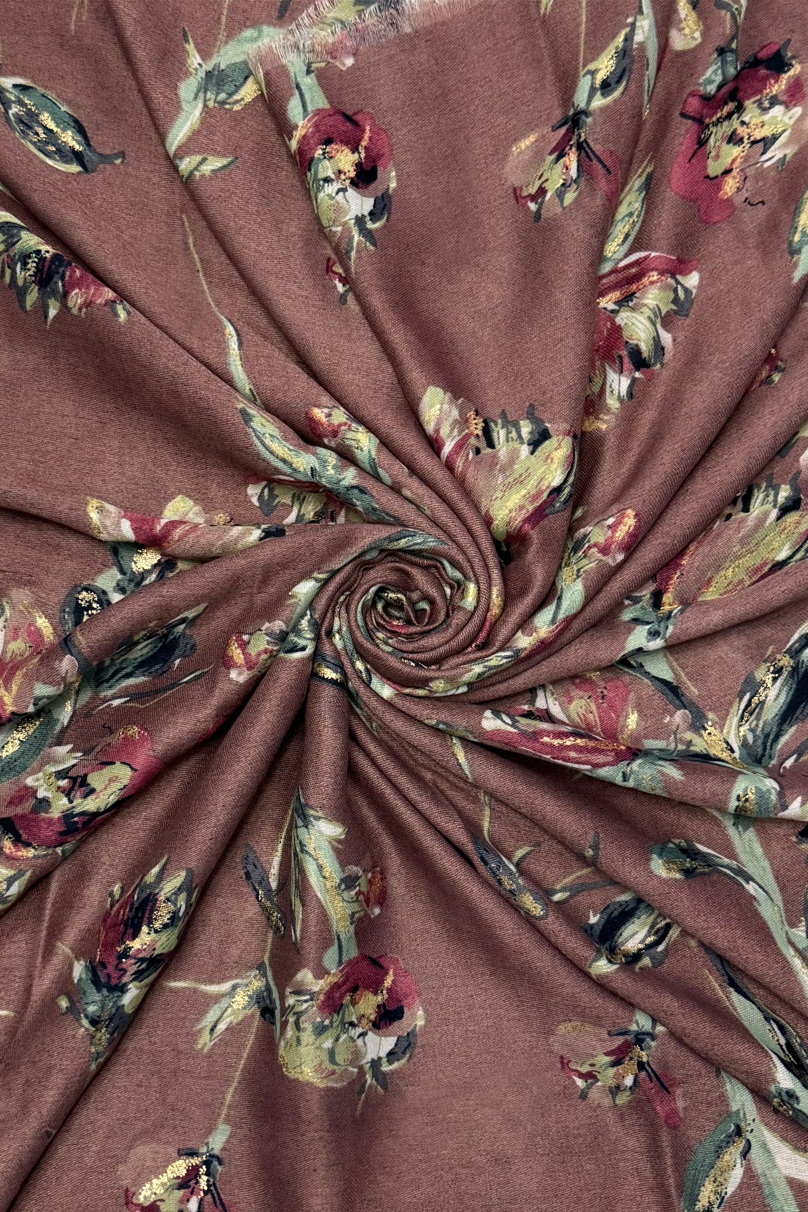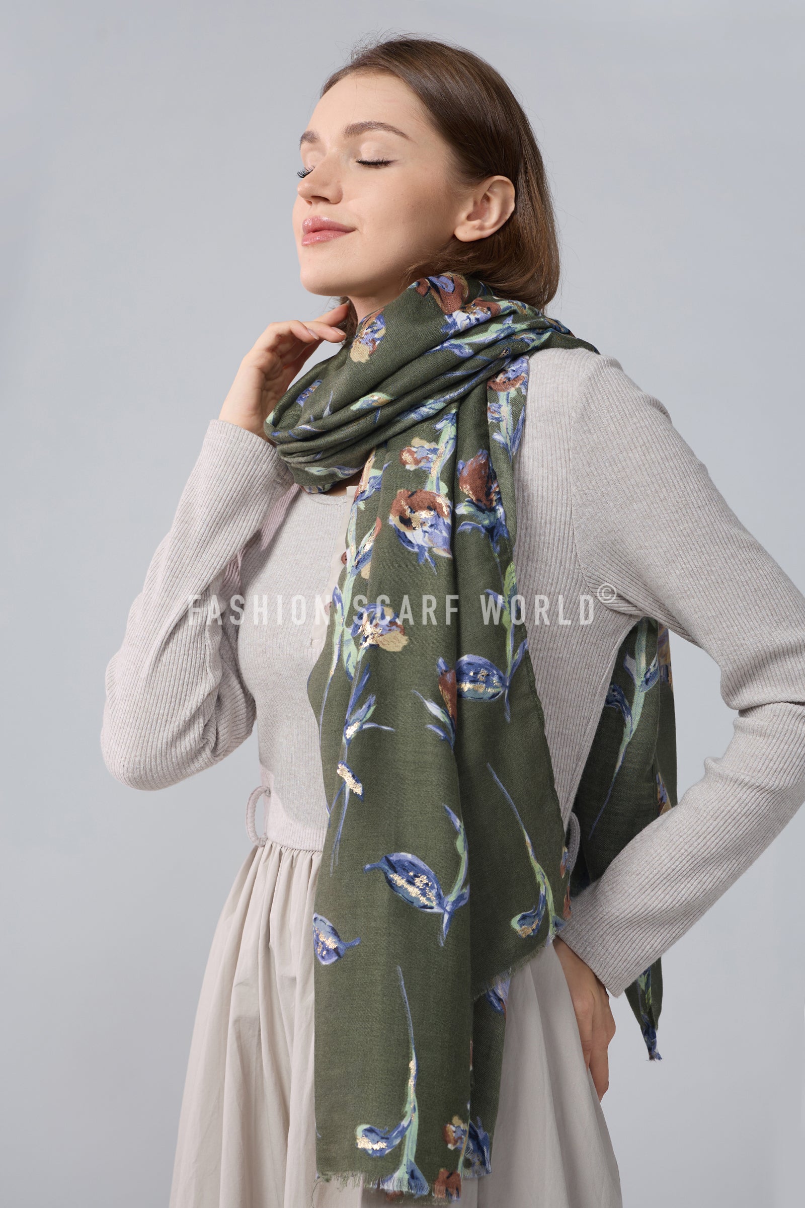 Stemmed Flower & Gold Foiled Frayed Scarf
