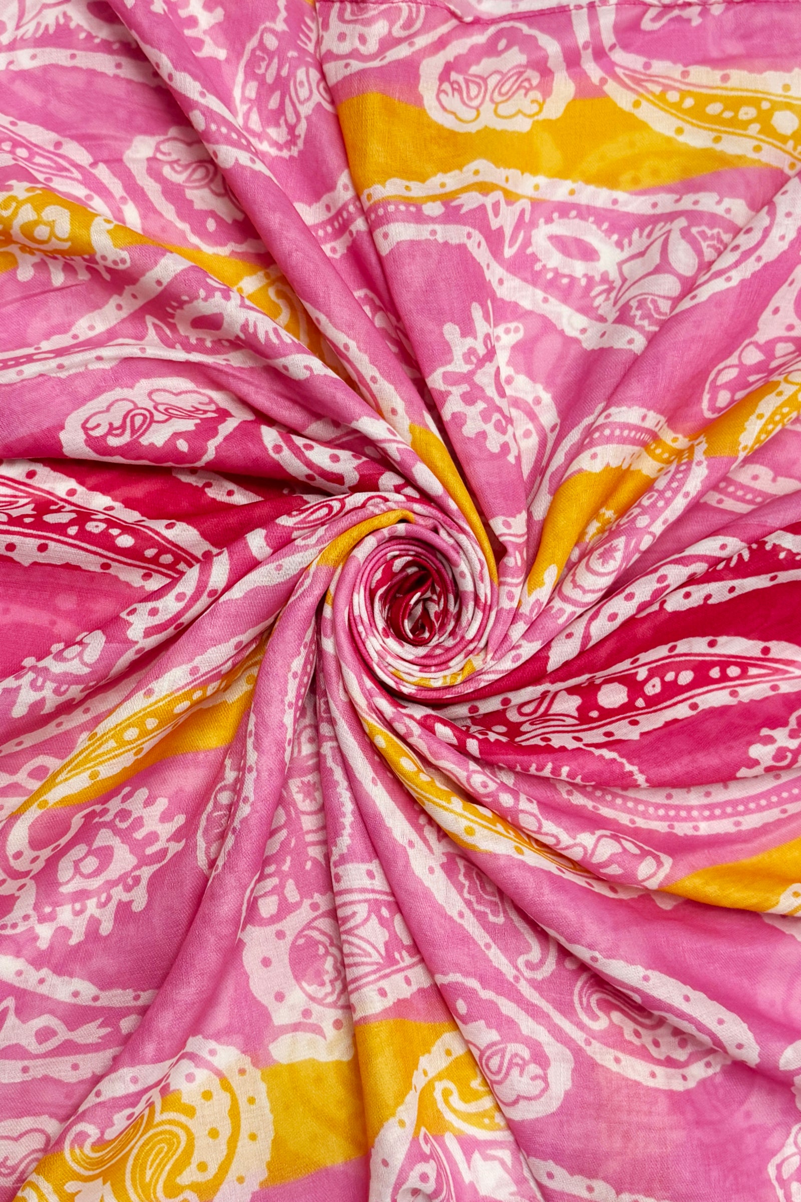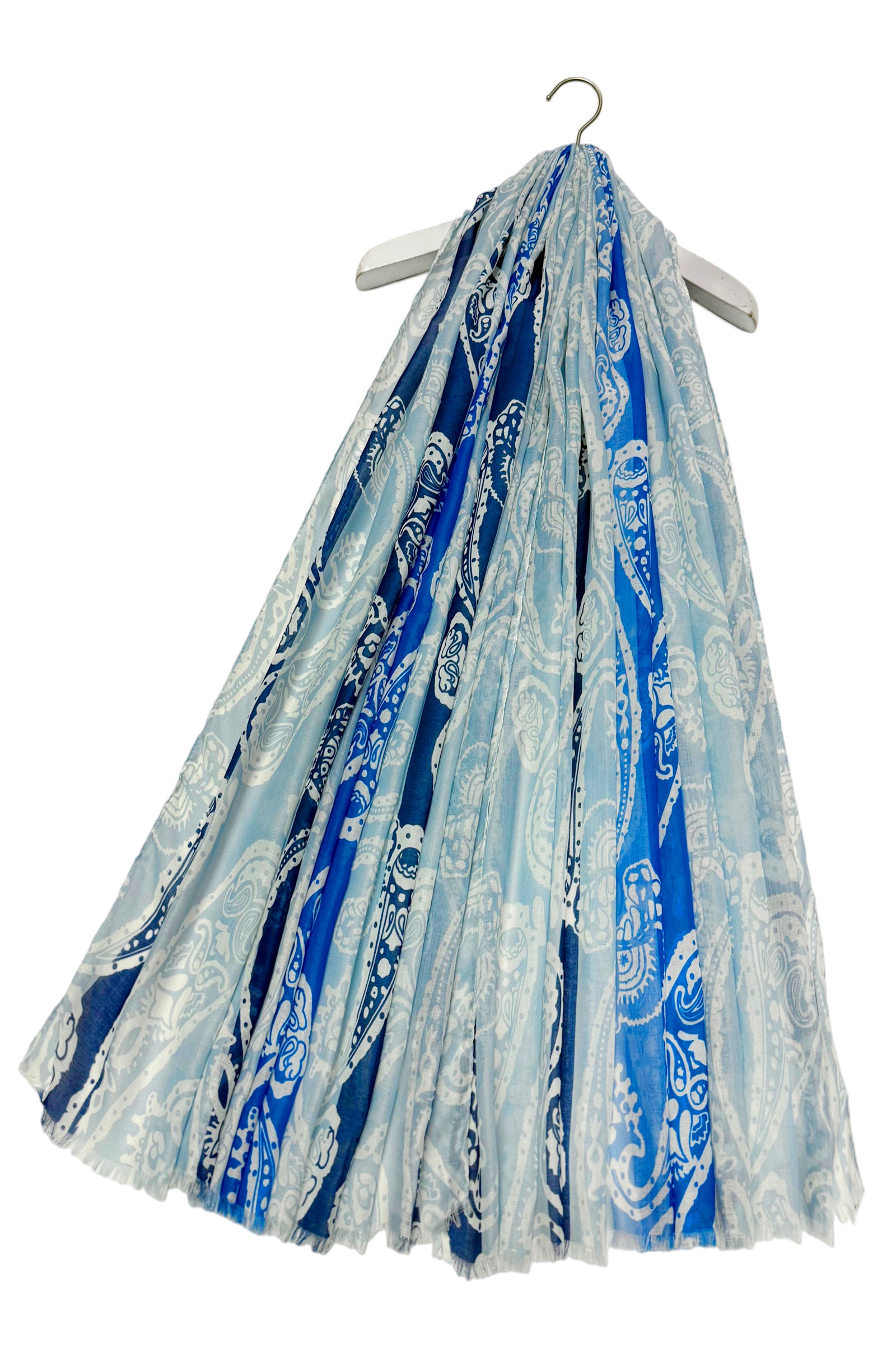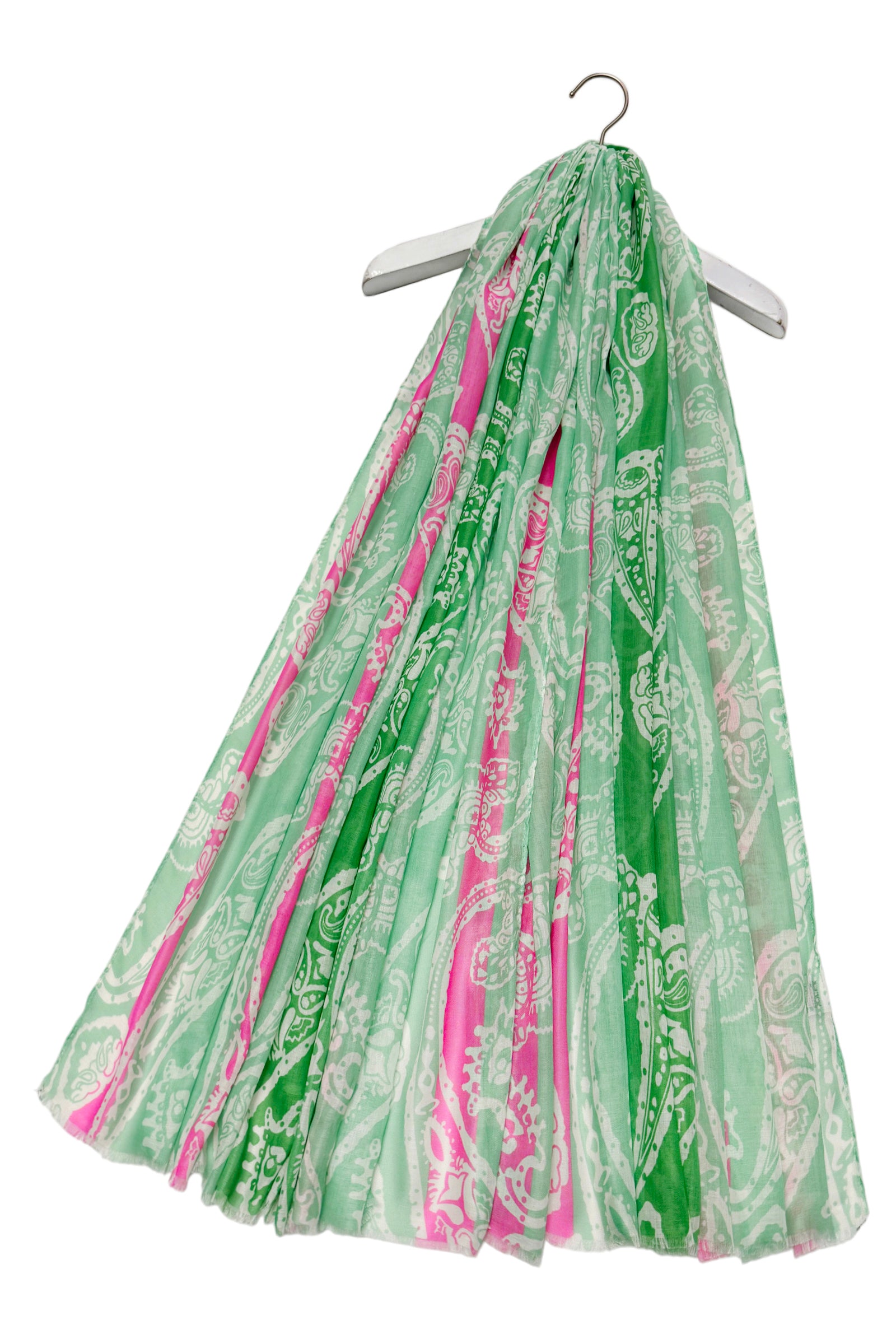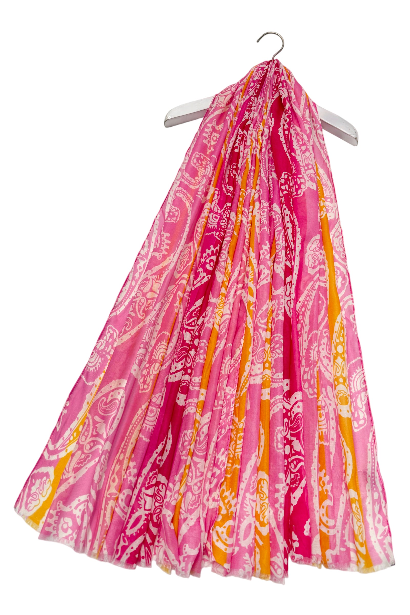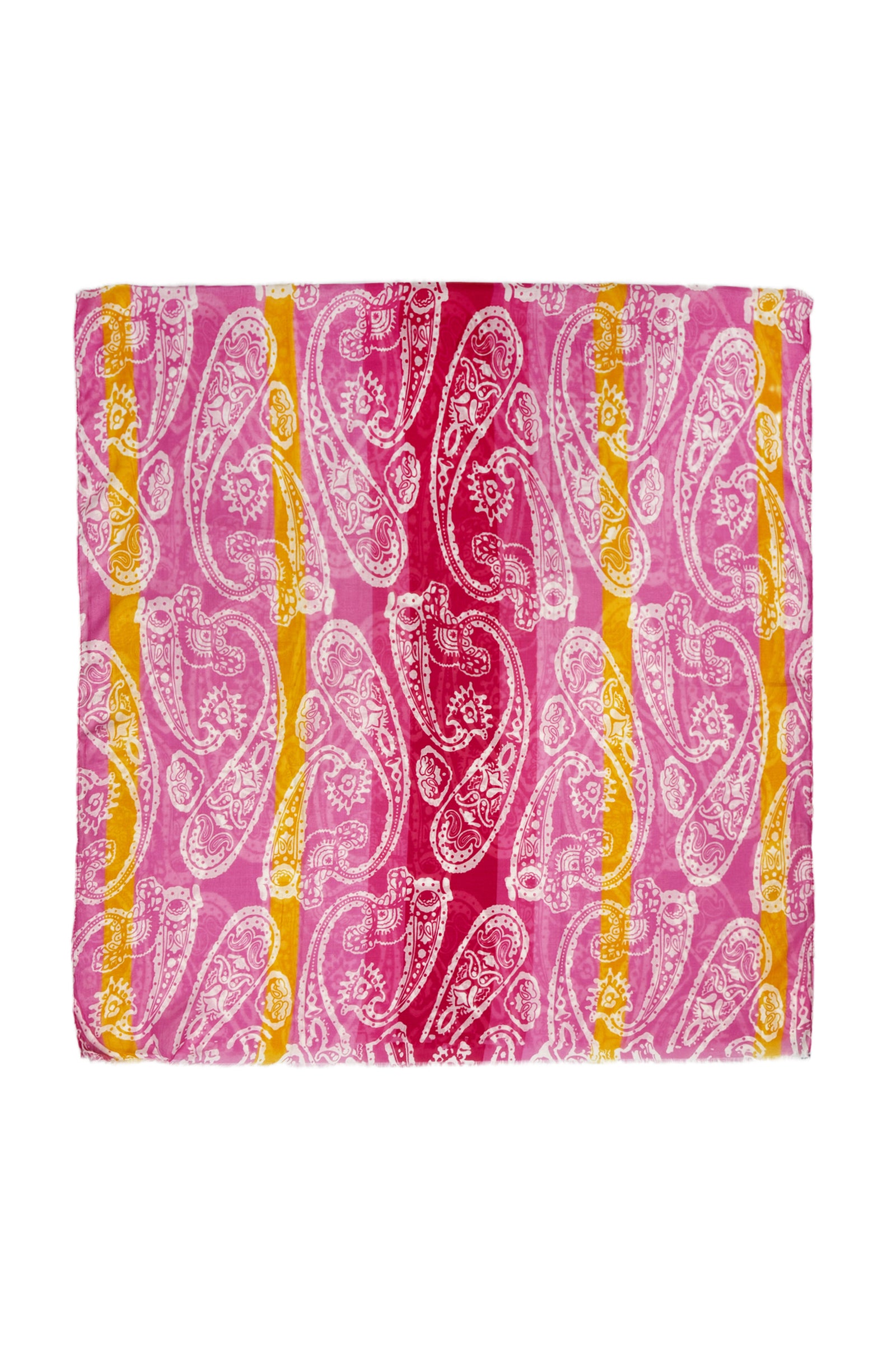 Bright Striped Paisley Print Frayed Scarf