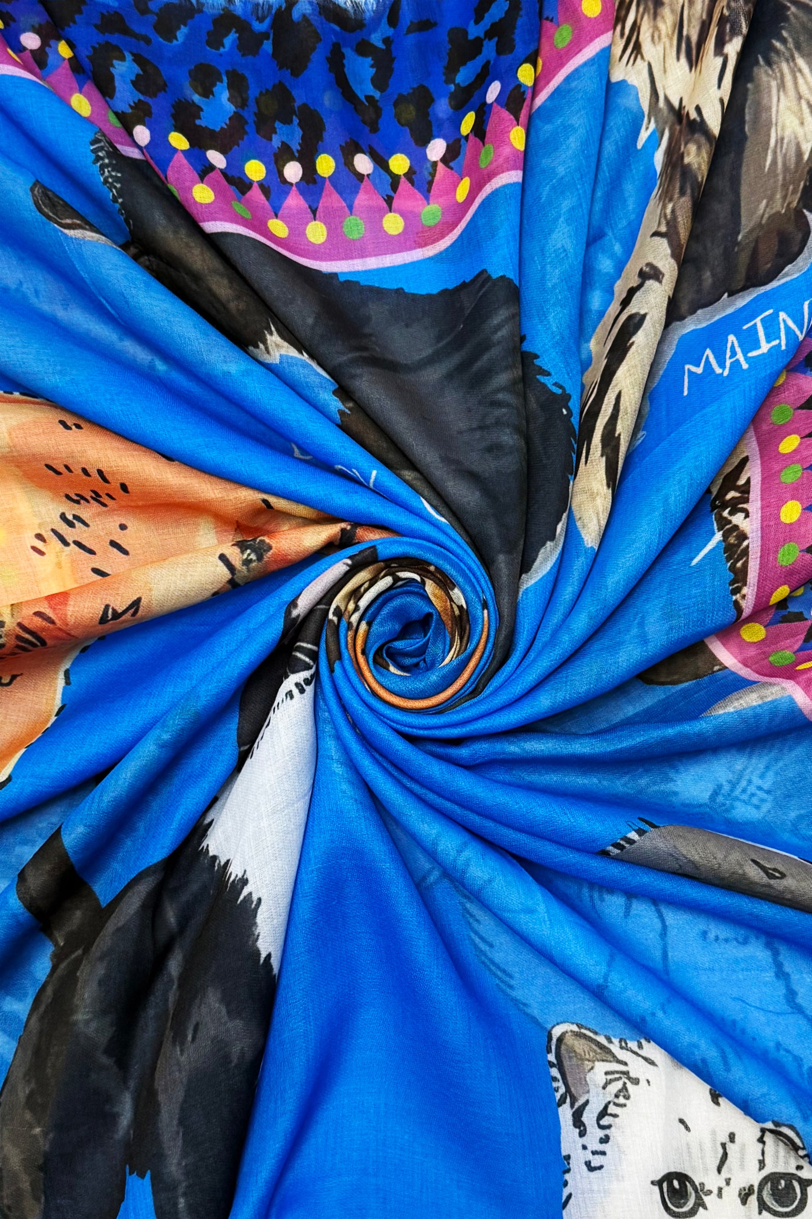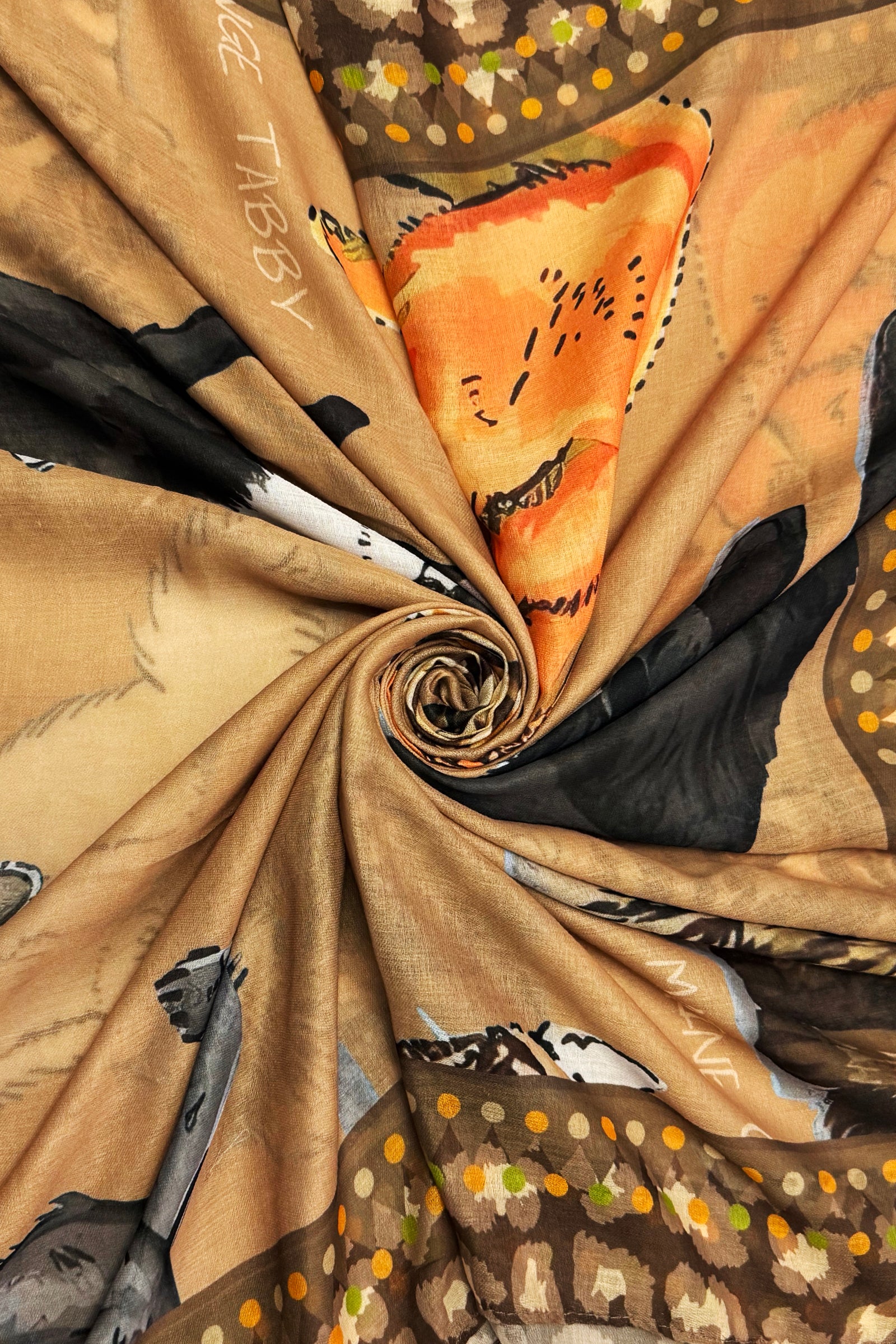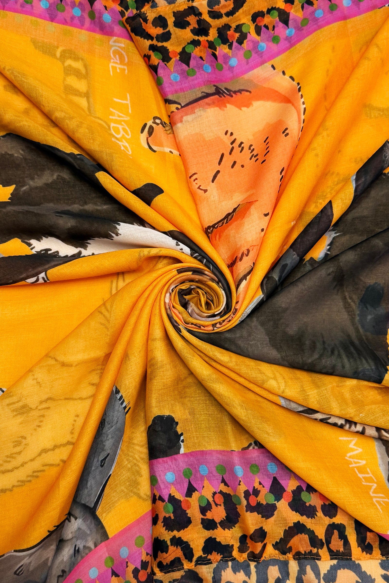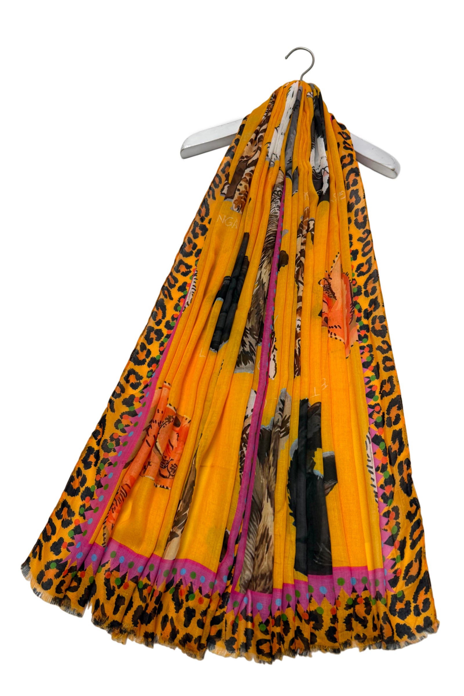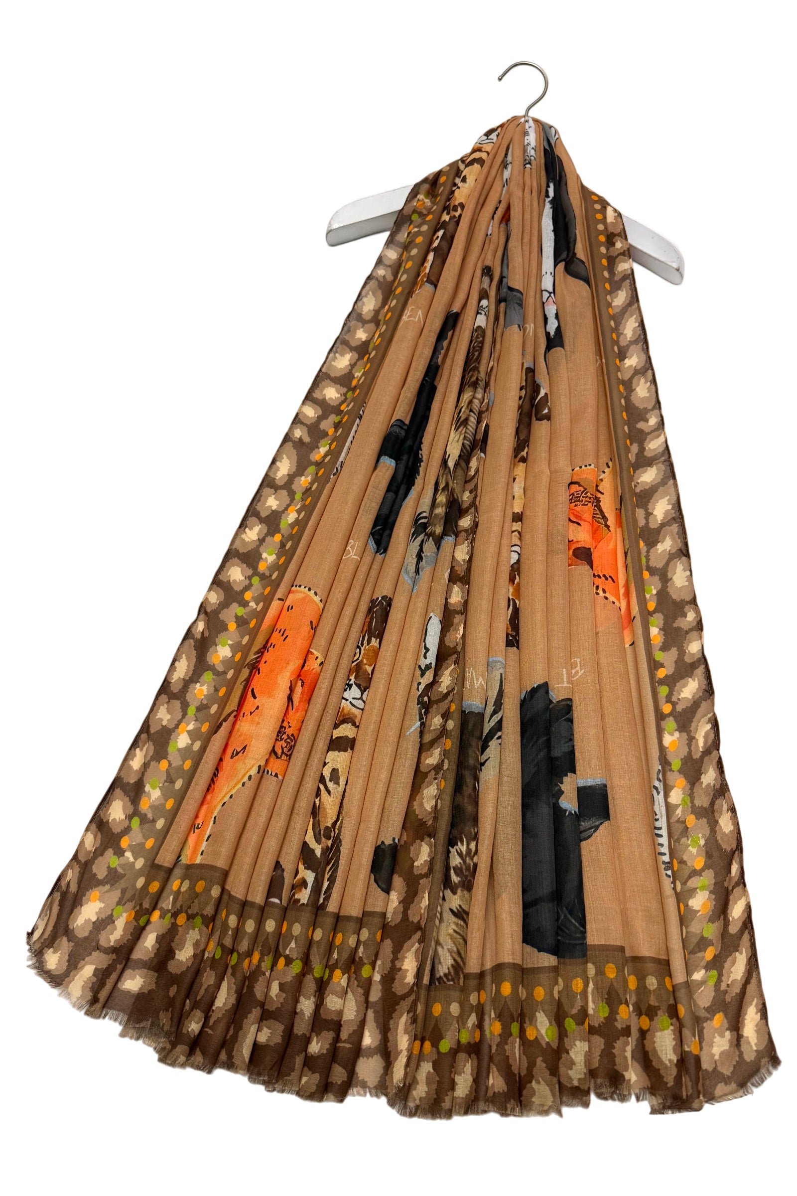 Cats with Graphic Leopard Print Border Frayed Scarf