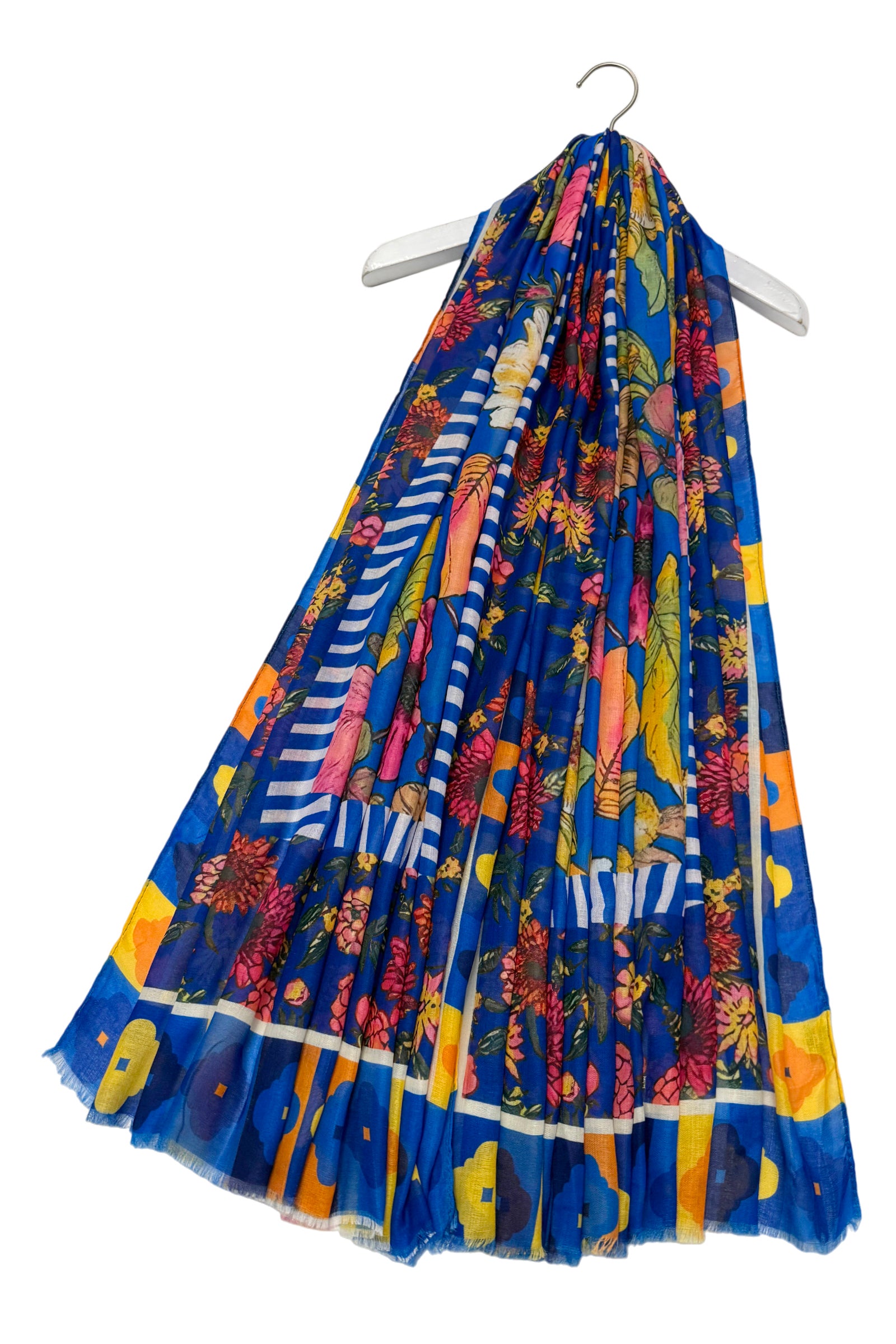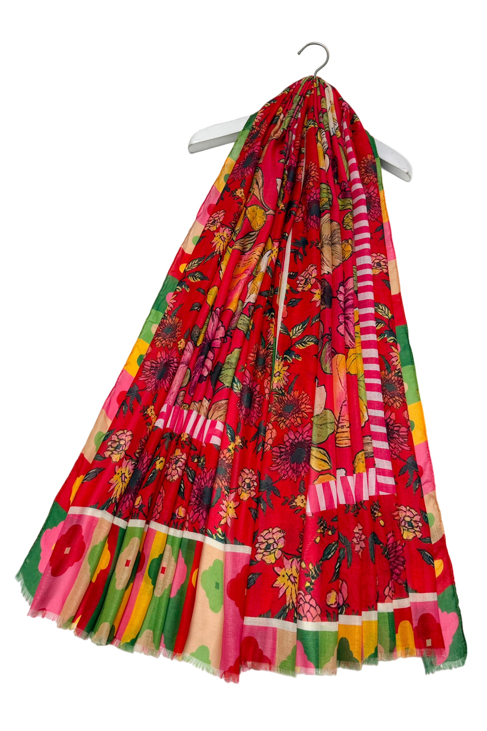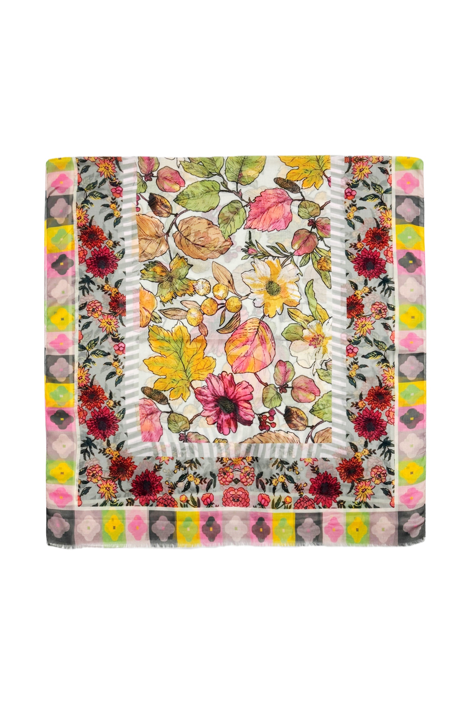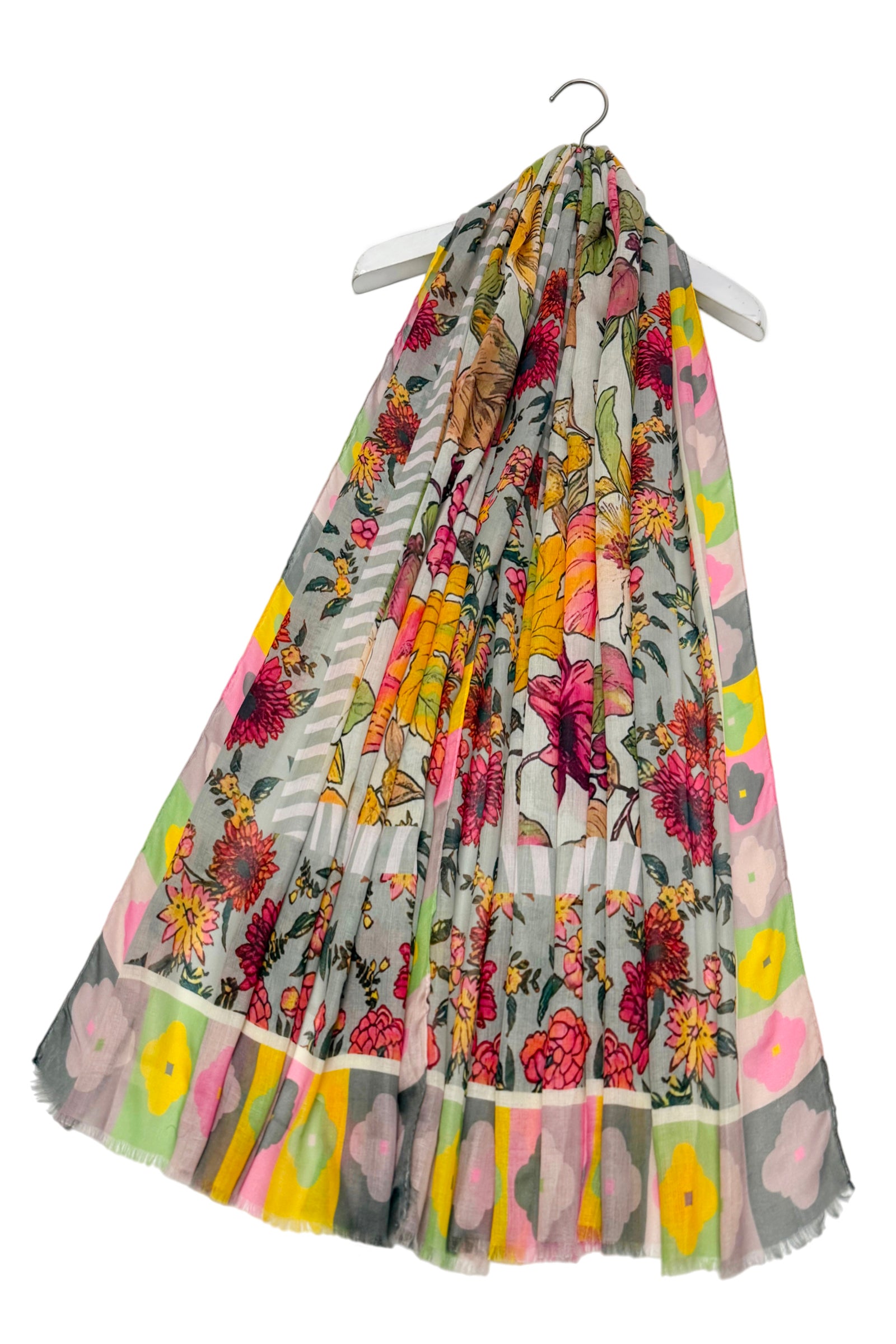 Vibrant Floral Border Print Frayed Scarf