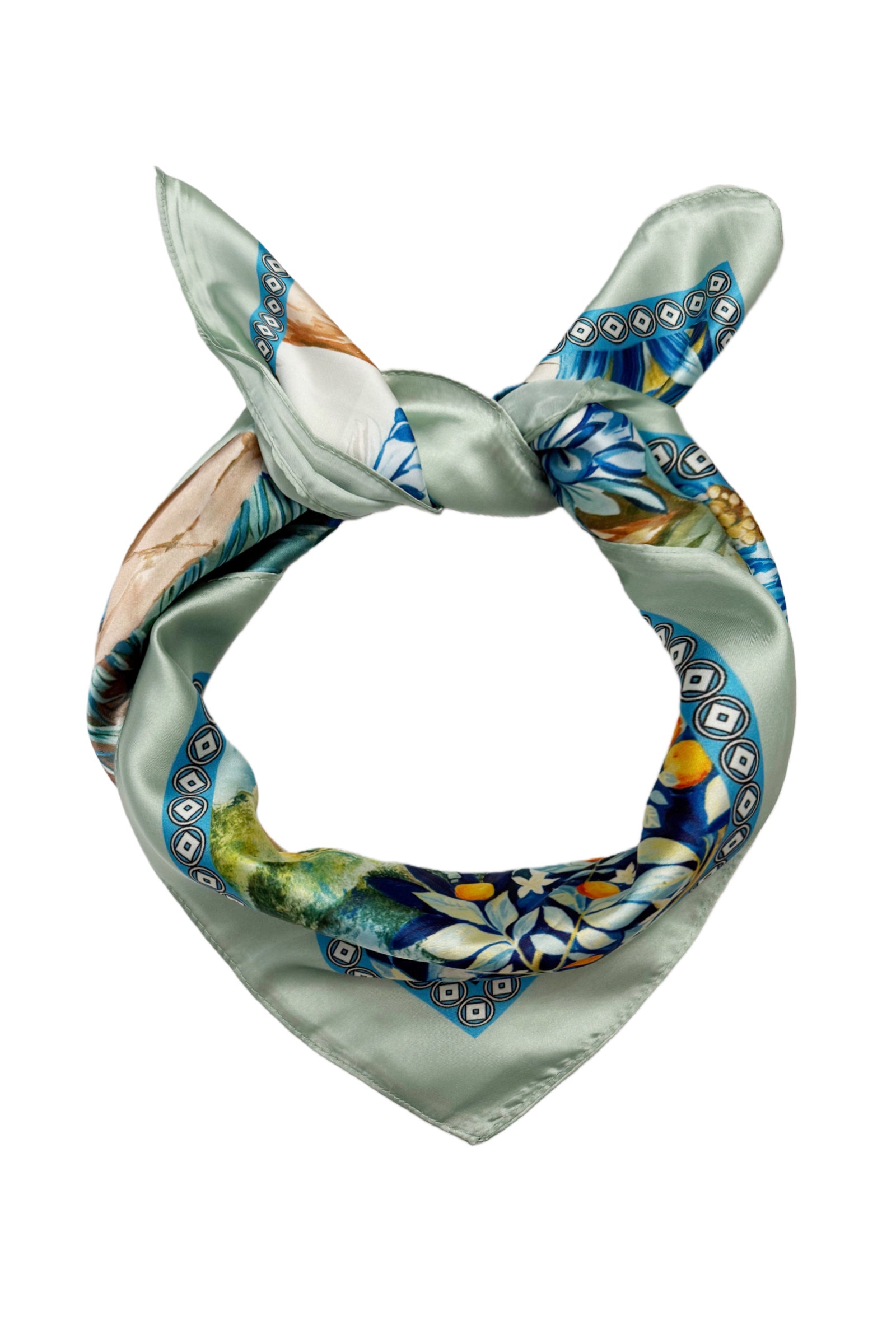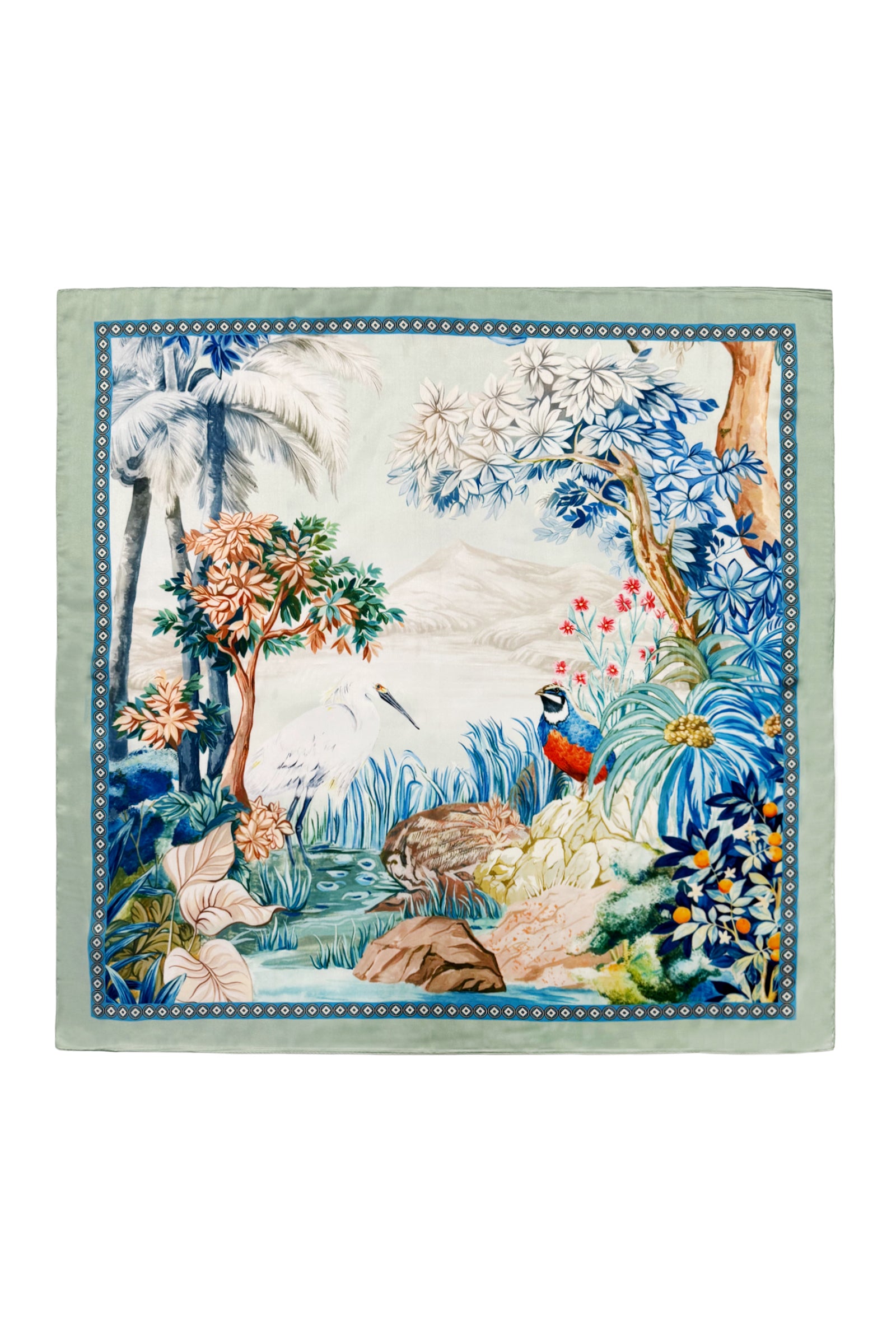 Egret Bird & Landscape Print Silk Square Scarf