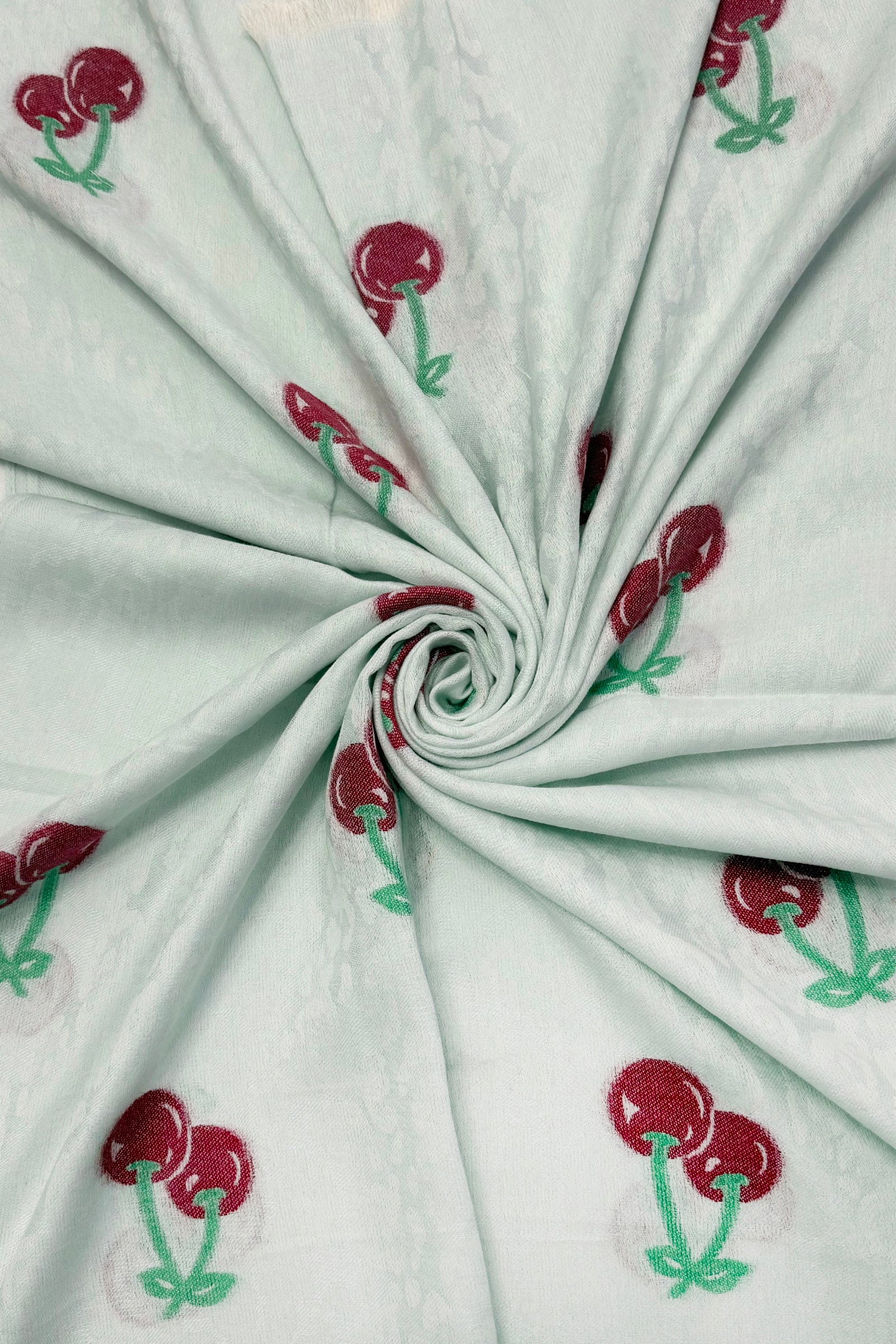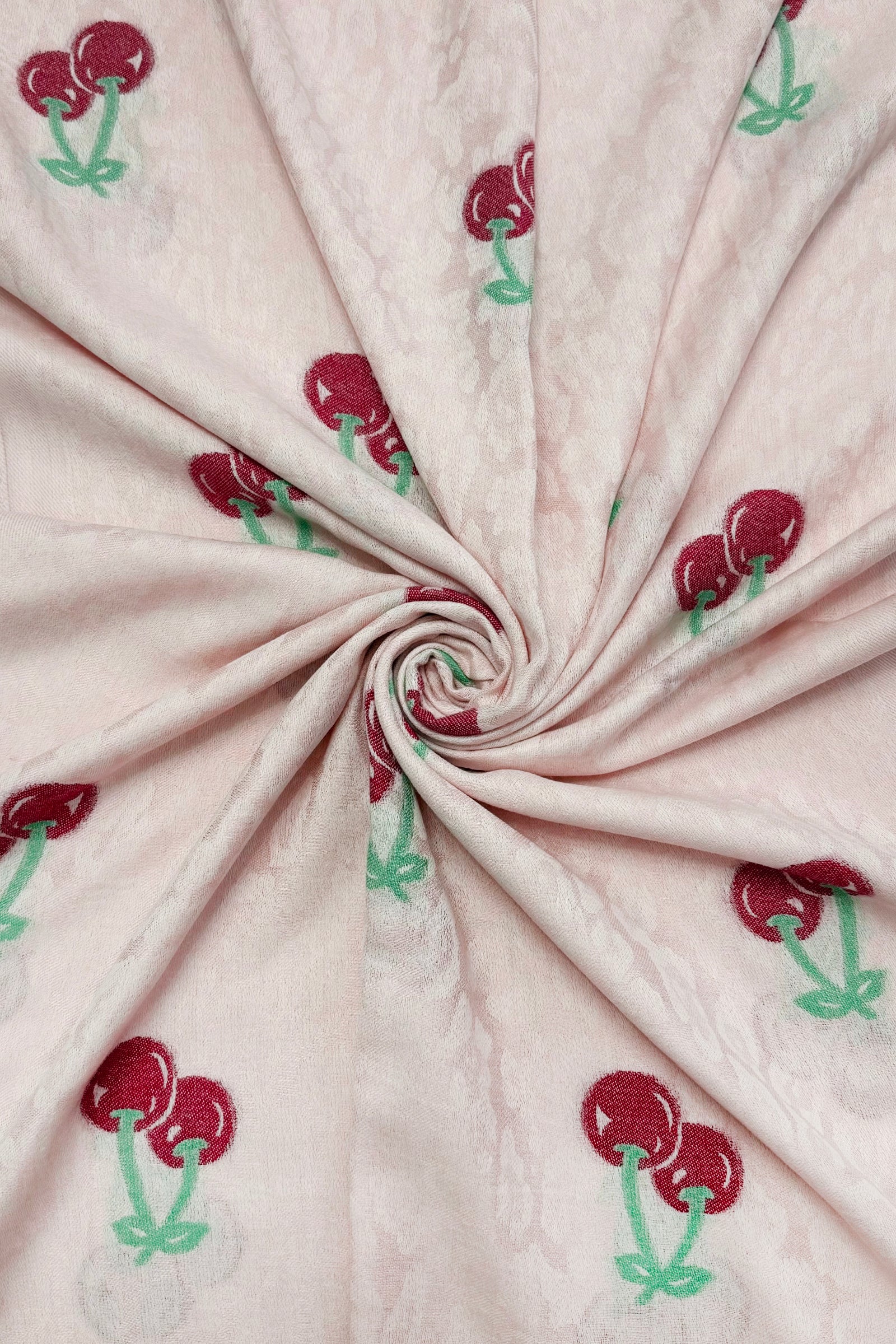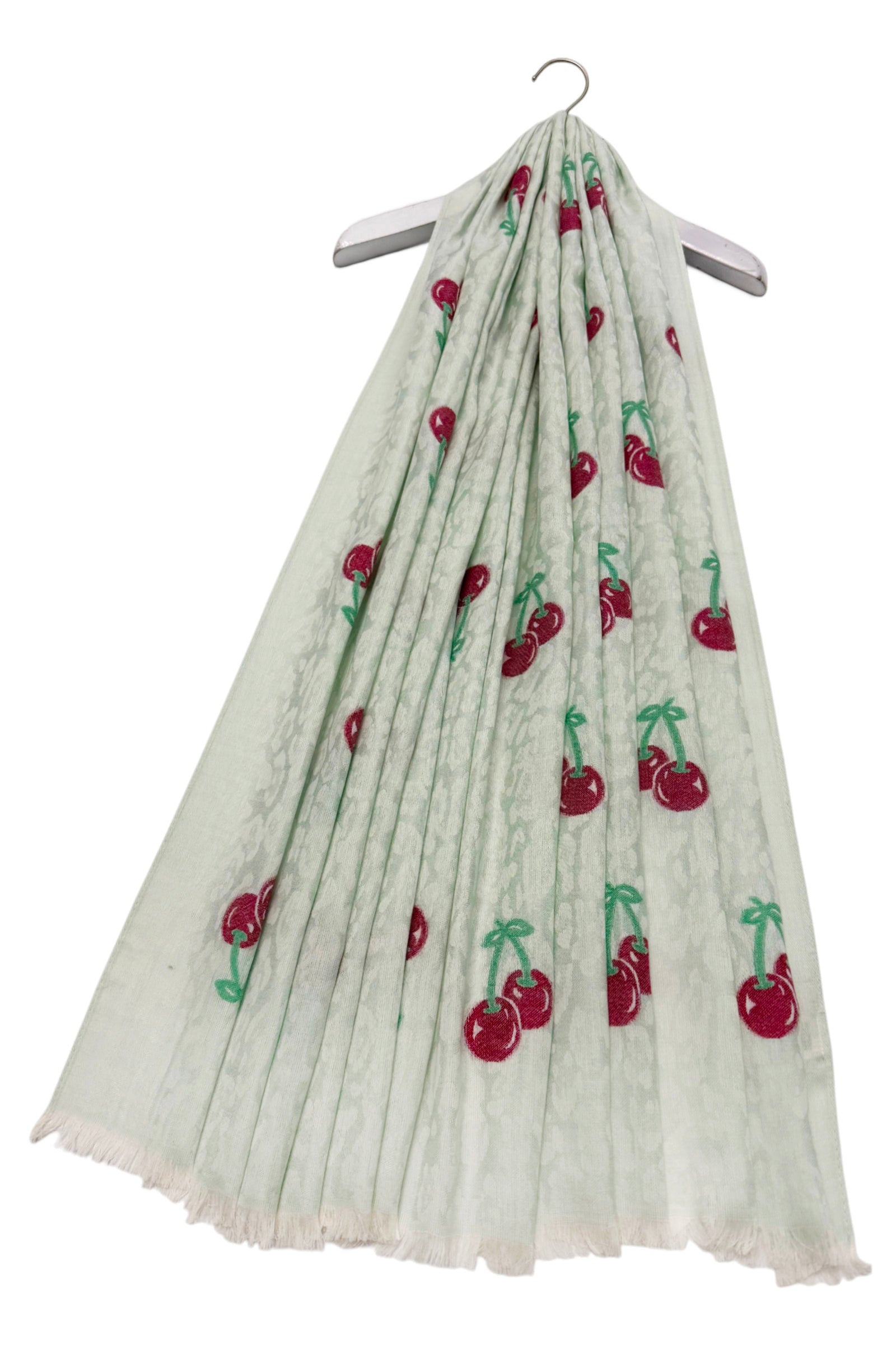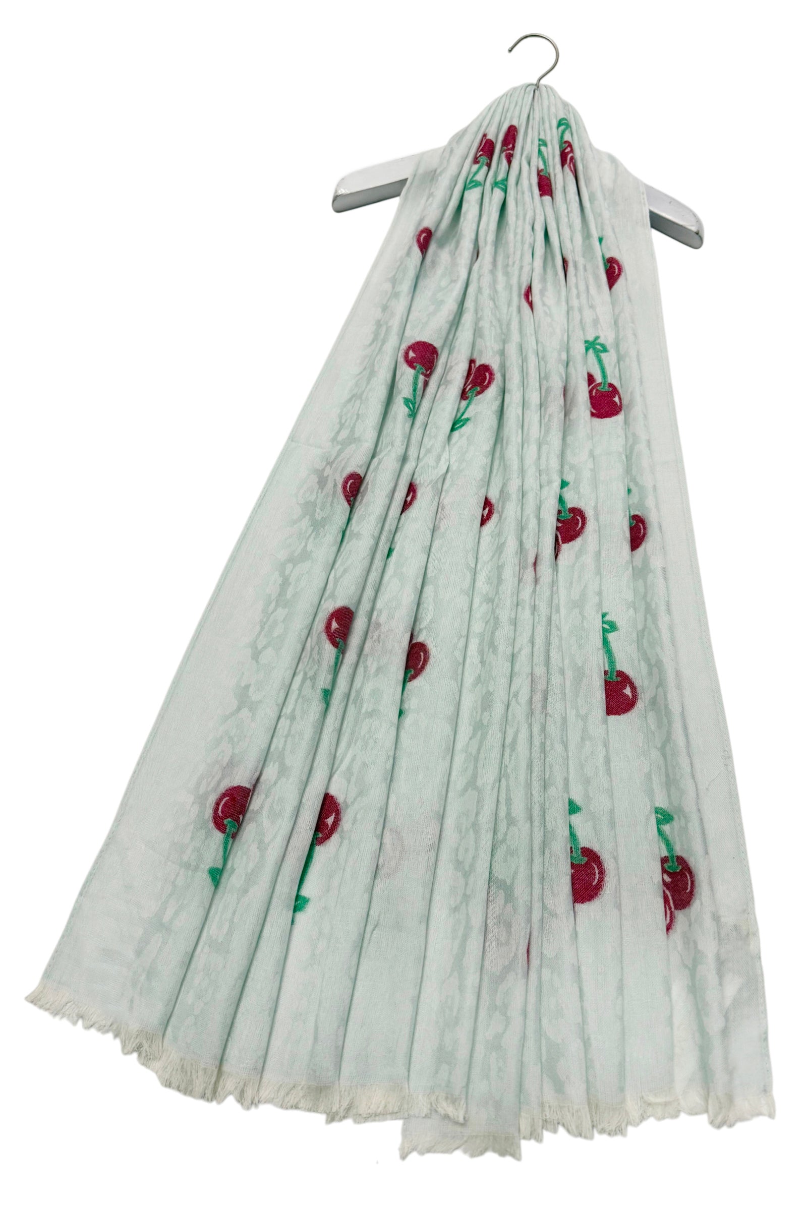 Cherry & Leopard Print Jacquard Cotton Frayed Scarf
