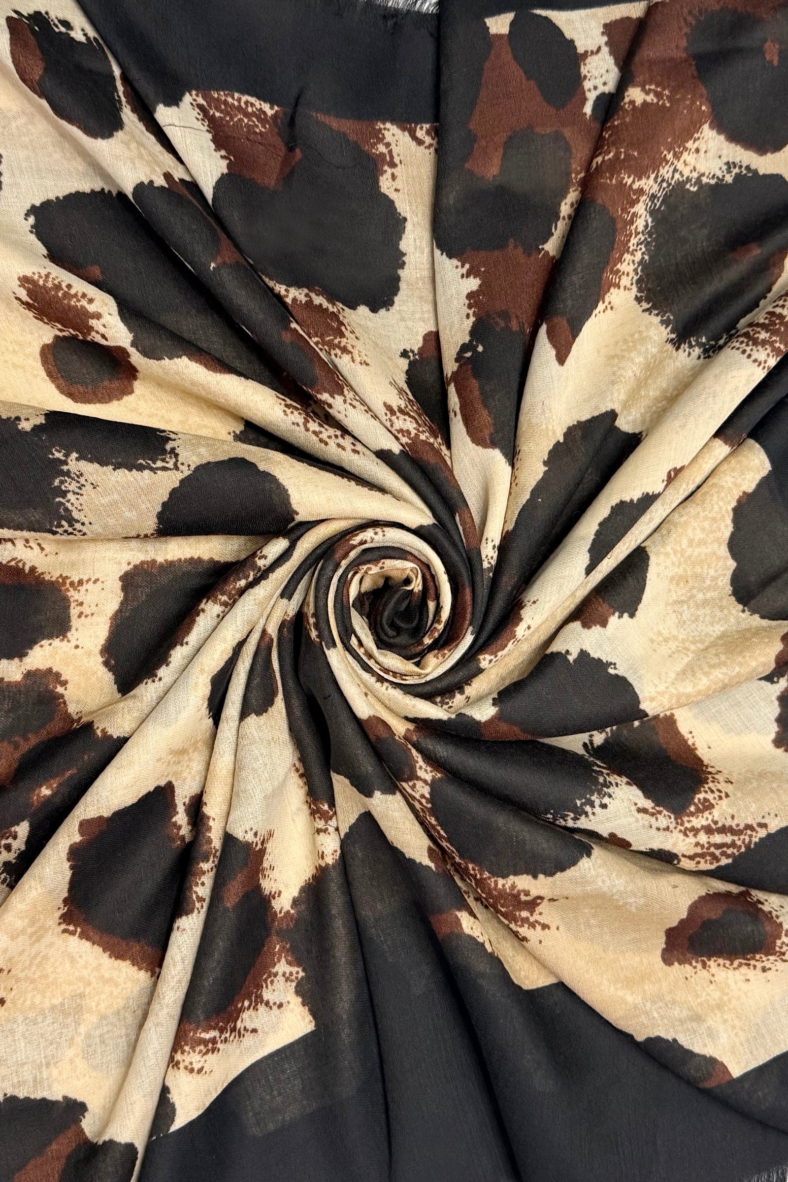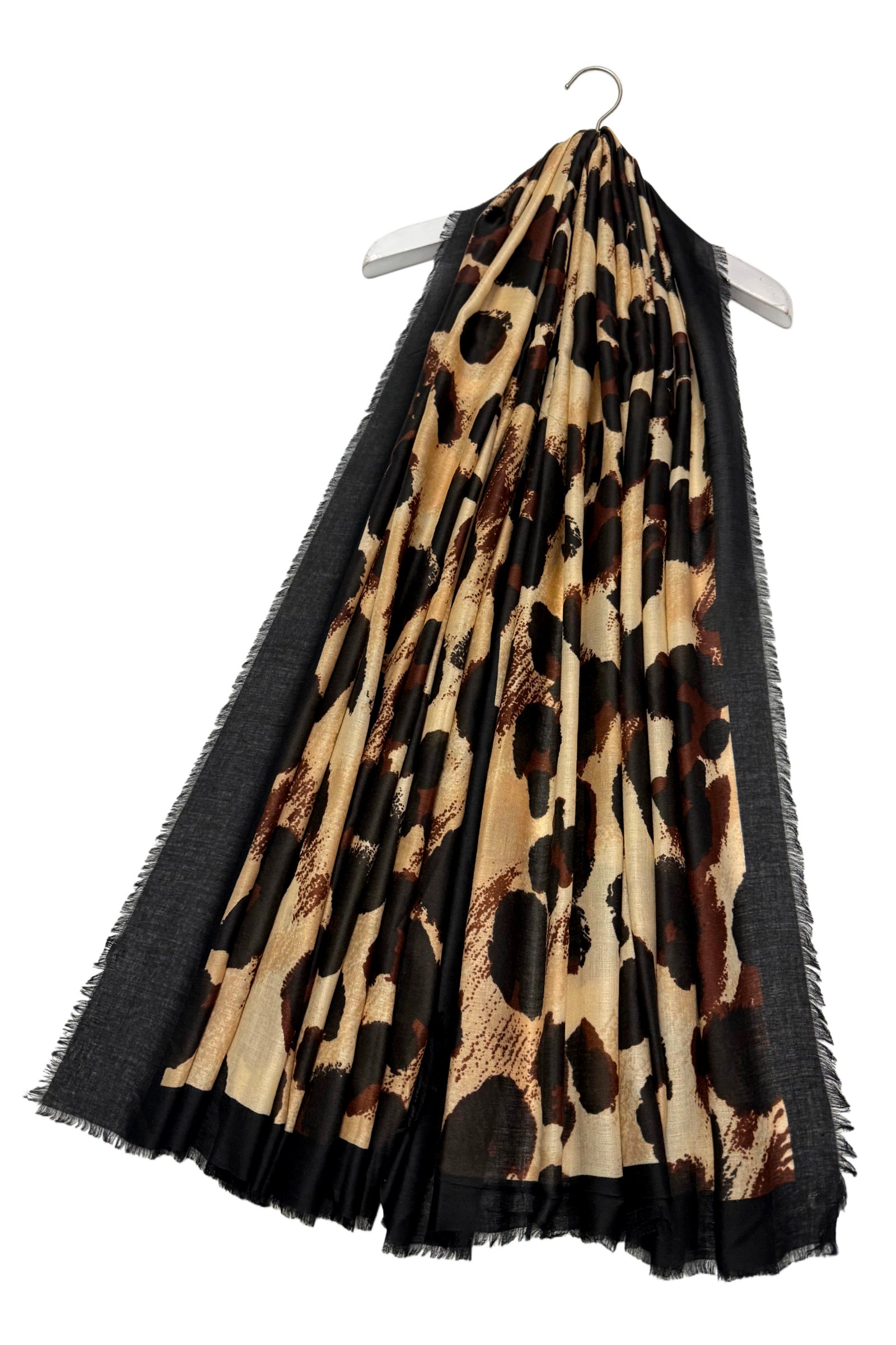 Luxe Leopard Print Scarf with Border Frayed Edge