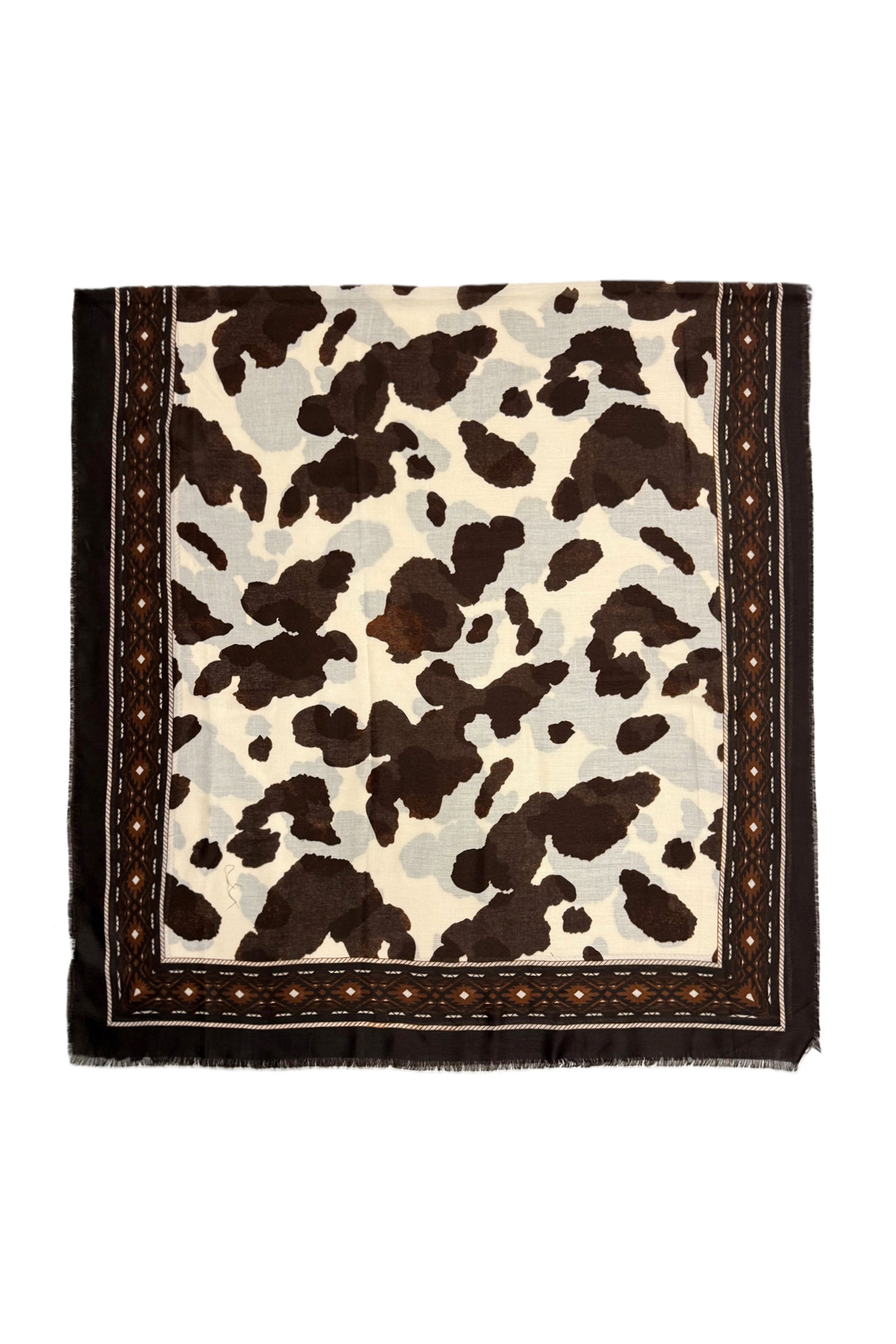 Western Cow Print With Border Frayed Scarf