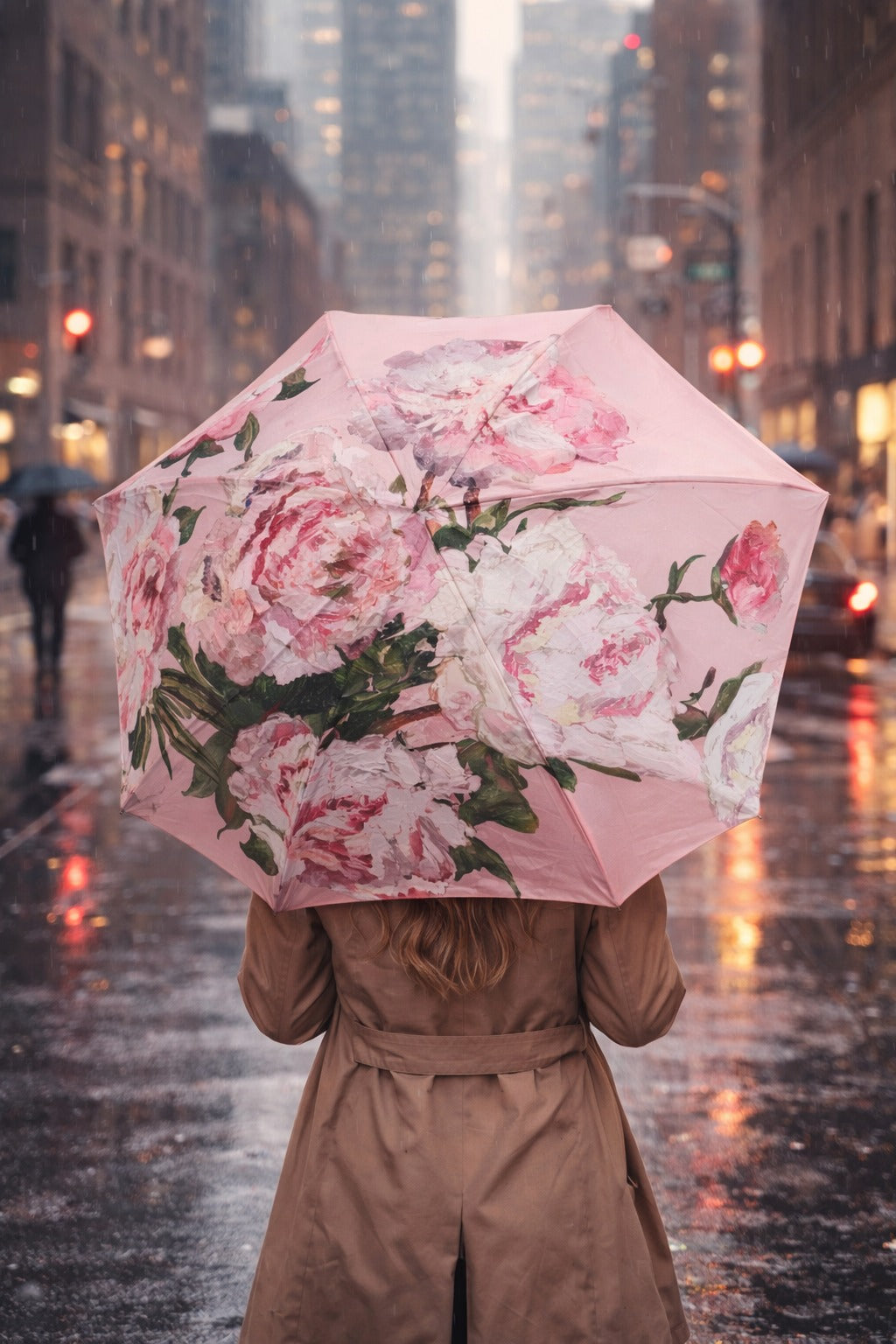 Pink Peonies Floral Umbrella with Travel Case (Mini)