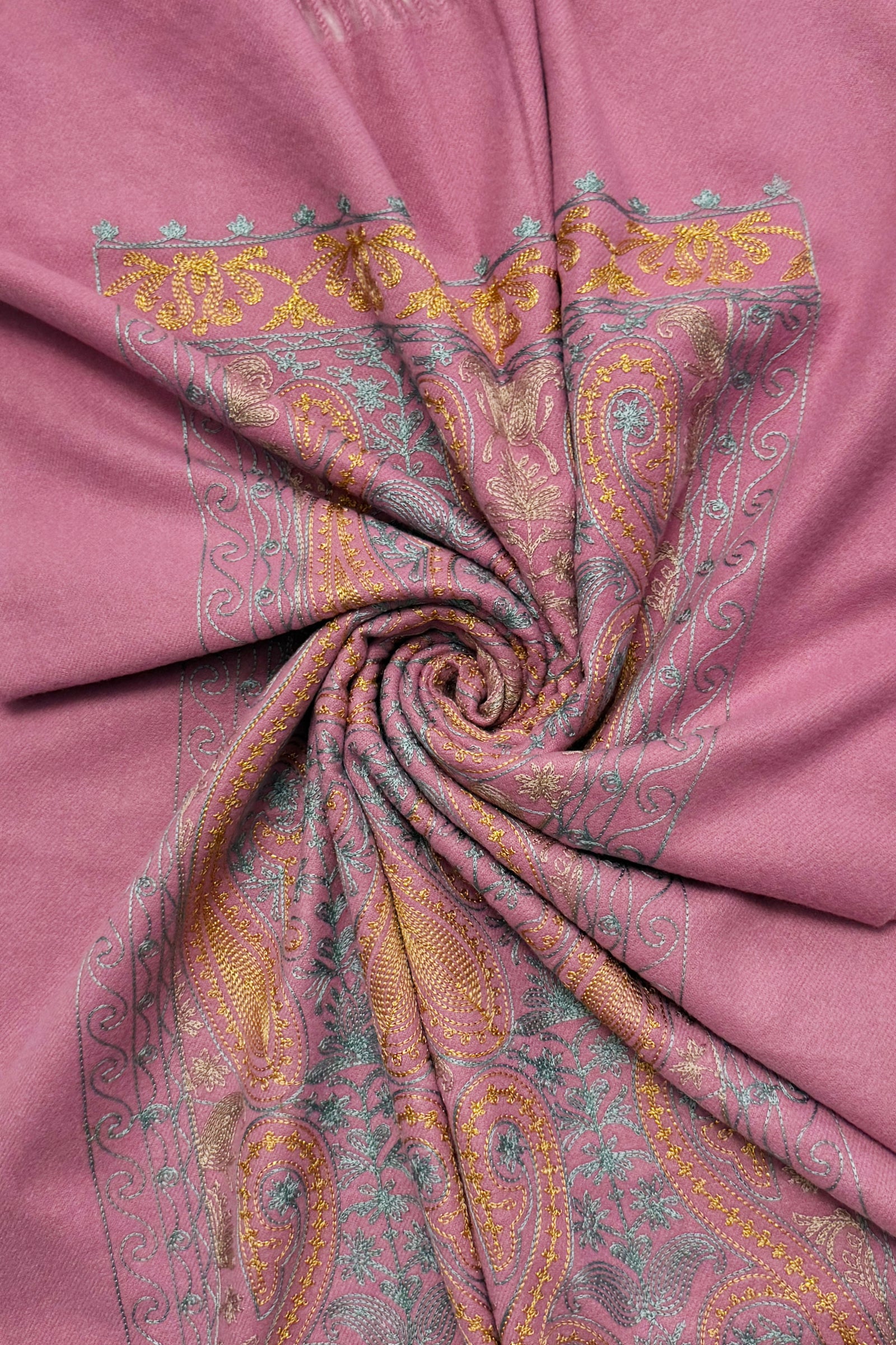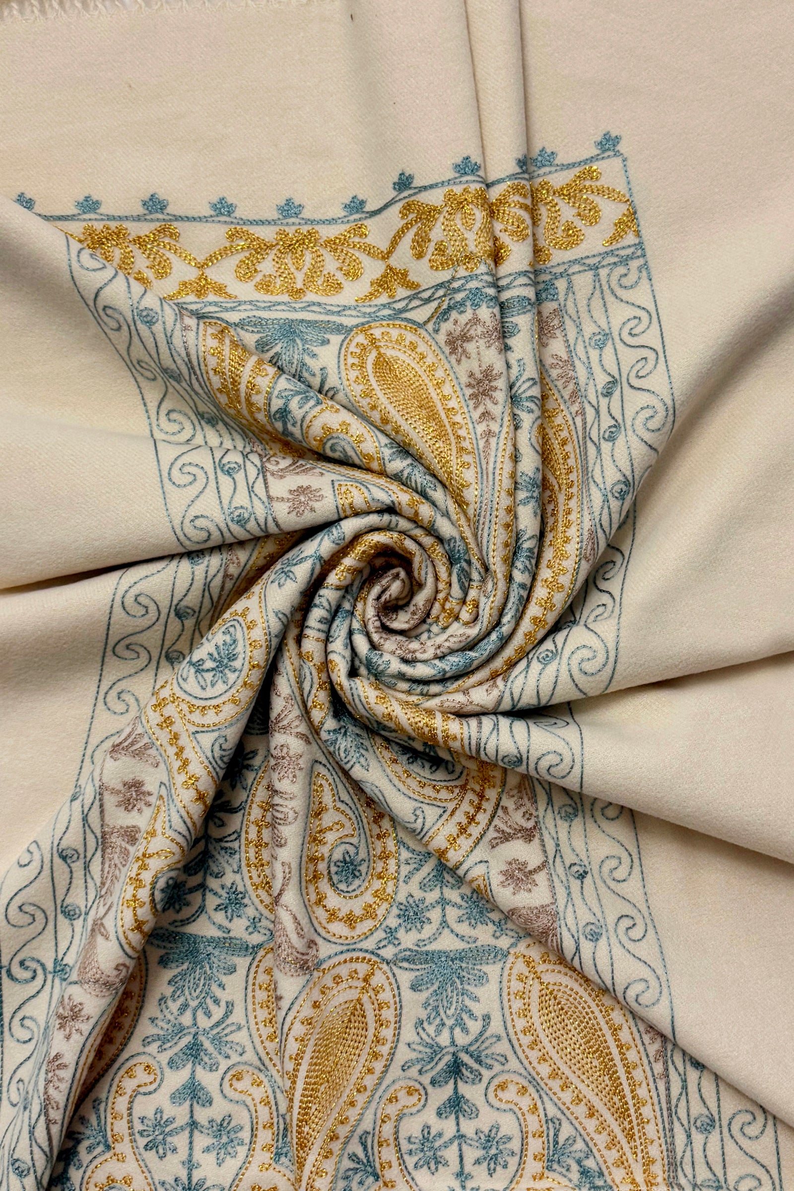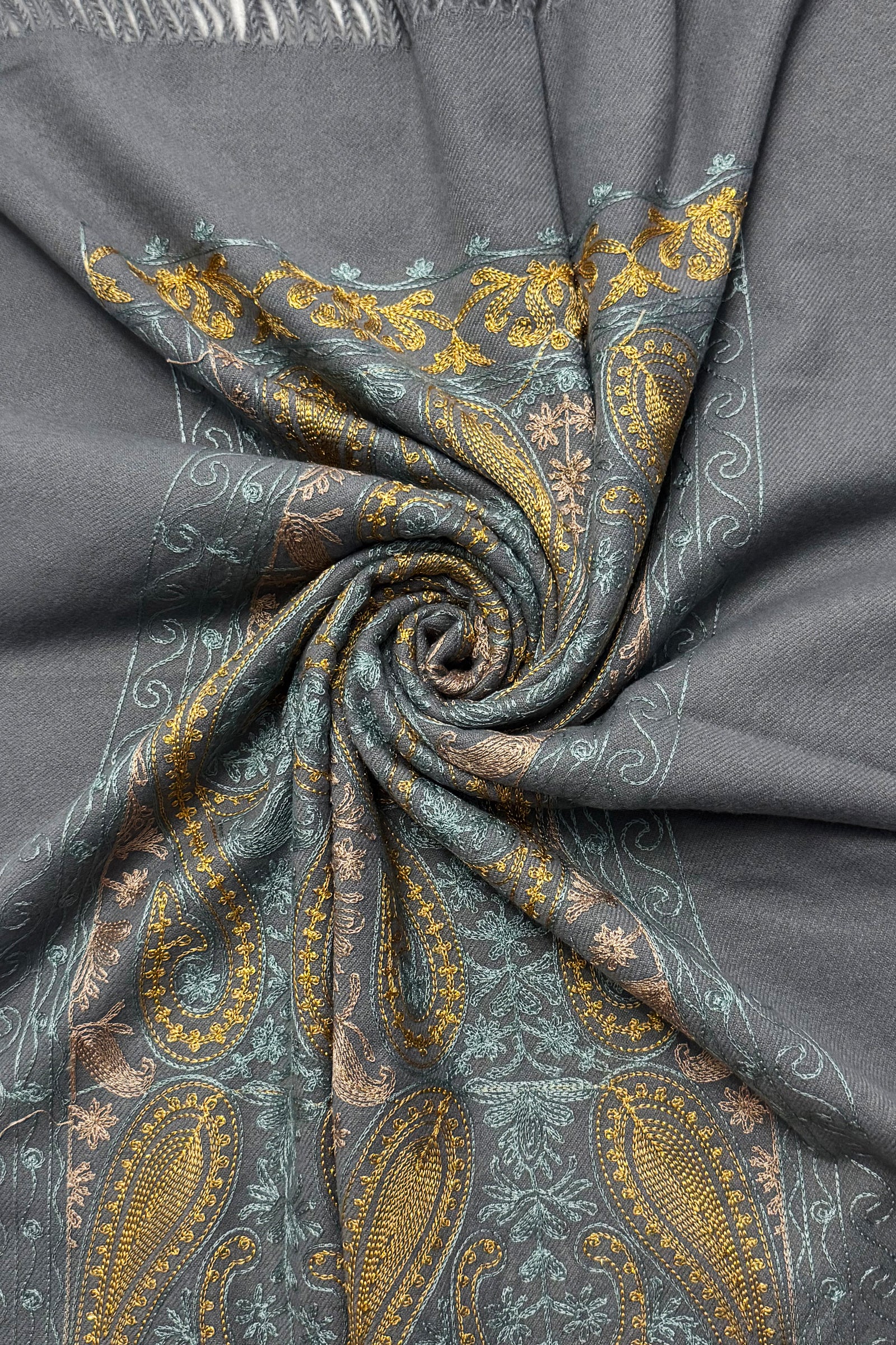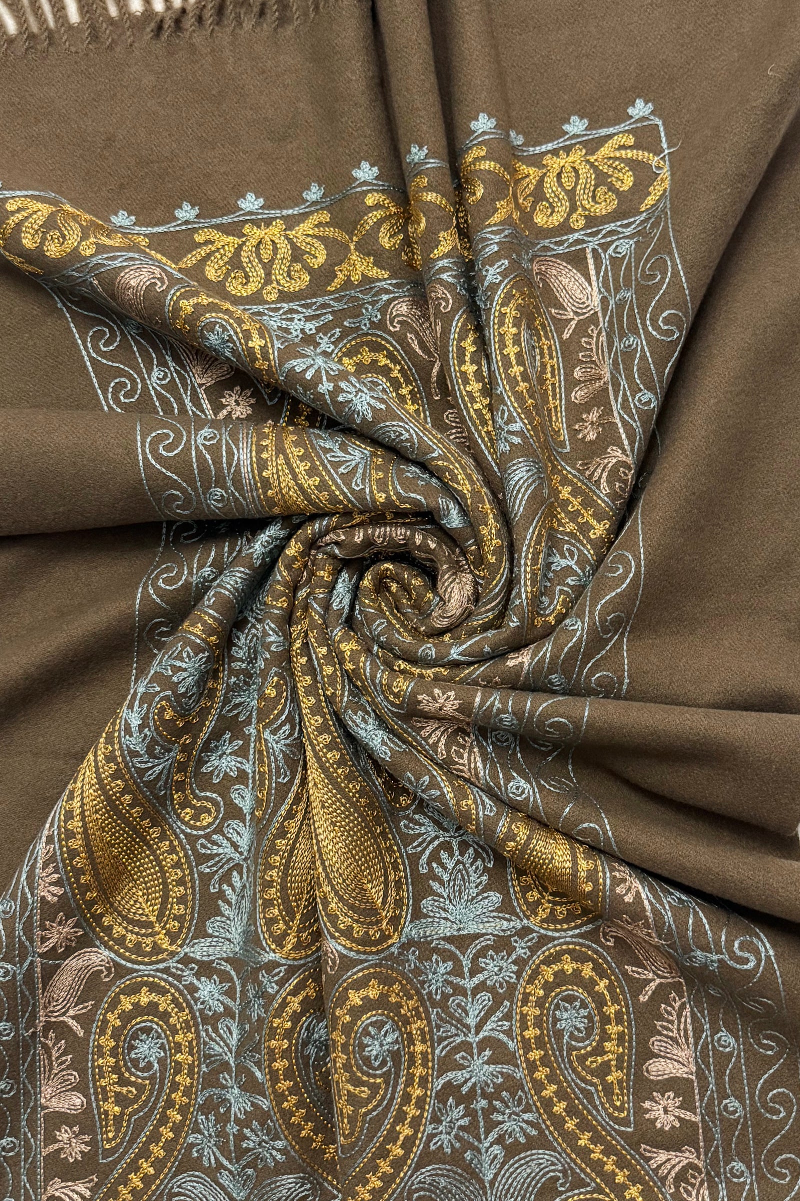 Intricate Paisley Panel Embroidered Wool Tassel Scarf