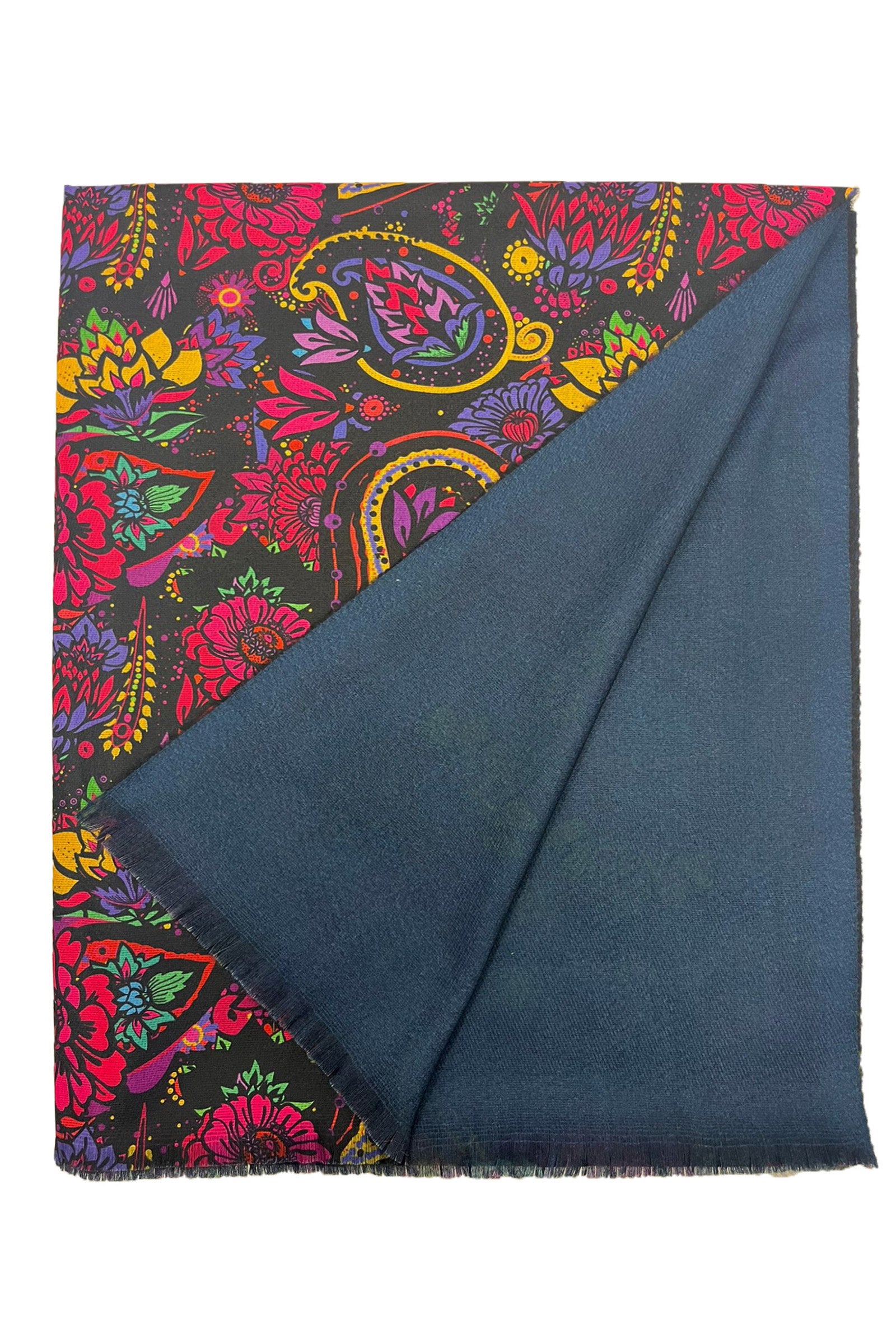 Indian Inspired Bold Floral & Paisley Wool Frayed Scarf