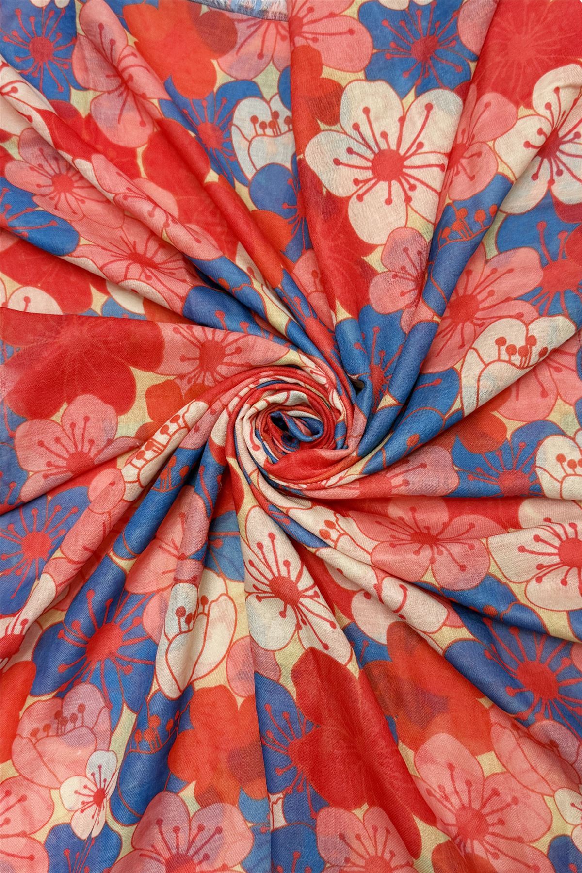Cute Retro Cherry Blossom Print Frayed Scarf