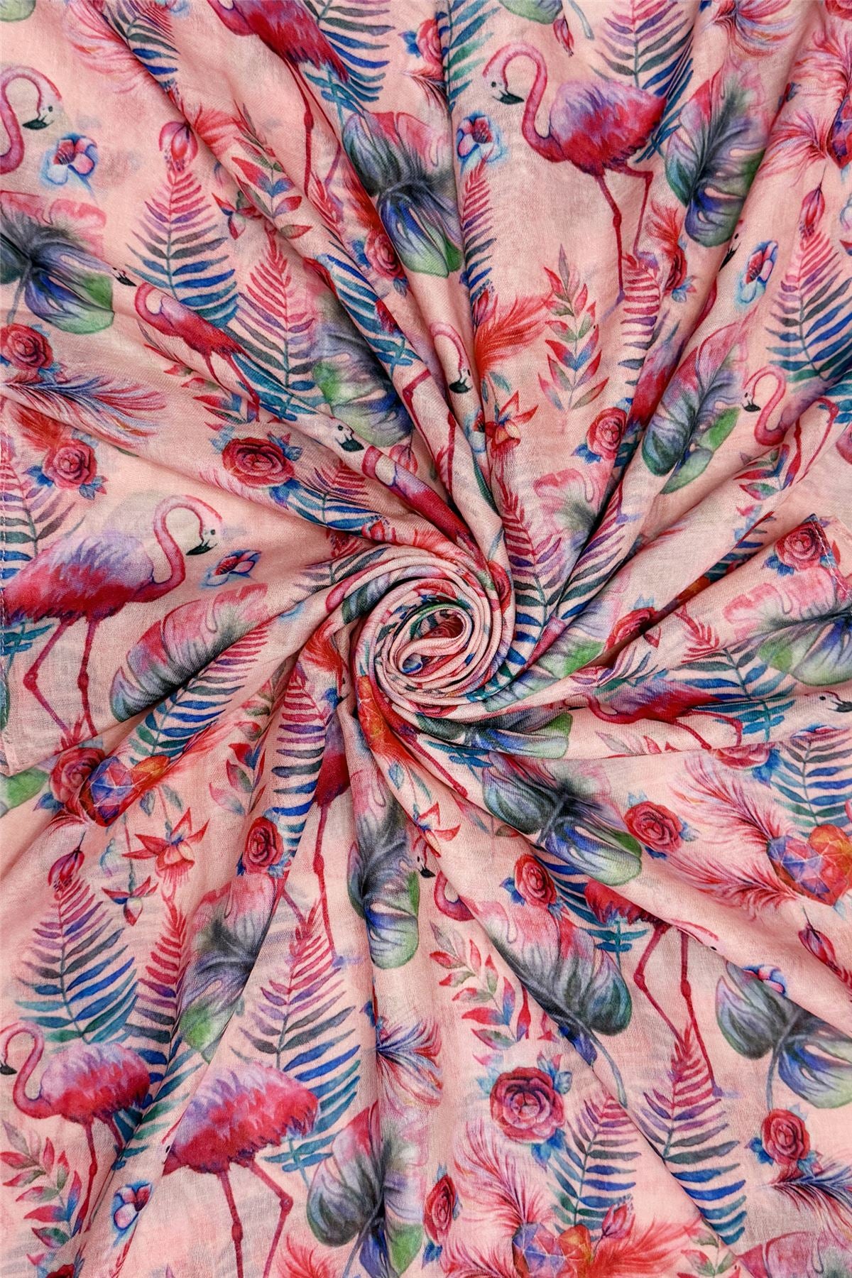 Tropical Flamingo & Heart Print Frayed Scarf