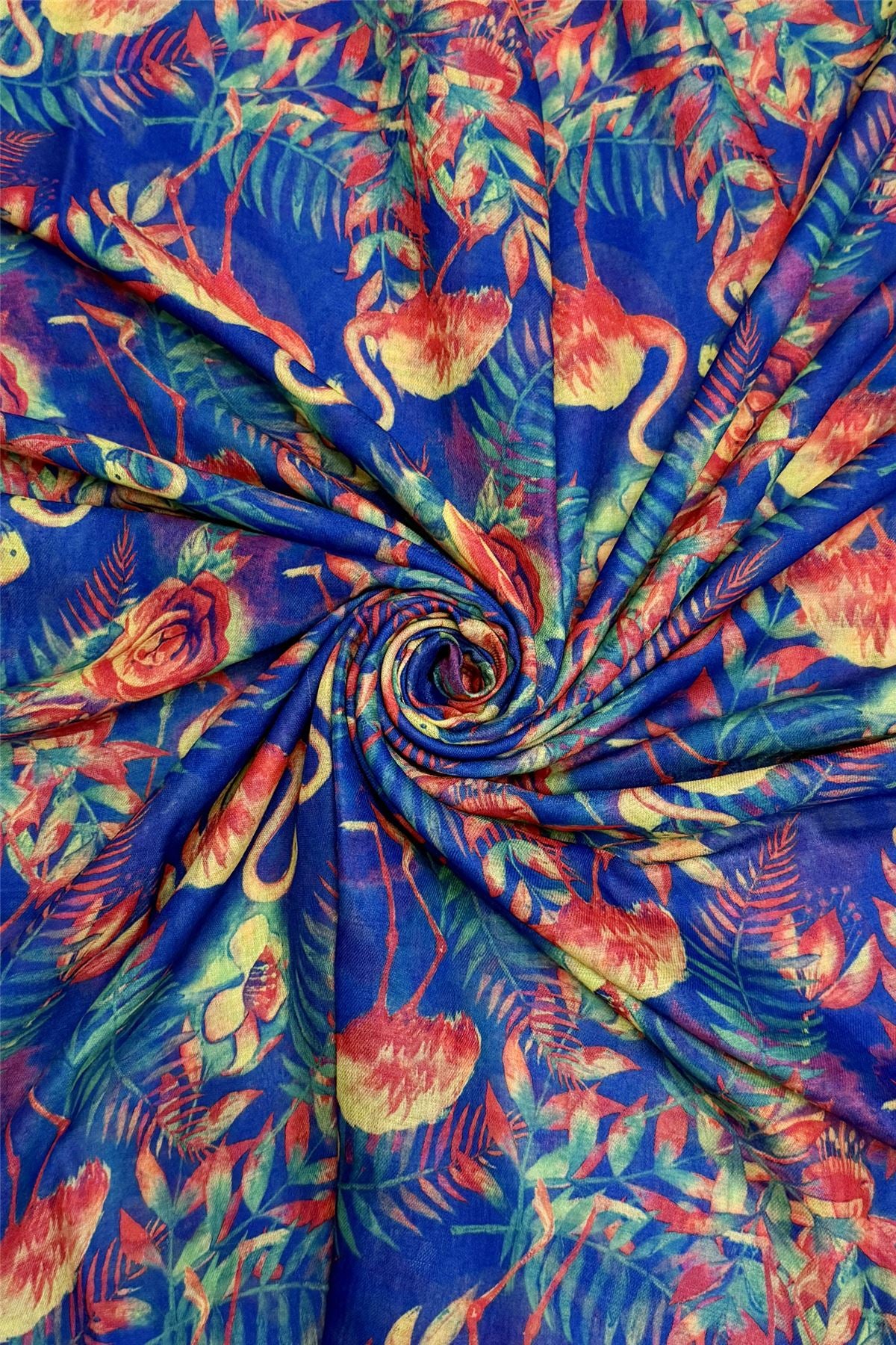Tropical Flamingo & Floral Print Frayed Scarf