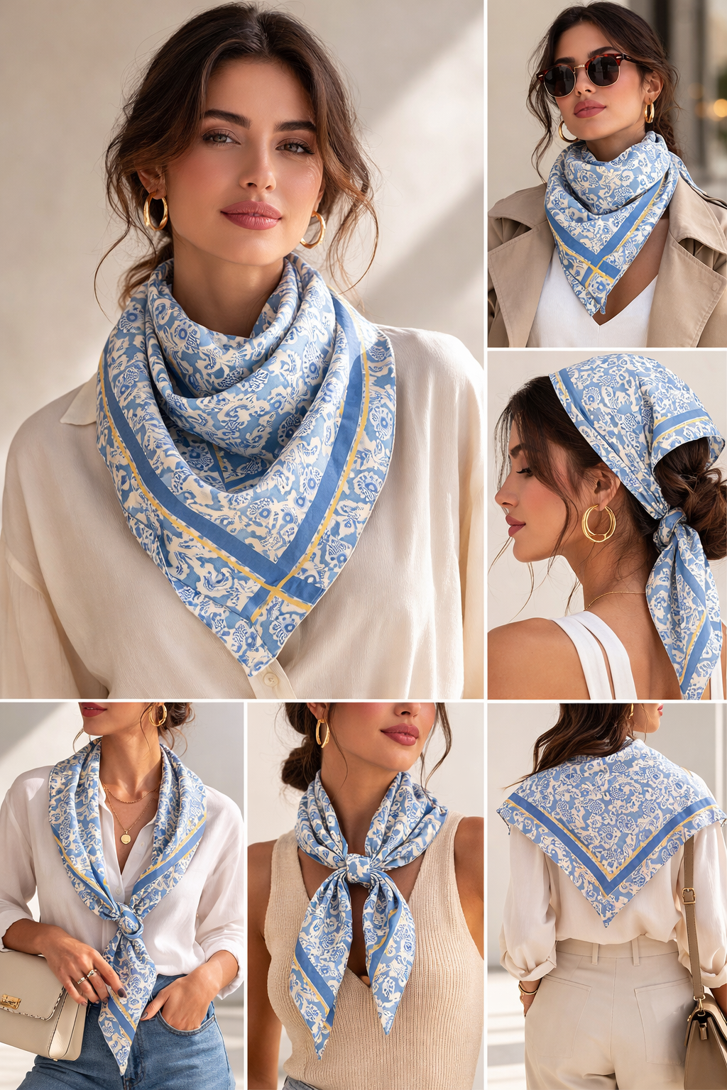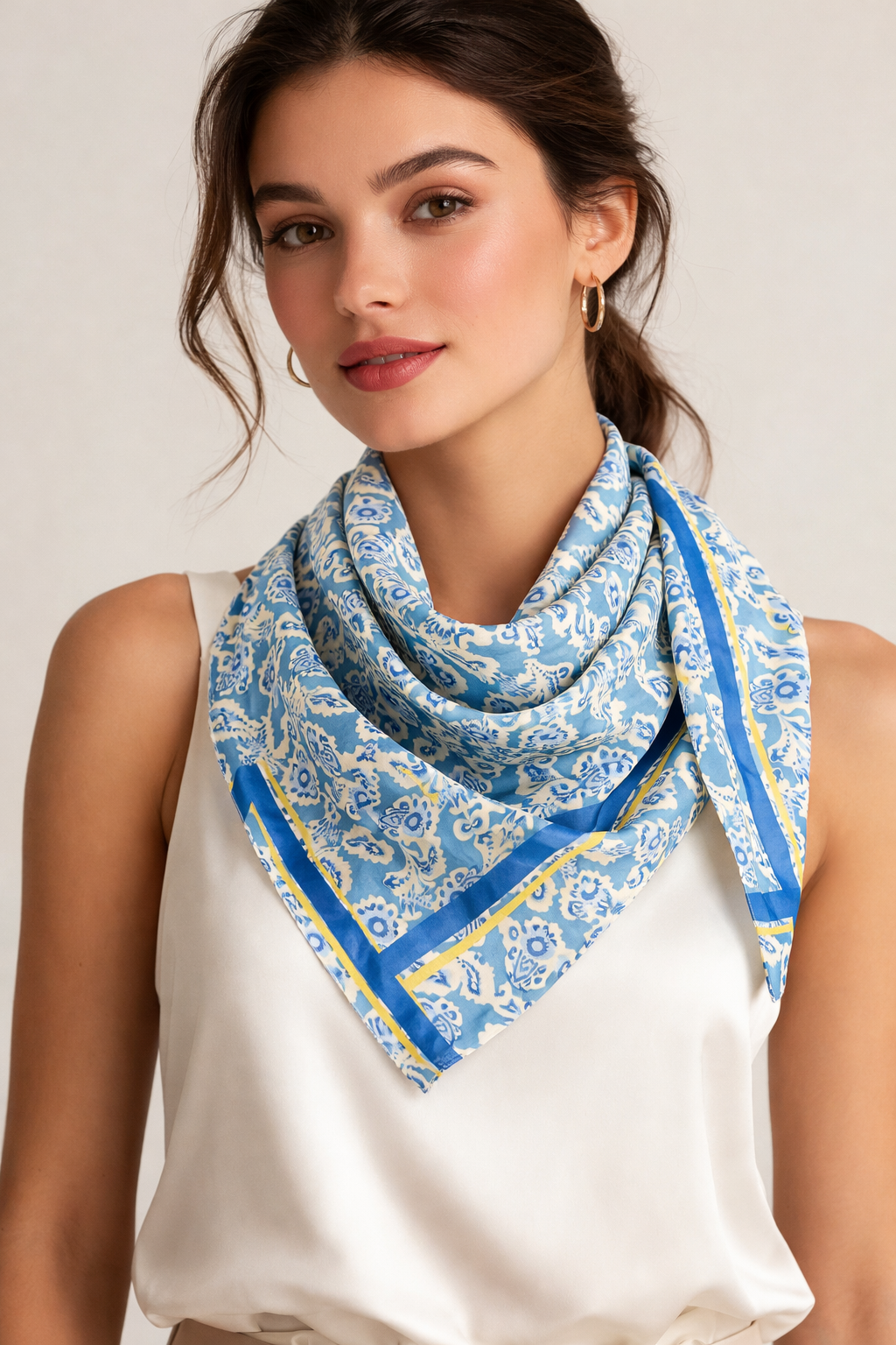 Paisley Print & Border Print Silk Triangle Scarf