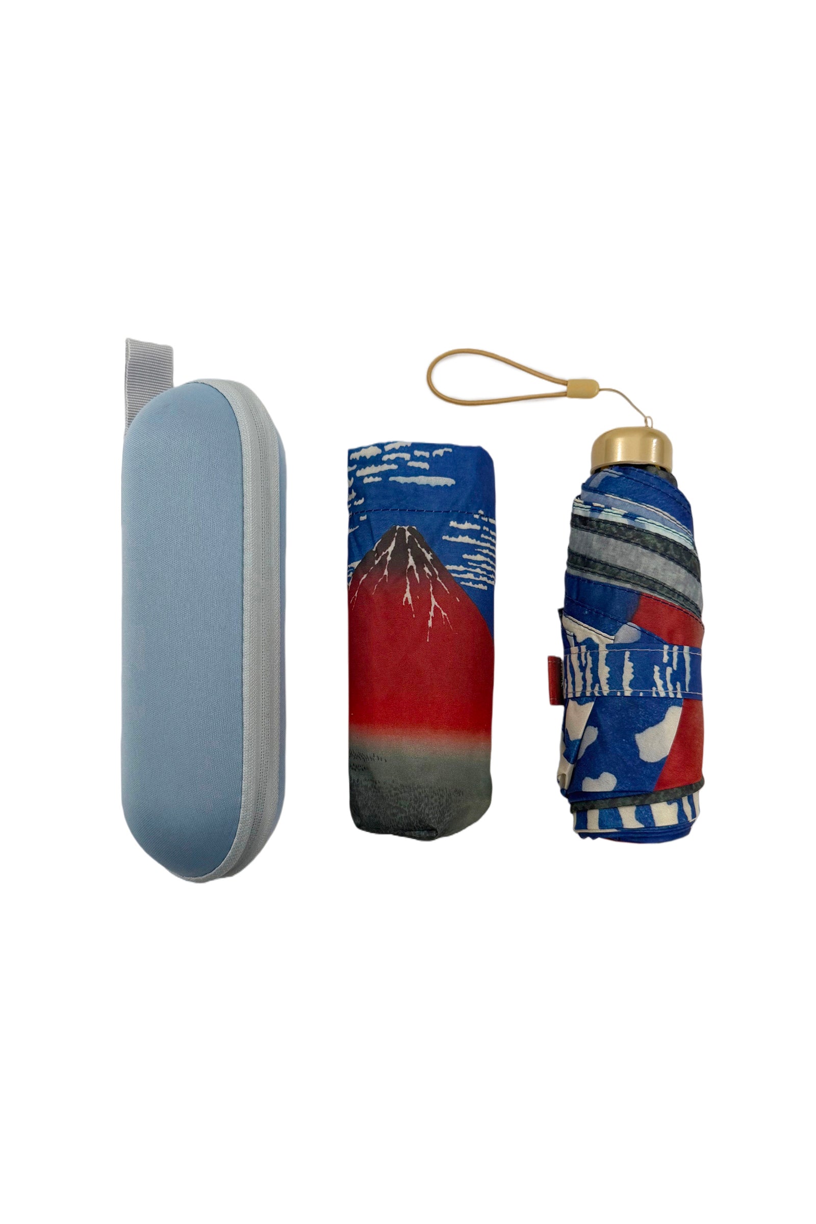 Hokusai Red Mount Fuji Umbrella with Travel Case (Mini)