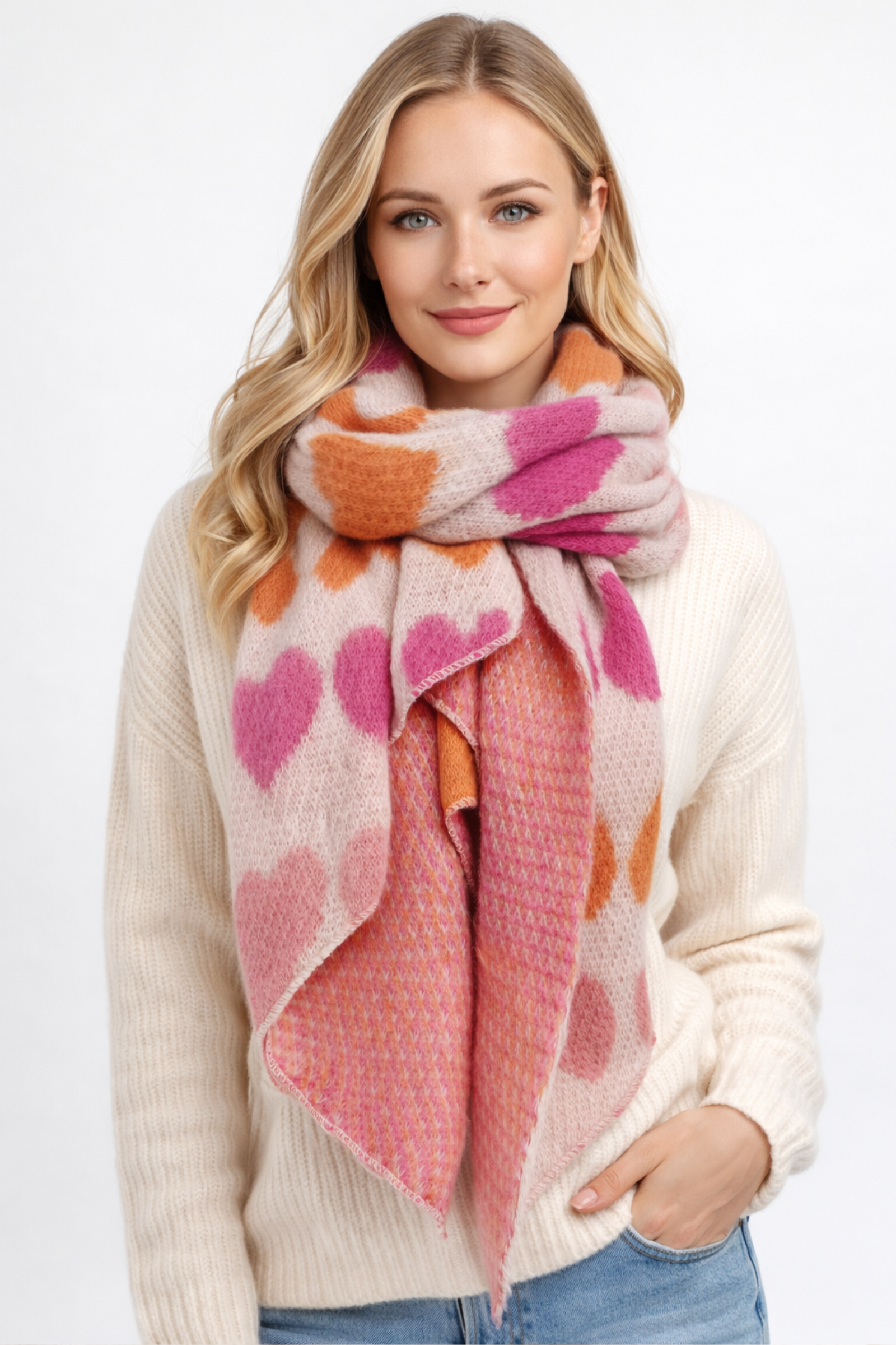 Love Heart Diagonal Edge Knitted Wool Scarf