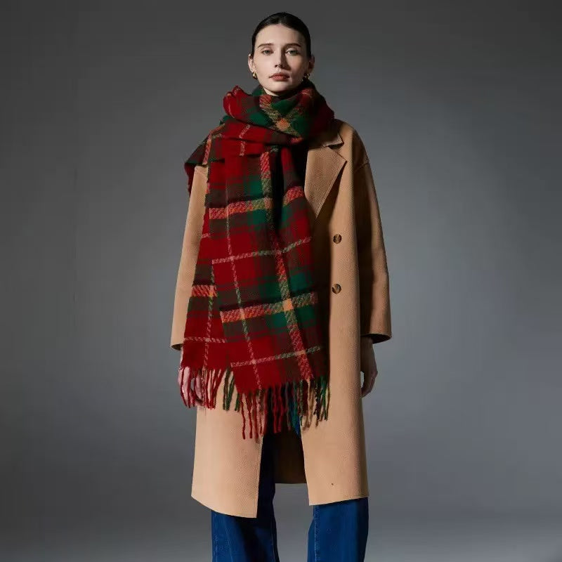 Tartan Check Wool Tassel Scarf