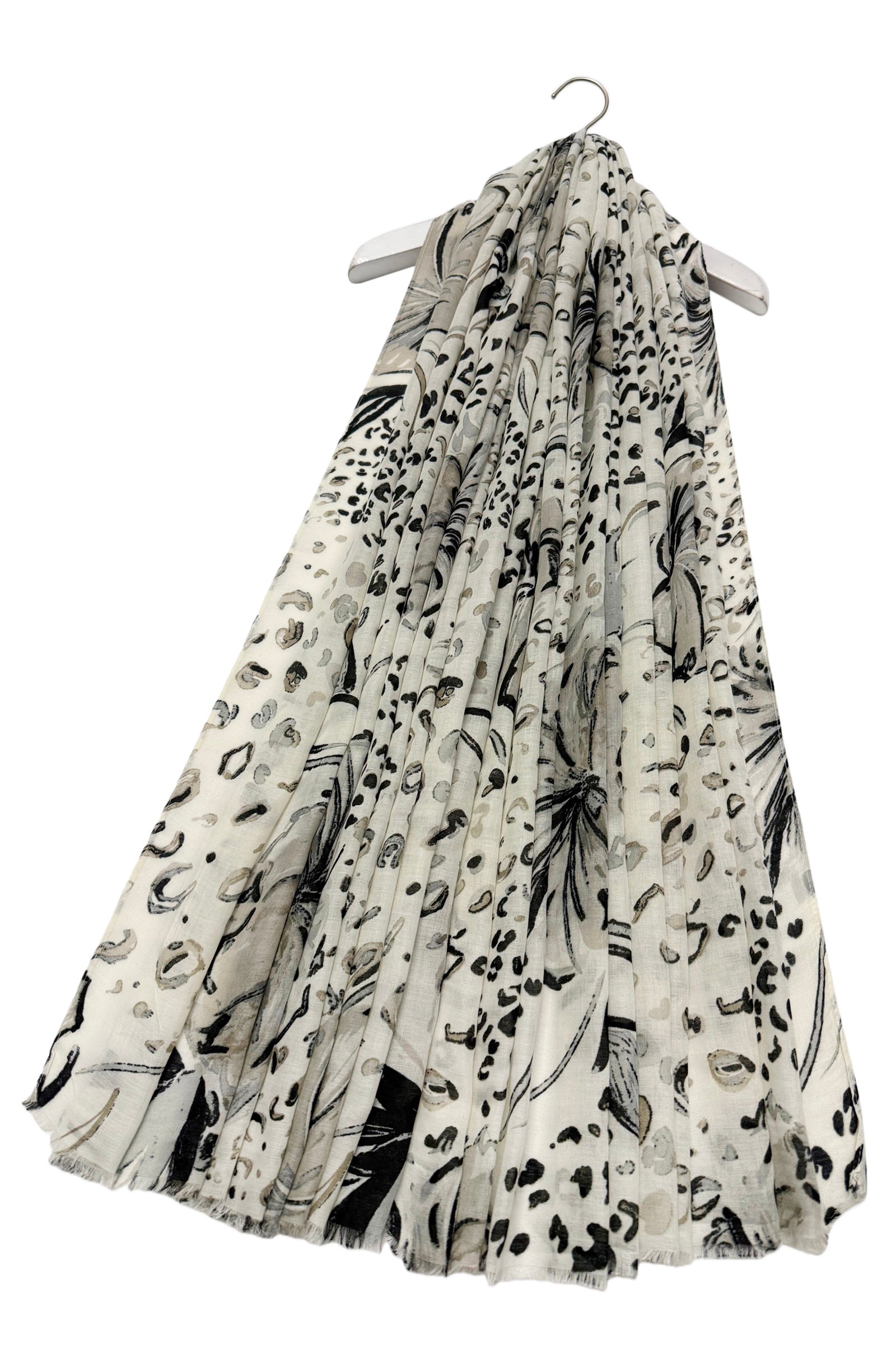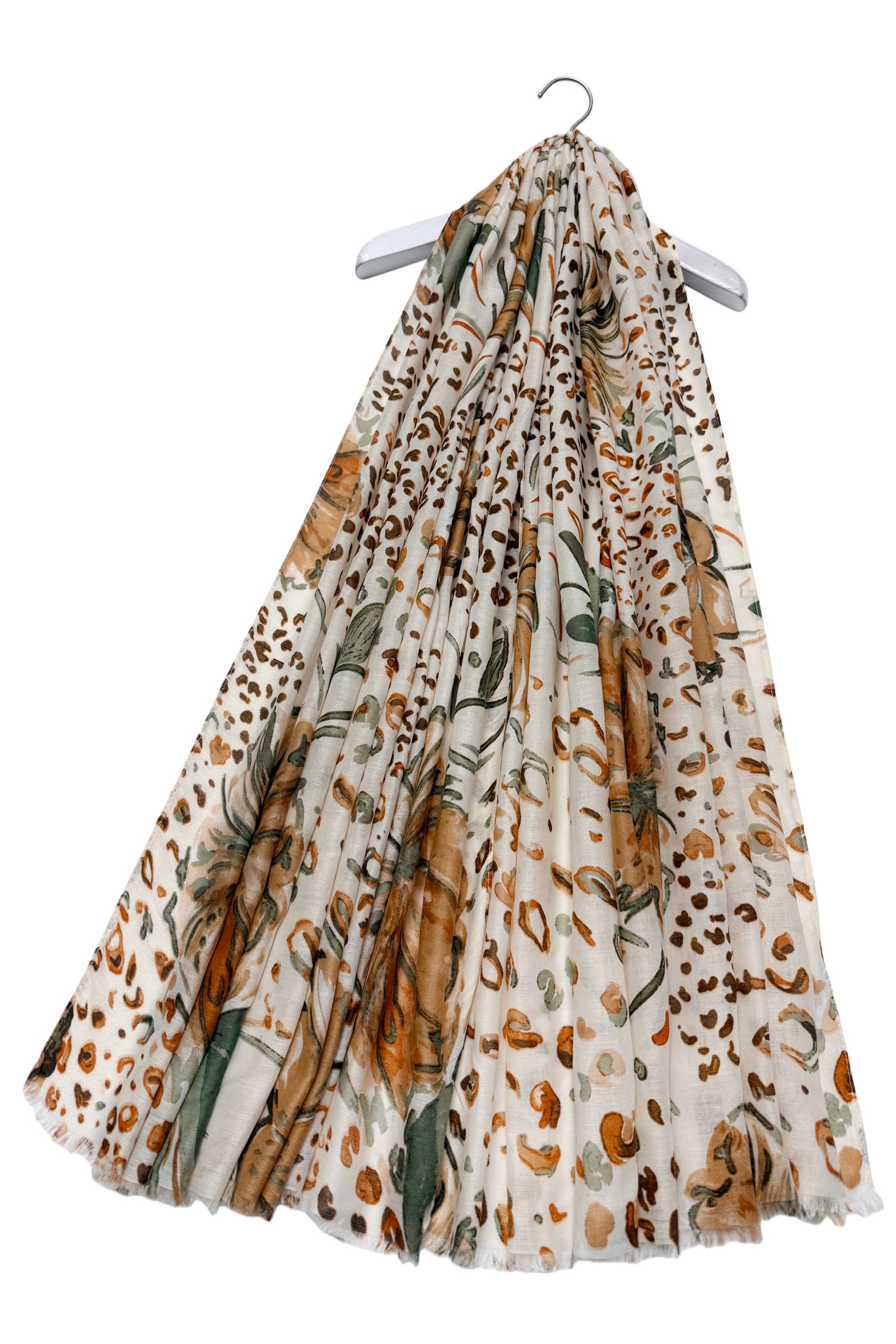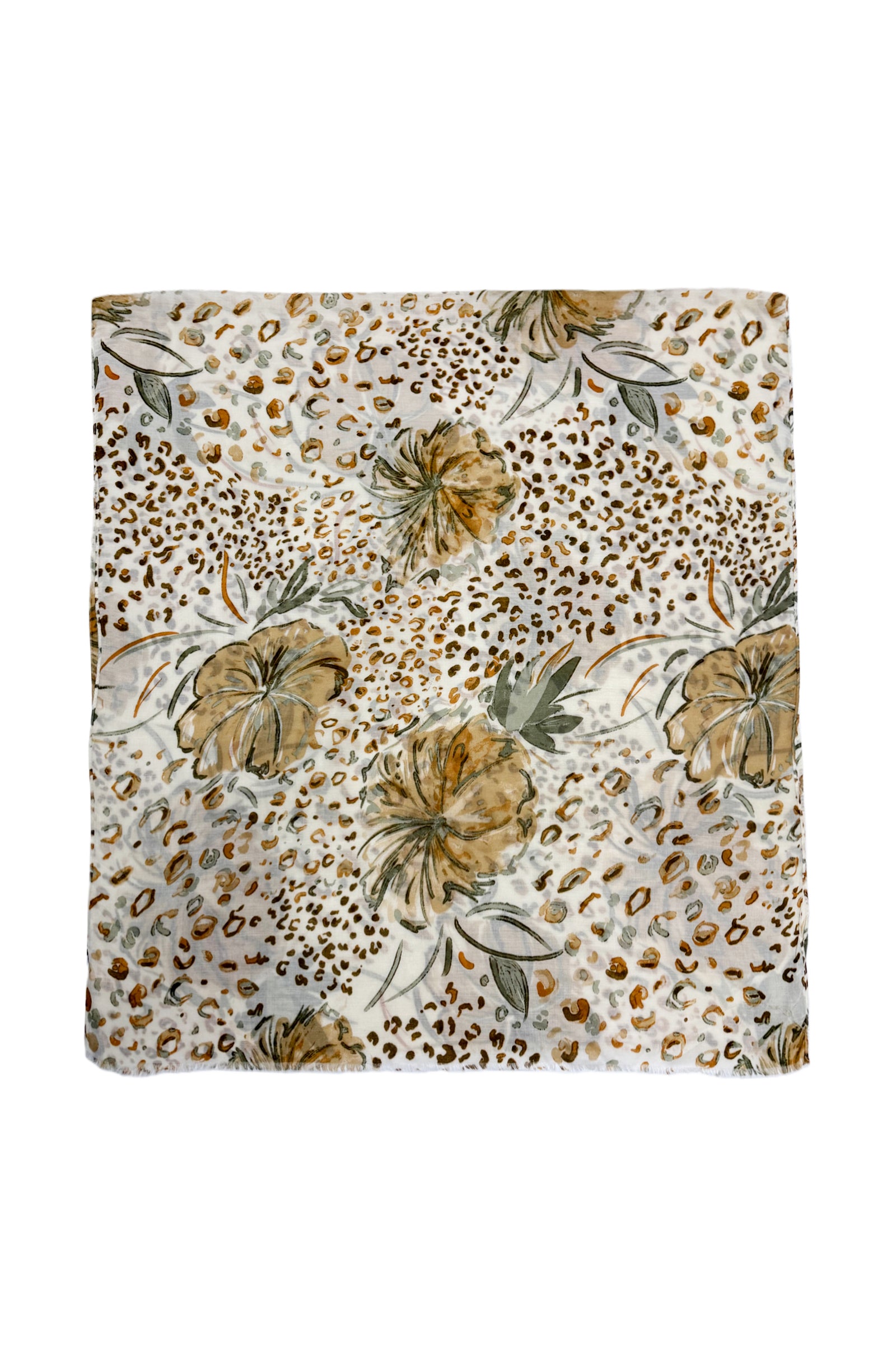 Hibiscus and Leopard Print Frayed Scarf