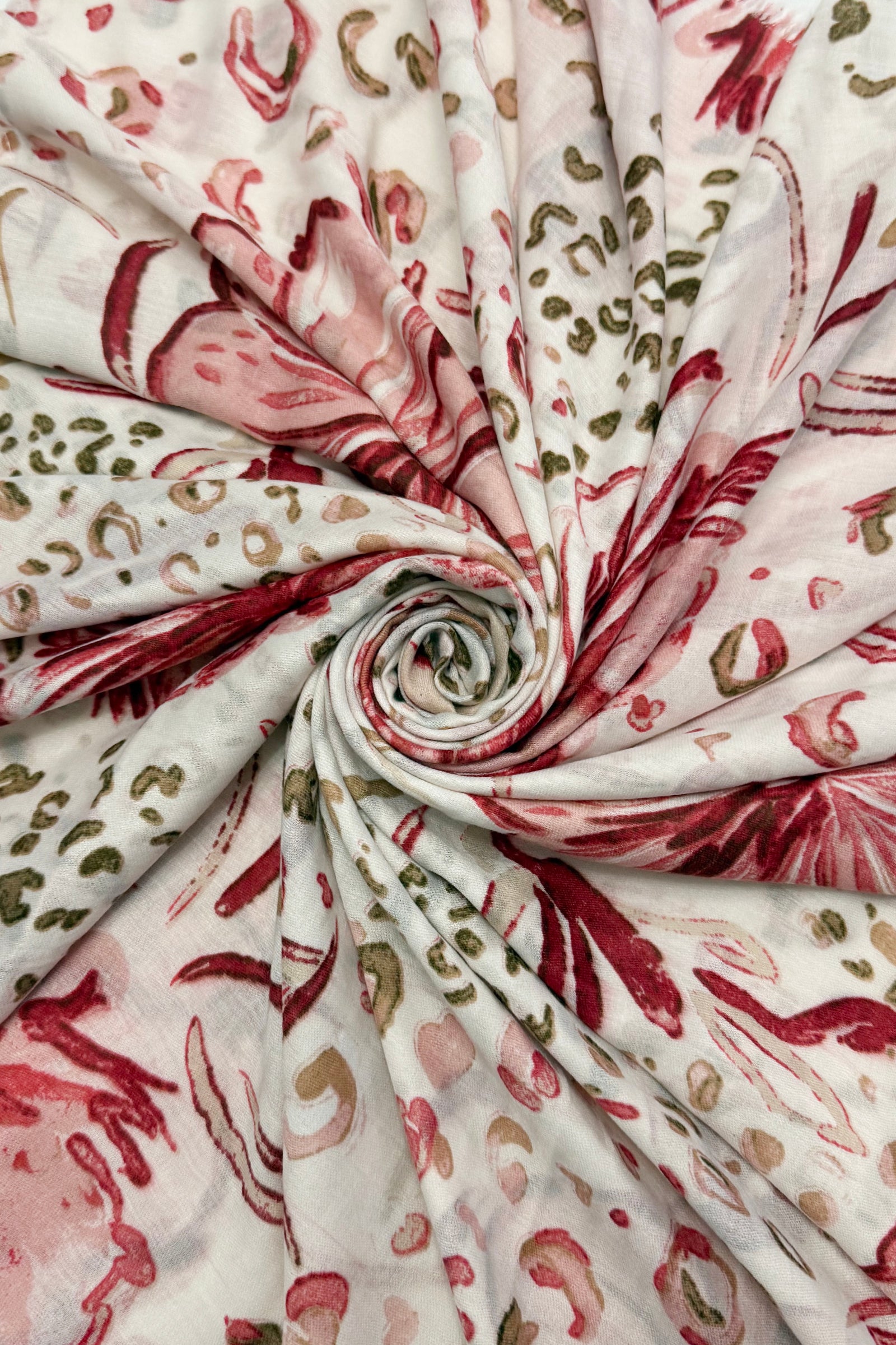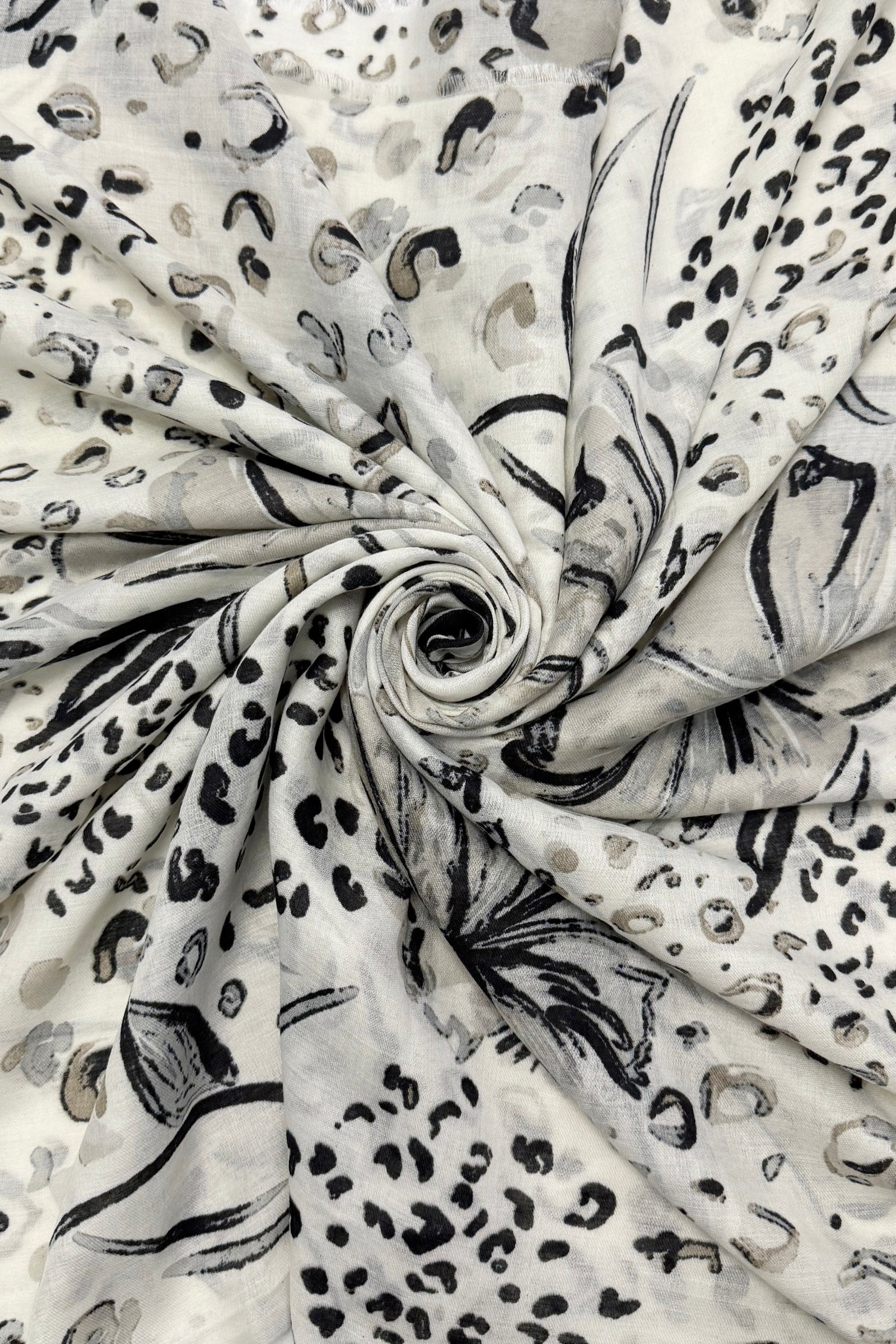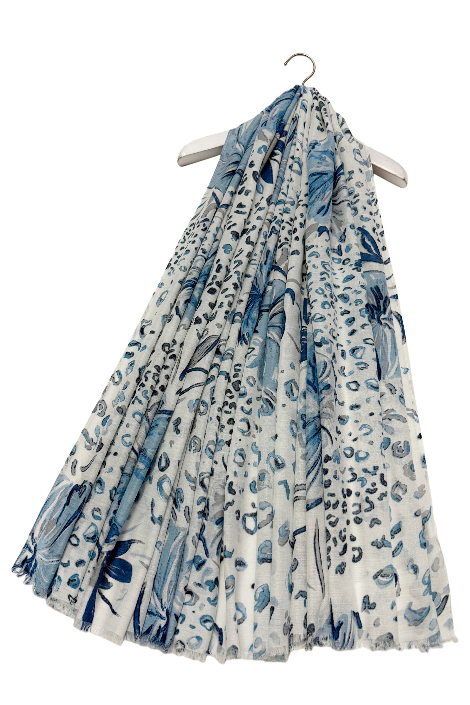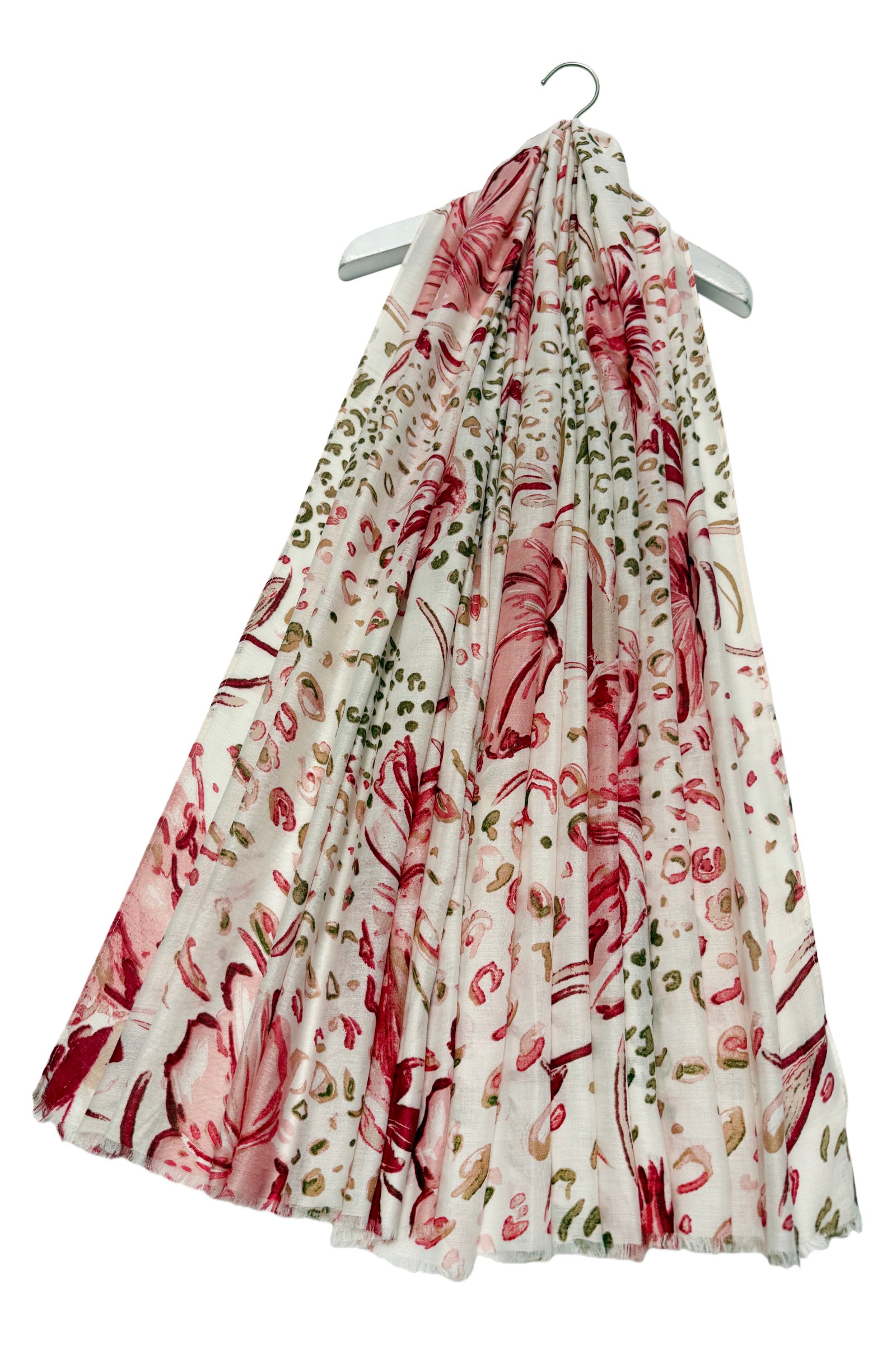 Hibiscus and Leopard Print Frayed Scarf
