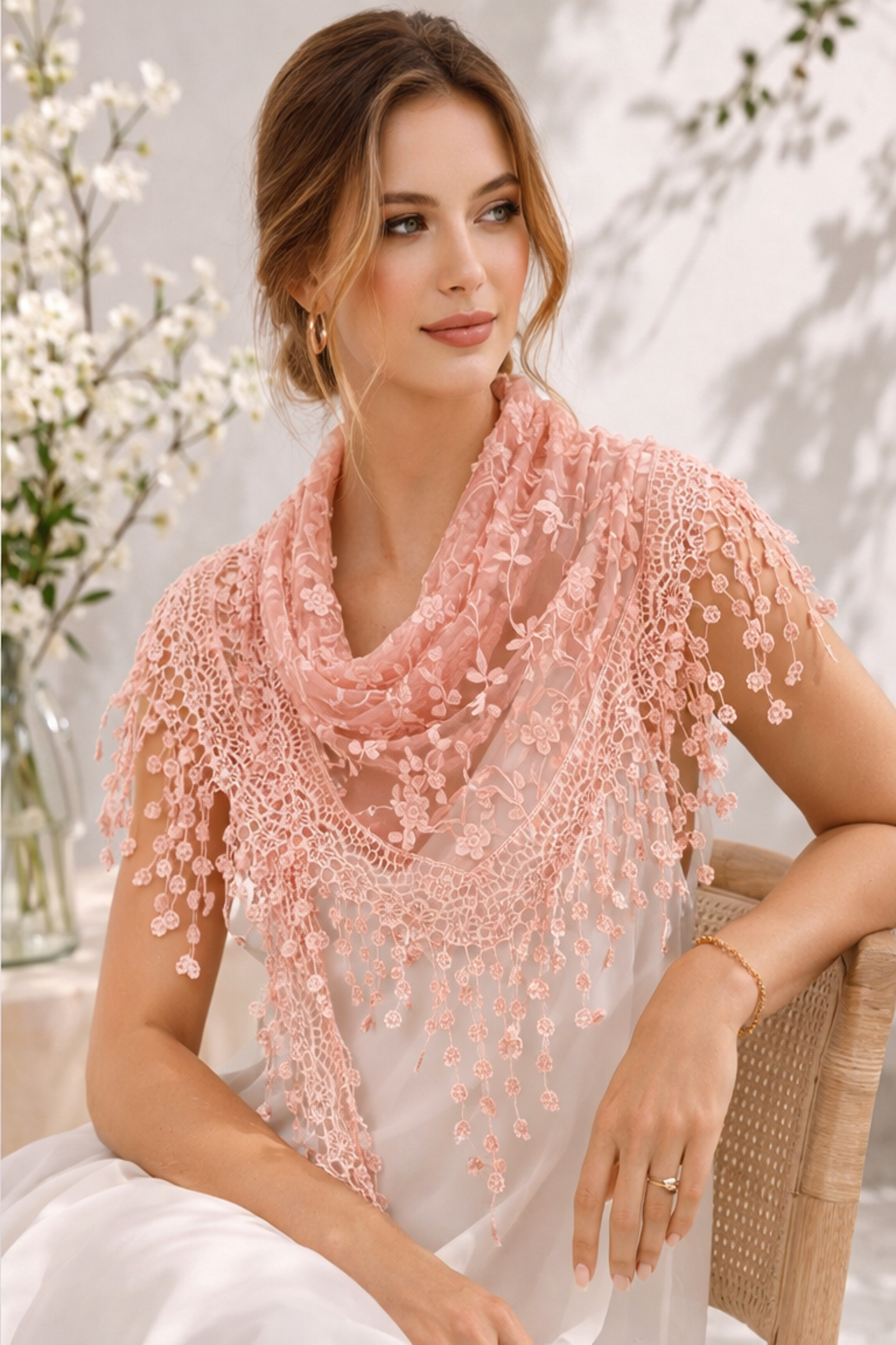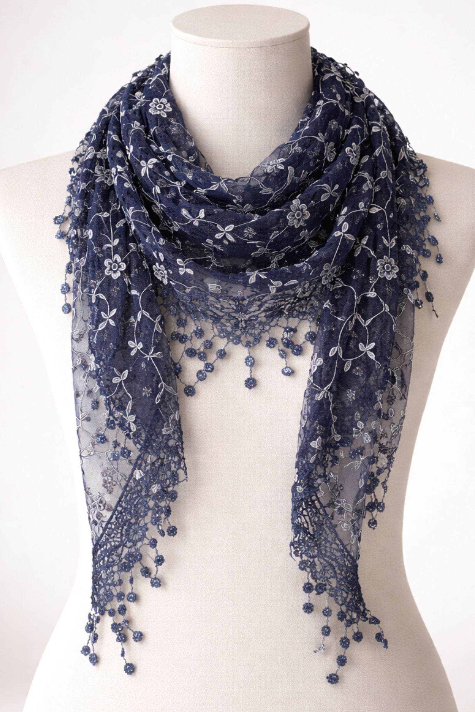 Glitter Flower Triangle Tassel Scarf