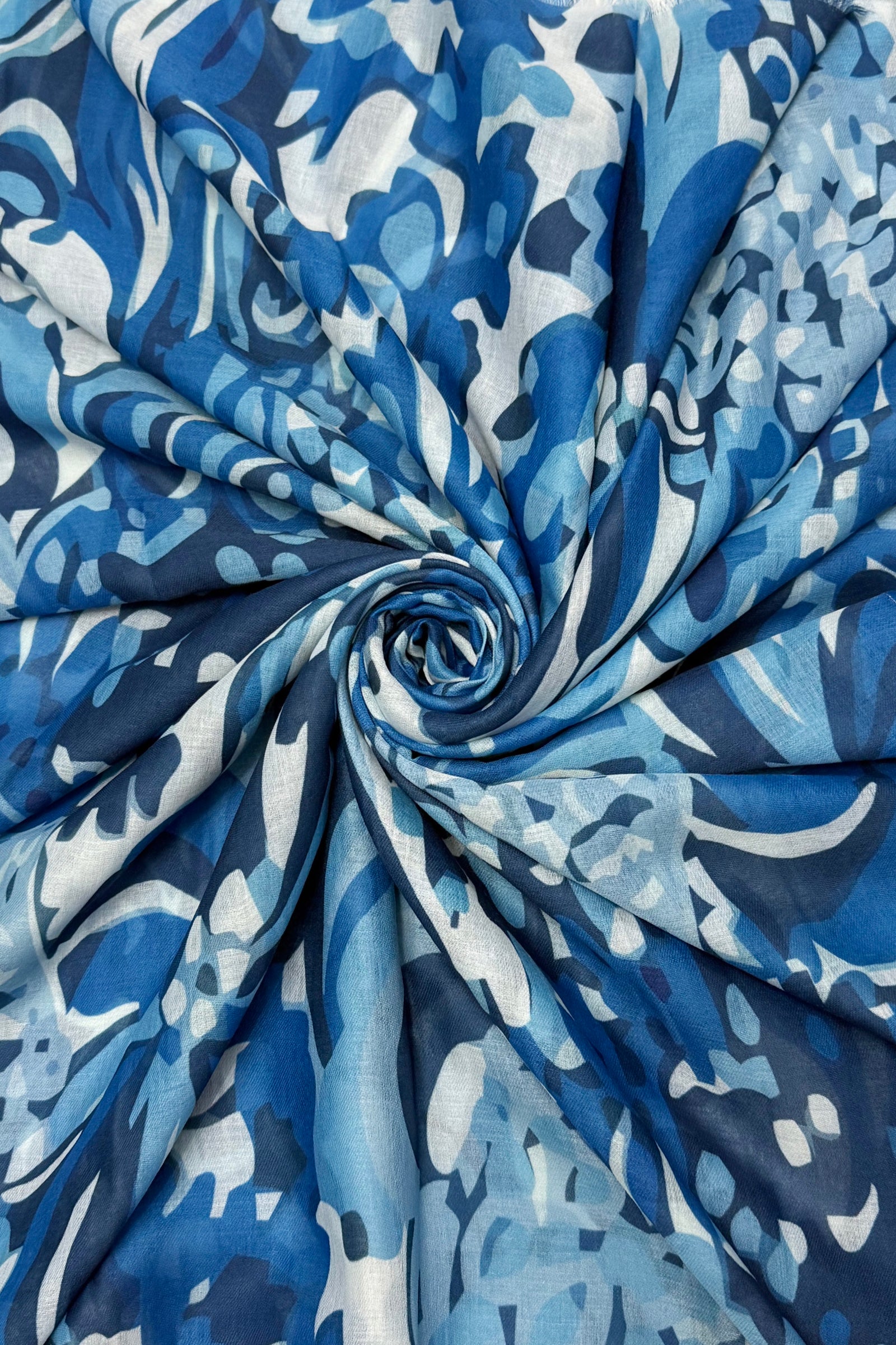 Abstract Swirl Floral Print Frayed Scarf