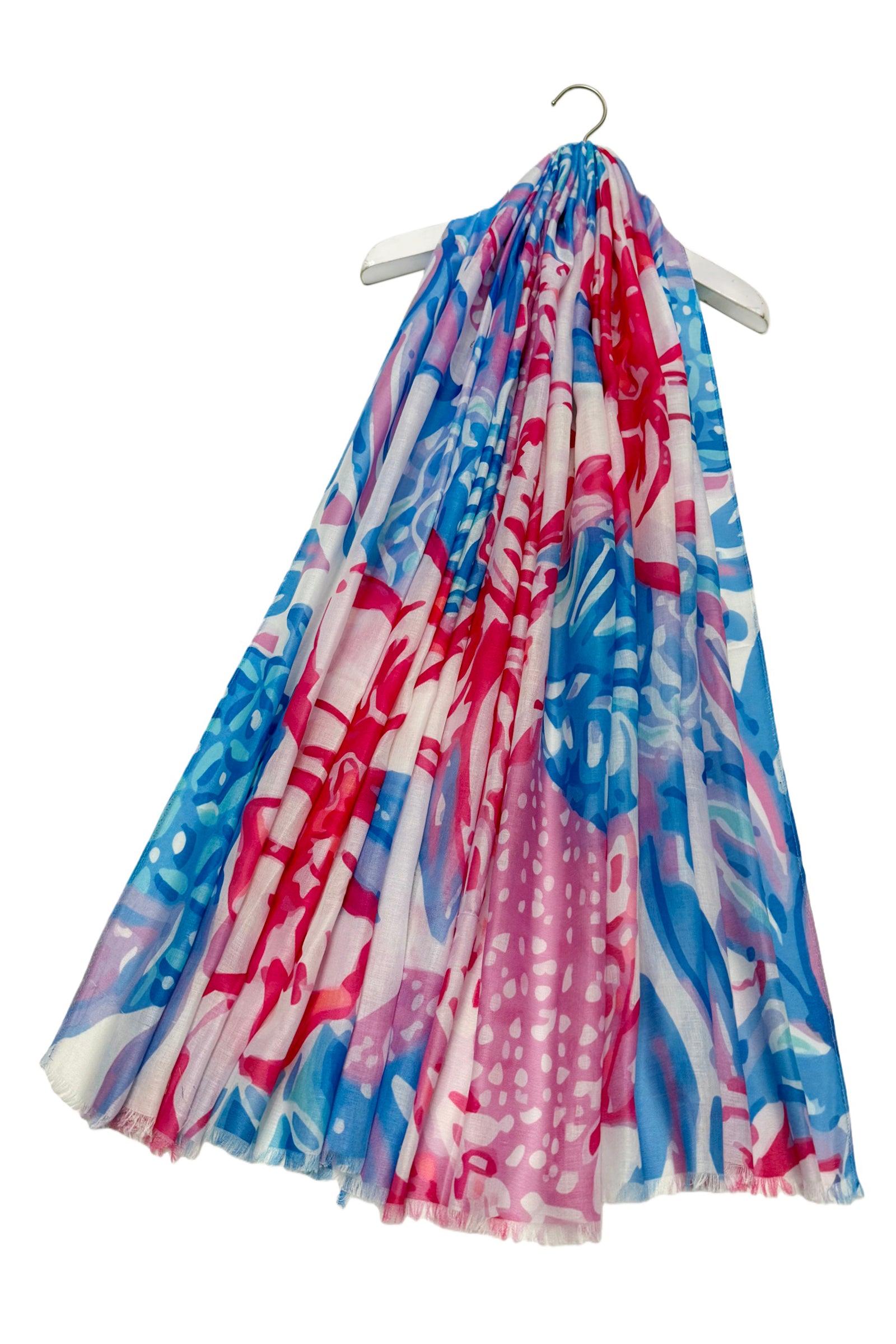Bold Hibiscus Tropical Frayed Scarf