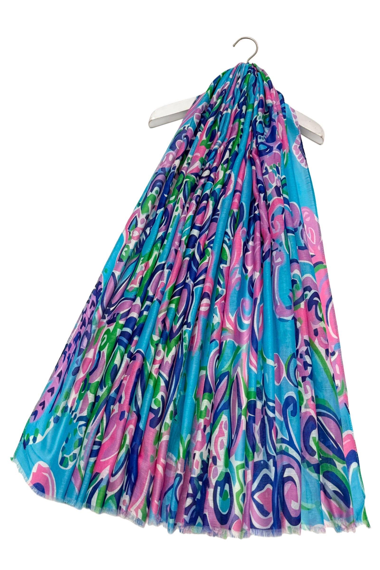 Large Festival Paisley Print Frayed Scarf