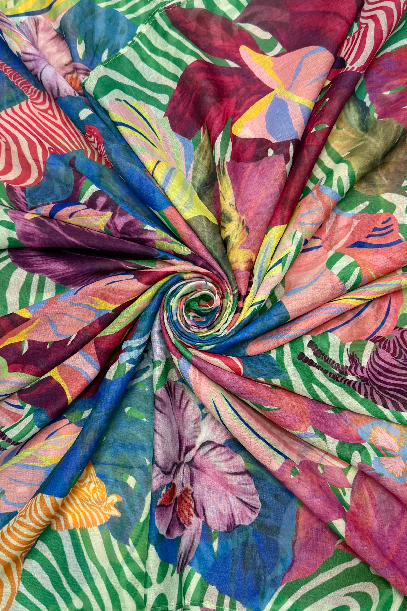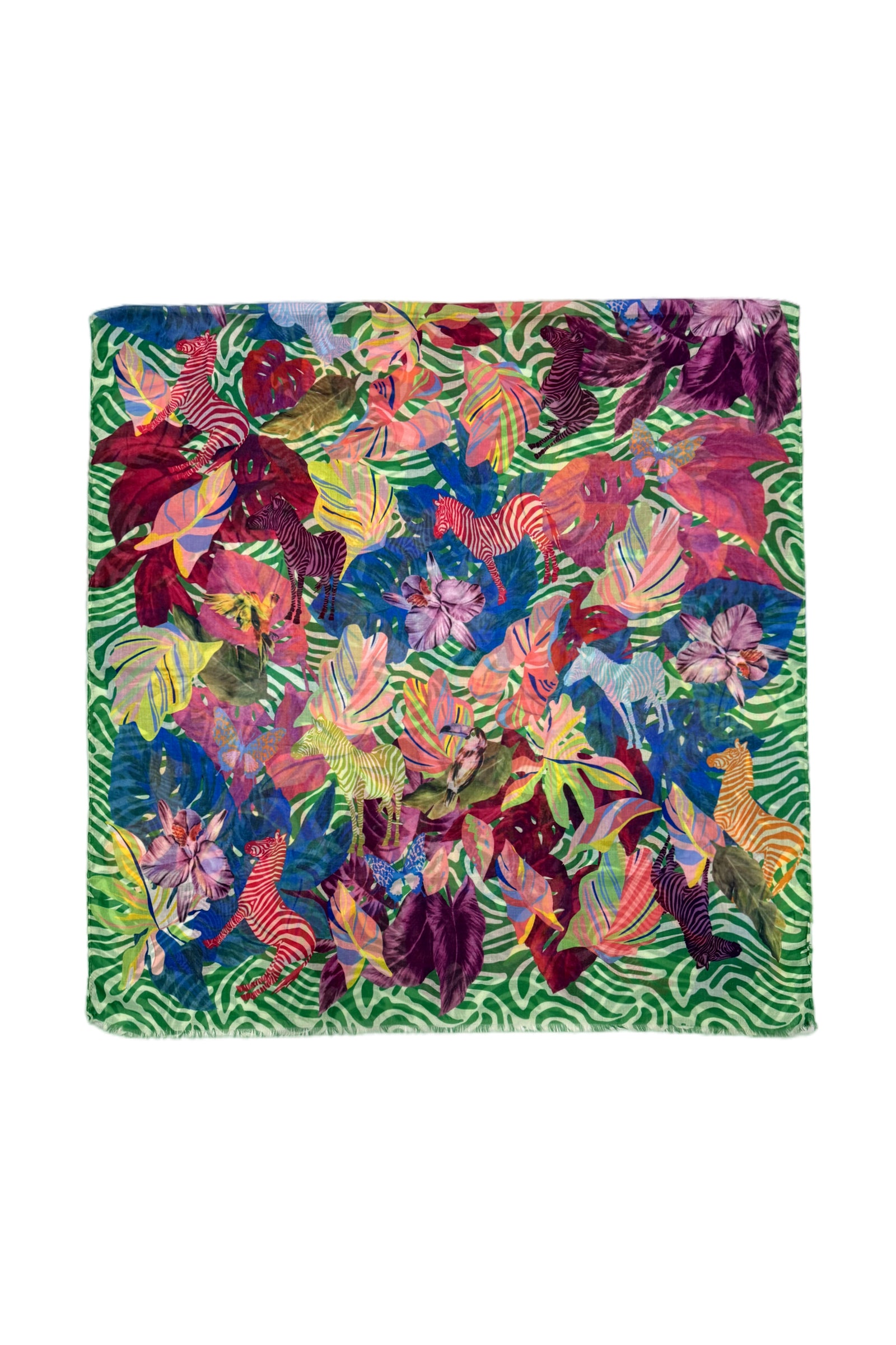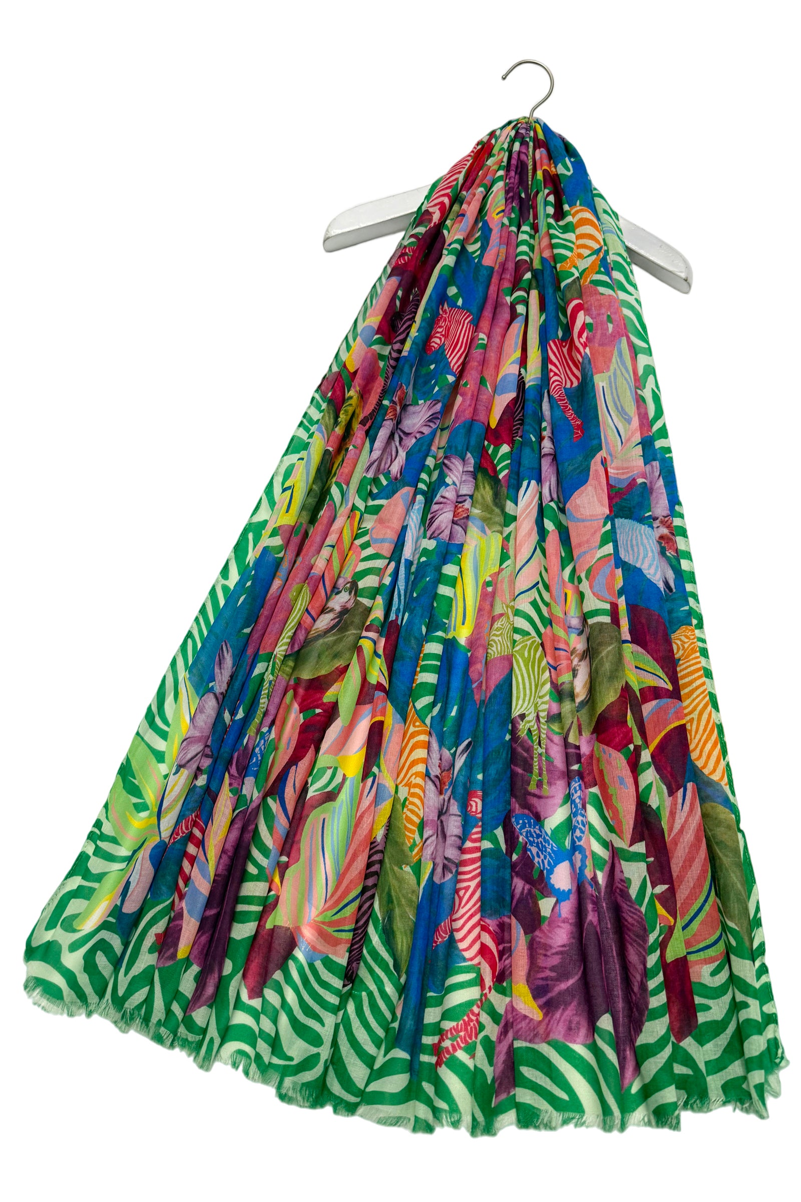 Psychedelic Jungle Animal Print Frayed Scarf