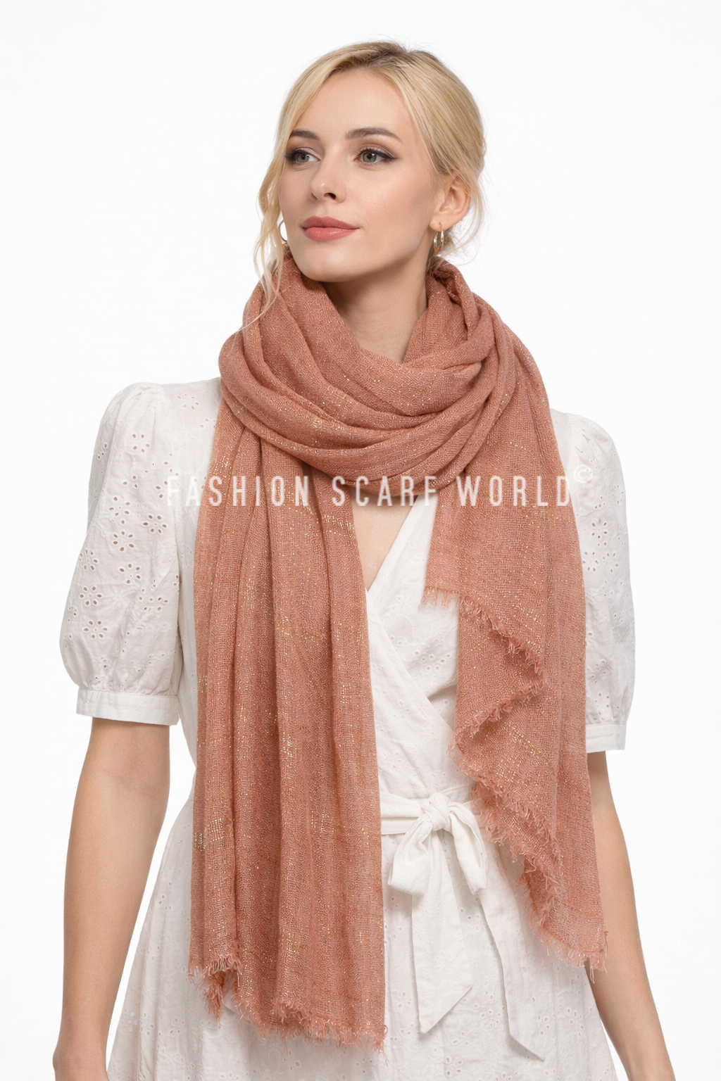 Metallic Pin Stripe Frayed Scarf