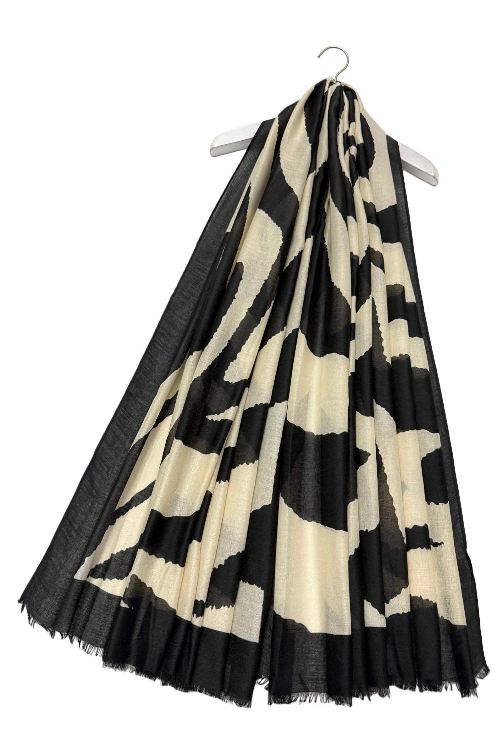 Graphic Heart Swirl Print Frayed Scarf