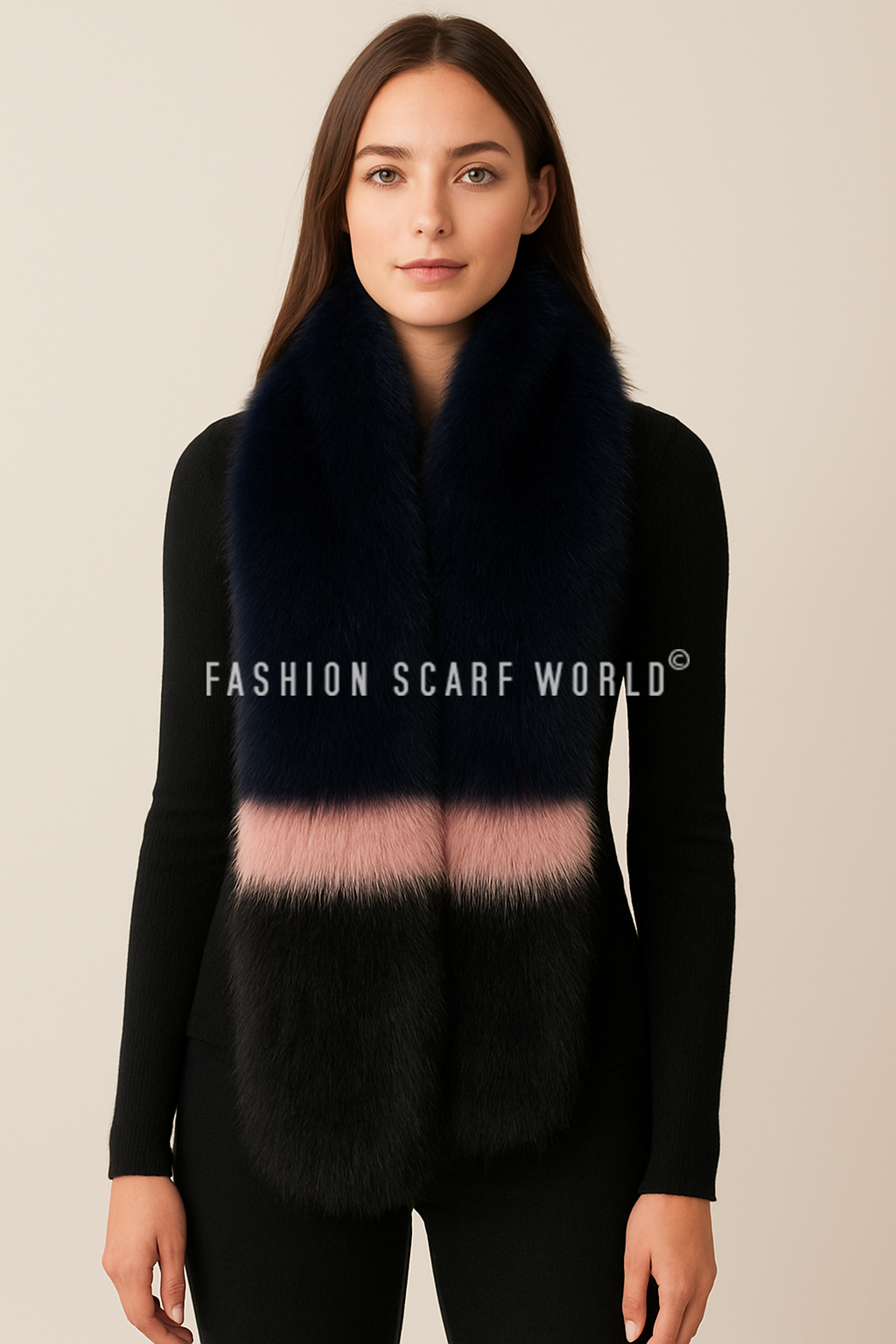 Stripe Long Faux Fur Collar - Navy Blue