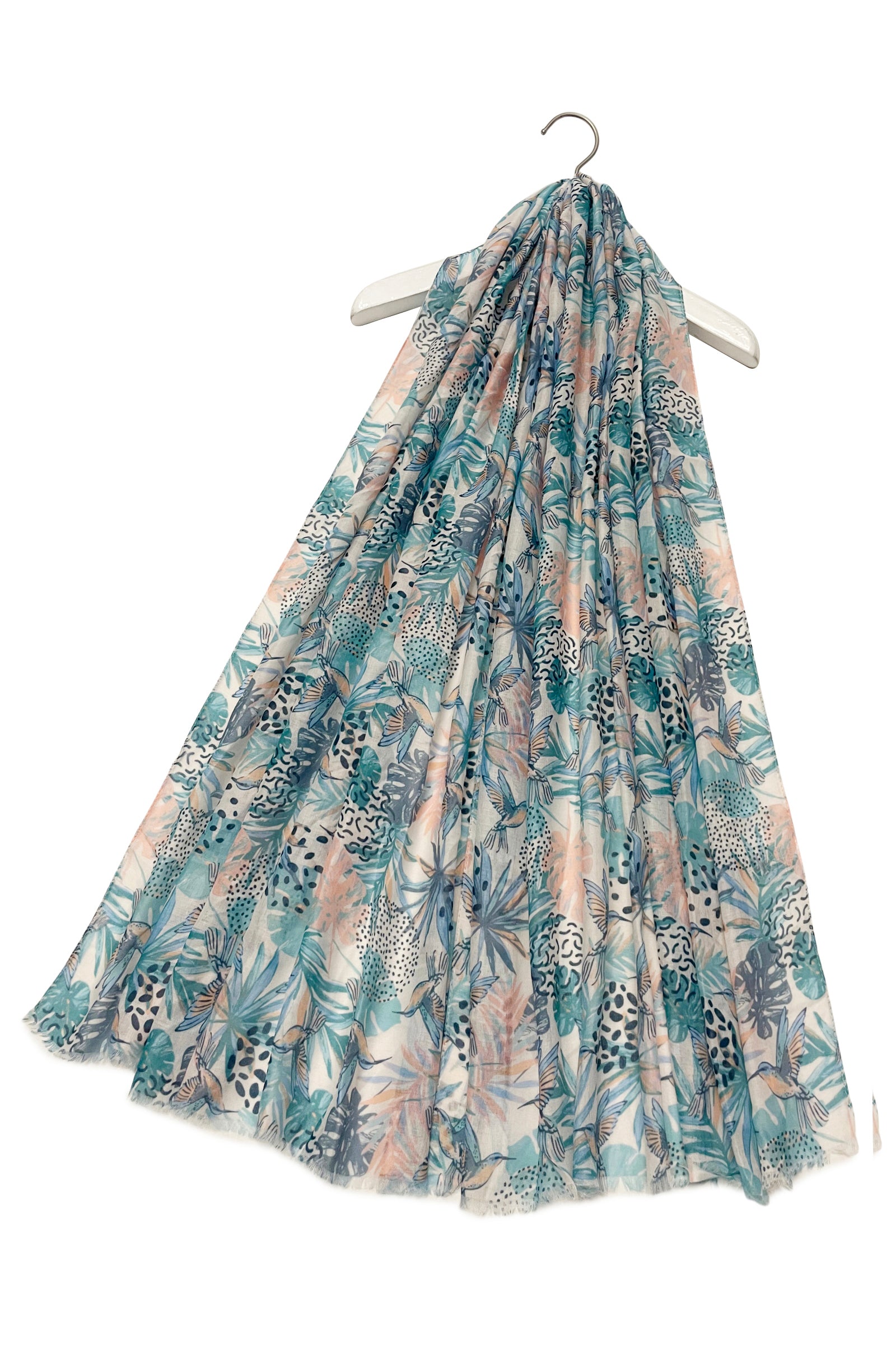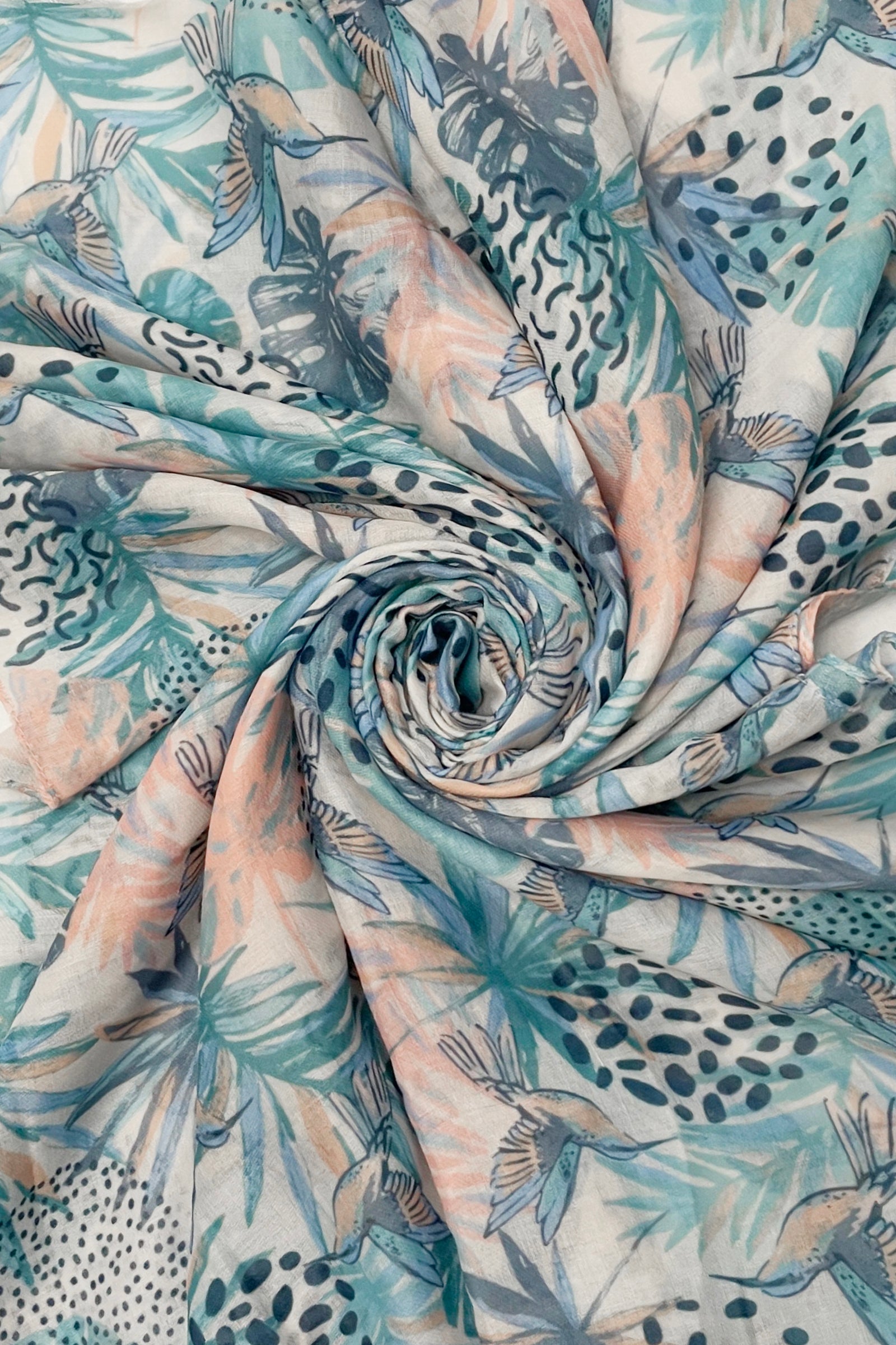 Tropical Floral & Mockingbird Print Frayed Scarf